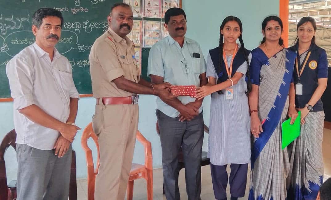 ಶೃಂಗೇರಿ ಪಟ್ಟಣದ ಜ್ಞಾನಭಾರತಿ ವಿದ್ಯಾಕೇಂದ್ರದಲ್ಲಿ ನಡೆದ ಮನೆ ಮನೆಗೆ ಪೊಲೀಸ್ ಕುರಿತ ಚಿತ್ರಕಲಾ ಹಾಗೂ ಪ್ರಬಂಧ ಸ್ಪರ್ಧೆ ಕಾರ್ಯಕ್ರಮದಲ್ಲಿ ವಿಜೇತರಾದವರಿಗೆ ಬಹುಮಾನ ವಿತರಿಸಲಾಯಿತು.