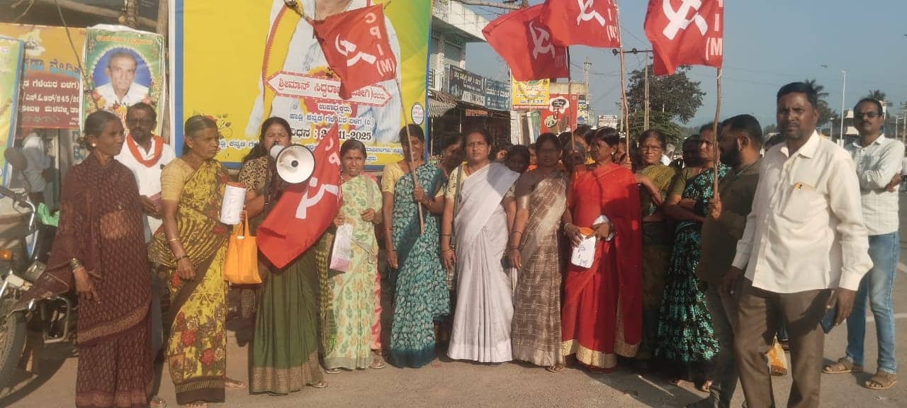 ಕೇಂದ್ರ ಮತ್ತು ರಾಜ್ಯ ಸರ್ಕಾರಗಳು ರೈತರು, ಕಾರ್ಮಿಕರು ಮತ್ತು ಕೂಲಿಕಾರರ ವಿರೋಧಿ ನೀತಿ ಅನುಸರಿಸುತ್ತಿದ್ದು, ಕಾರ್ಮಿಕರ ನೂತನ ಕಾಯ್ದೆ ಕೈಬಿಡಬೇಕು ಎಂದು ಕಮ್ಯೂನಿಸ್ಟ್ ಪಕ್ಷದ ಜಿಲ್ಲಾ ಸಮಿತಿ ಸದಸ್ಯೆ ಮಂಜುಳಾ ಒತ್ತಾಯಿಸಿದರು.ಹಾಡ್ಲಿ ಸರ್ಕಲ್ನಲ್ಲಿ ಕಮ್ಯುನಿಸ್ಟ್ ಪಕ್ಷದಿಂದ ಡಿ.21ರಂದು ಬೆಂಗಳೂರಿನಲ್ಲಿ ನಡೆಯಲಿರುವ ಜನಾಂದೋಲನ ಮತ್ತು ಬೃಹತ್ ಪ್ರತಿಭಟನಾ ಬಹಿರಂಗ ಸಭೆ ಪ್ರಚಾರ ಕಾರ್ಯಕ್ರಮದಲ್ಲಿ ಮಾತನಾಡಿದರು.