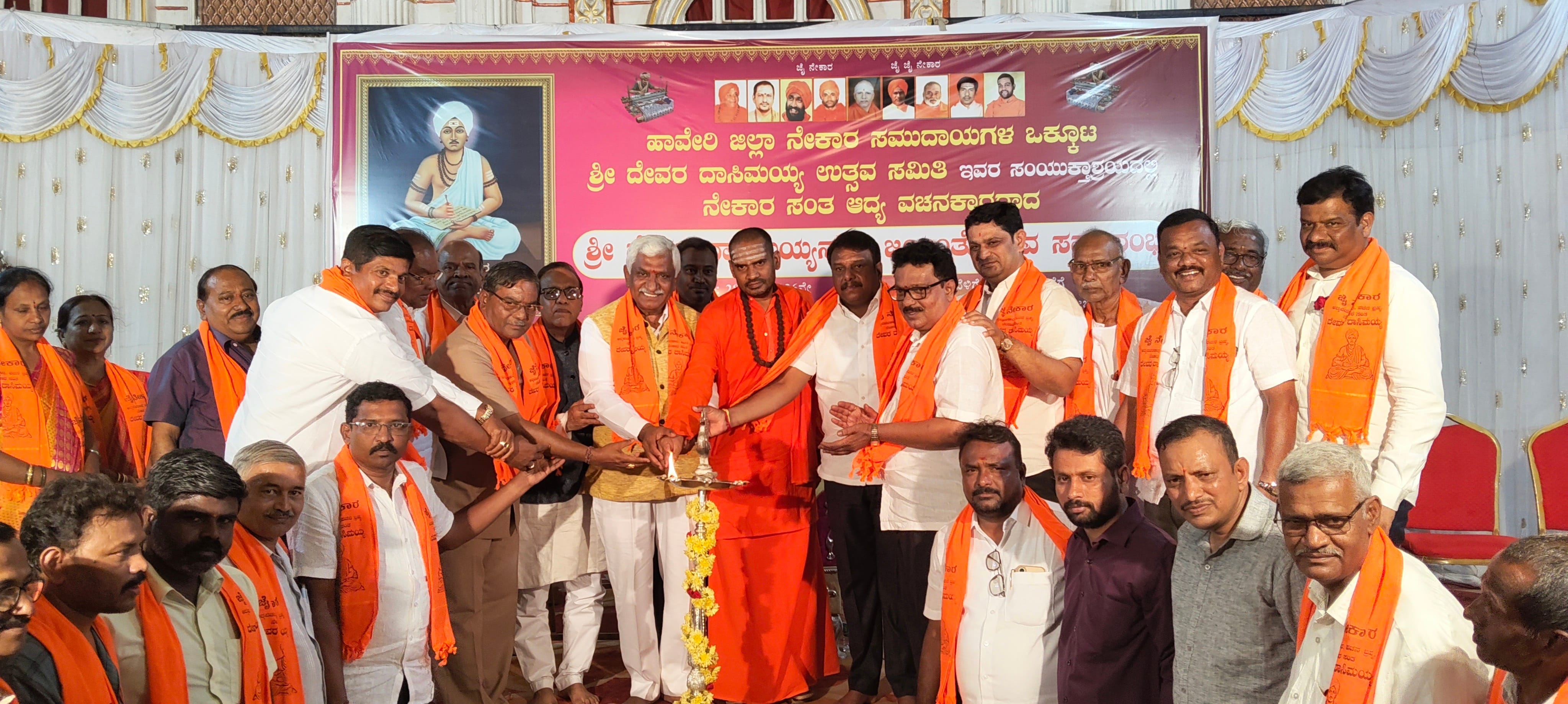ಇದಕ್ಕೂ ಪೂರ್ವದಲ್ಲಿ ನಗರದ ದೊಡ್ಡಪೇಟೆ ಅಂಬಾಭವಾನಿ ದೇವಸ್ಥಾನದ ಬಳಿಯಿಂದ ಹೊರಟ ದೇವರ ದಾಸಿಮಯ್ಯ ಭಾವಚಿತ್ರದ ಮೆರವಣಿಗೆ ಎಡಿಬಿ ಸರ್ಕಲ್, ಎಂ.ಜಿ. ರಸ್ತೆ, ದುರ್ಗಾ ಸರ್ಕಲ್, ಕುರುಬಗೇರಿ ಕ್ರಾಸ್, ಕಾಕಿಗಲ್ಲಿ, ನಾಡಿಗ್ಗೇರ ಓಣಿ, ಹಳೇ ಪಿ.ಬಿ.ರಸ್ತೆ, ದೇವರ ದಾಸಿಮಯ್ಯ ಸರ್ಕಲ್ ಮಾರ್ಗವಾಗಿ ಸಮಾರಂಭದ ಸ್ಥಳಕ್ಕೆ ಬಂದು ಸೇರಿತು.
