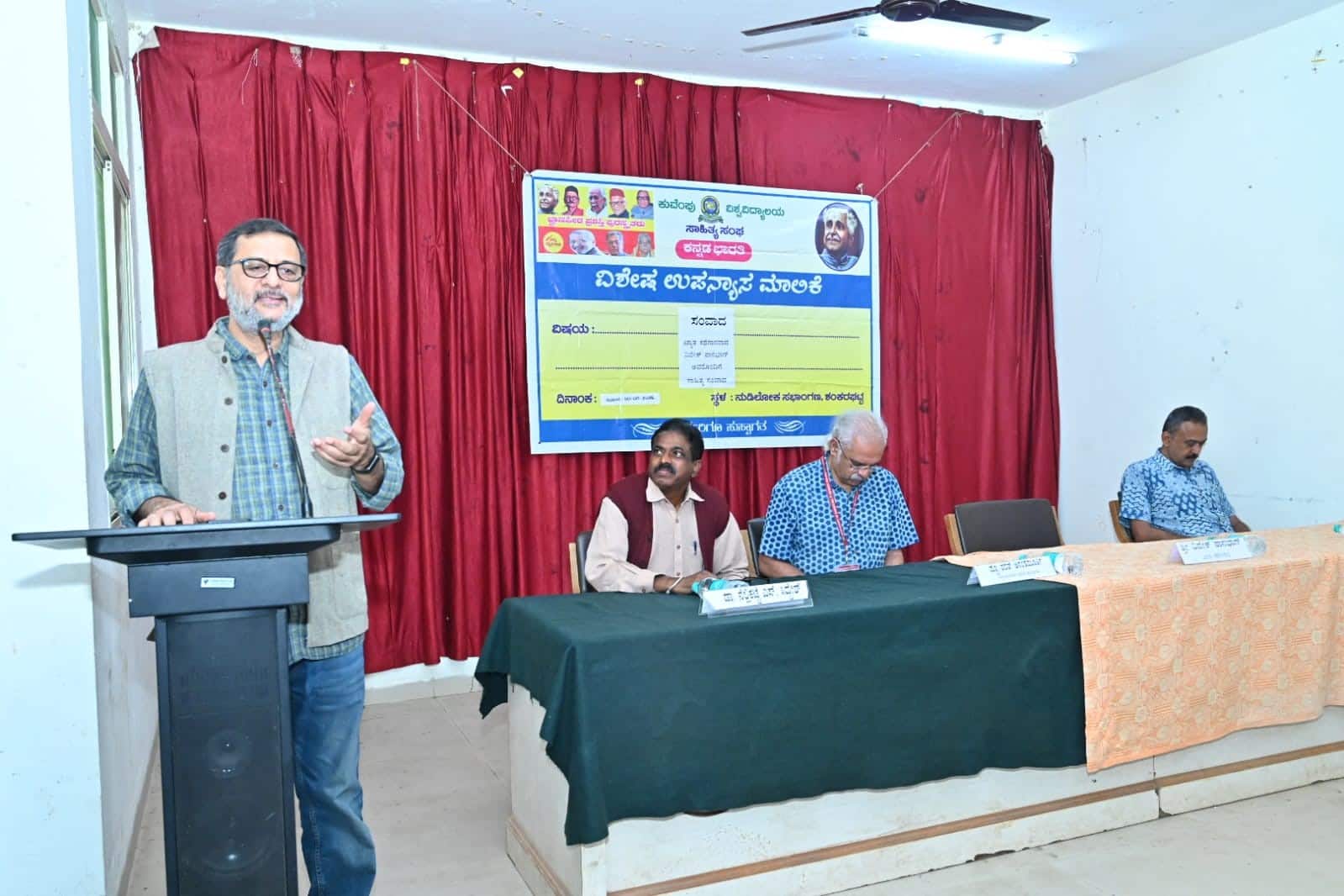 ಅವರು ಕುವೆಂಪು ವಿಶ್ವವಿದ್ಯಾಲಯದ ಕನ್ನಡಭಾರತಿ ವಿಭಾಗದ ಸಾಹಿತ್ಯ ಸಂಘ ಏರ್ಪಡಿಸಿದ್ದ ಸಾಹಿತ್ಯ ಸಂವಾದ ಕಾರ್ಯಕ್ರಮದಲ್ಲಿ ಭಾಗವಹಿಸಿ ಮಾತನಾಡಿ, ಸಾಹಿತಿಗೆ ಸಾಮಾಜಿಕ ಬದ್ದತೆ ಬಹುಮುಖ್ಯ. ಸಾಮಾಜಿಕ ಸಂಬಂಧಗಳ ಬದಲಾವಣೆಗೆ ಸ್ಪಂದಿಸುವ ಸಾಹಿತಿ ರಾಜಕೀಯ ಸ್ಥಿತಿಗತಿಗಳನ್ನು ಅರಿತಿರಬೇಕು. ಅವುಗಳನ್ನು ರೂಪಕಗಳಲ್ಲಿ, ಪ್ರತಿಮೆಗಳ ಮೂಲಕ ಜ್ಞಾನ ಒದಗಿಸಿದಾಗ ಅಪಾಯವಿರುವುದಿಲ್ಲ. ಇಂದು ವಾಟ್ಸ್ಯಾಪ್, ಫೇಸ್ಬುಕ್ ಕ್ರಾಂತಿಗೆ ಒಳಗಾಗಿದ್ದೇವೆ. ಅವುಗಳನ್ನು ಬಿಡಿಸಿಕೊಂಡು ಬರಹದಲ್ಲಿ ತೊಡಗುವುದು ಅತಿ ಅಗತ್ಯವಾಗಿದೆ. ಇಂದು ಮಾಧ್ಯಮಗಳೆಲ್ಲ ವ್ಯಾವಹಾರಿಕವಾಗಿವೆ. ಮನುಷ್ಯ ಸಂಬಂಧಗಳ ಸಂವರ್ಧನೆ ಆಗುವ ತುರ್ತು ಇದೆ. ಇದು ಸಾಹಿತ್ಯದಿಂದ ಸಾಧ್ಯ ಎಂದರು.ಪ್ರಾಧ್ಯಾಪಕರು, ಸಂಶೋಧಕರು, ವಿದ್ಯಾರ್ಥಿಗಳು ಕೇಳಿದ ಹಲವು ಪ್ರಶ್ನೆಗಳಿಗೆ ಉತ್ತರಿಸುವ ಮೂಲಕ ಸಾಹಿತ್ಯದಿಂದ ಸಮಾಜ ಕಲ್ಯಾಣವಾಗುವ ಬಗೆಯನ್ನು ತಿಳಿಸಿದರು. ಕಾರ್ಯಕ್ರಮದ ಅಧ್ಯಕ್ಷತೆಯನ್ನು ಕುಲಪತಿ ಪ್ರೊ ಶರತ್ ಅನಂತ್ ಮೂರ್ತಿ ವಹಿಸಿ ಜೀವನ ಅನುಭವಗಳನ್ನು ನೀಡುವ ಸಾಹಿತ್ಯಕ್ಕೆ ಬಹು ಪ್ರಾಮುಖ್ಯತೆಯಿದೆ. ಇಂತಹ ಸಾಹಿತ್ಯ ಅಧ್ಯಯನ ಮೂಲಕ ಉತ್ತಮವಾಗಿ ಬದುಕಲು ಸಾಧ್ಯವೆಂದು ತಿಳಿಸಿದರು.