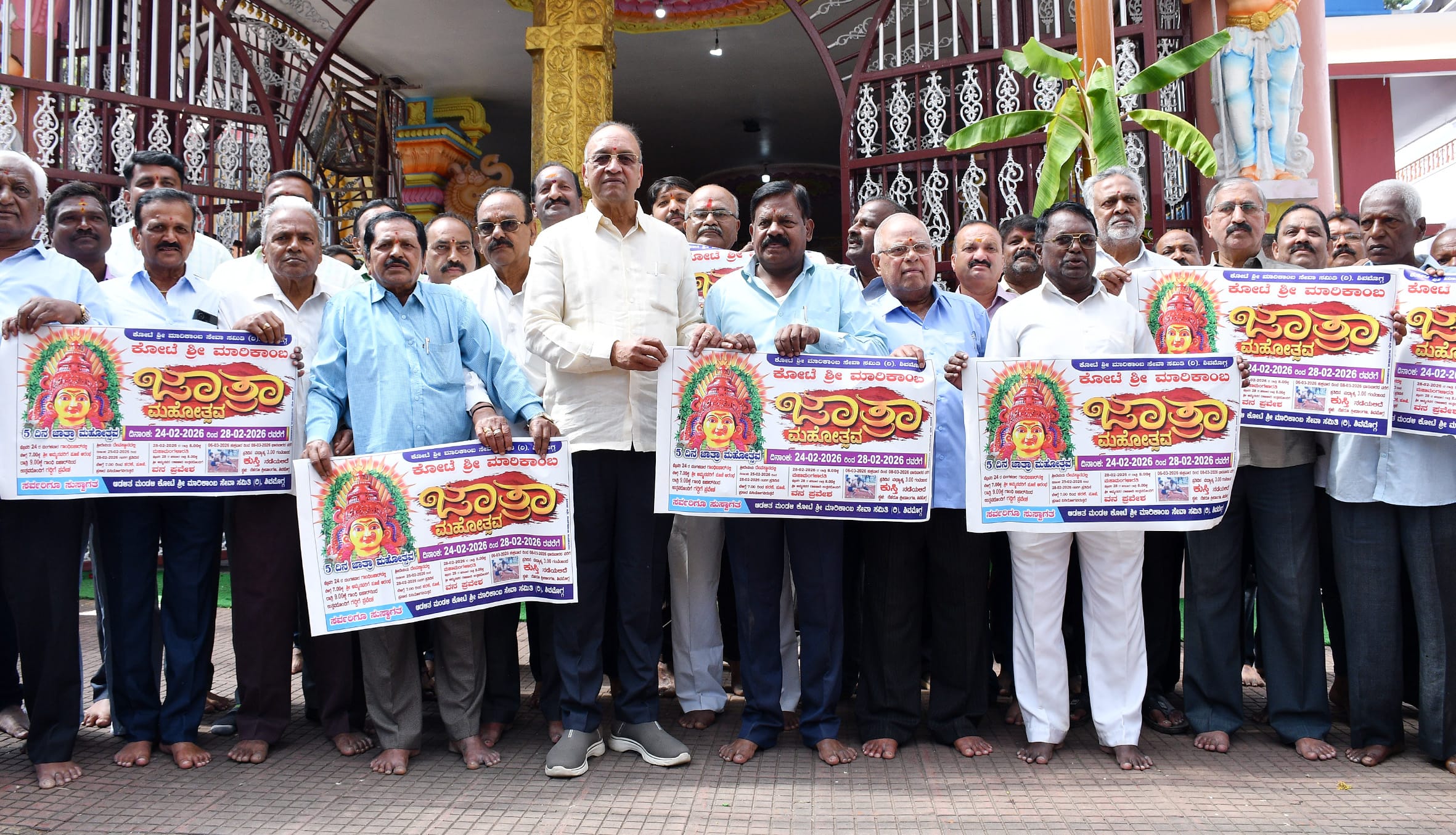 ಶಿವಮೊಗ್ಗ: ಶಿವಮೊಗ್ಗದ ಇತಿಹಾಸ ಪ್ರಸಿದ್ಧ ಕೋಟೆ ಶ್ರೀ ಮಾರಿಕಾಂಬಾ ದೇವಿಯ ಜಾತ್ರಾ ಮಹೋತ್ಸವದ ಸಂಭ್ರಮಕ್ಕೆ ಅಧಿಕೃತ ಚಾಲನೆ ಸಿಕ್ಕಿದ್ದು, ಫೆ.24ರಿಂದ 28ರವರೆಗೆ ನಡೆಯಲಿರುವ ಈ ಅದ್ಧೂರಿ ಉತ್ಸವದ ಪೋಸ್ಟರ್ ಅನ್ನು ಮಂಗಳವಾರ ದೇವಾಲಯದ ಆವರಣದಲ್ಲಿ ಬಿಡುಗಡೆಗೊಳಿಸಲಾಯಿತು.