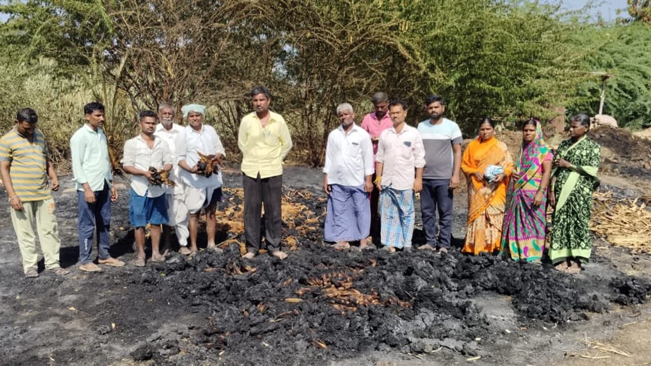 ಬರಗಾಲದಿಂದ ತತ್ತರಿಸಿದ್ದ ರೈತ ಶಿವಾನಂದ ವಾಲಿ ಜಮೀನಲ್ಲಿ ಬಂದಷ್ಟು ಬರಲಿ ಎನ್ನುವ ಉದ್ದೇಶದಿಂದ ಈಚೆಗಷ್ಟೇ ರಾಶಿ ಮಾಡಿ ಮಾರಾಟ ಮಾಡಲು ಒಂದೆಡೆ ಸಂಗ್ರಹಿಸಿದ್ದರು. ಮತ್ತೊಂದೆದೆ ಕಟಾವಿಗೆ ಬಂದಿದ್ದ ಕಬ್ಬು ಸಹ ಲಕ್ಷಗಟ್ಟಲೇ ಹಾನಿಯಾಗಿದೆ. ಸಾಲ ಮಾಡಿ ಕಂಗೆಟ್ಟಿದ್ದ ರೈತನಿಗೆ ಸದ್ಯ ವಿದ್ಯುತ್ ಅಗ್ನಿ ಅವಘಡ ಭಾರೀ ಪೆಟ್ಟು ನೀಡಿದೆ.ವಿಷಯ ತಿಳಿದು ಮುದ್ದೇಬಿಹಾಳದ ಅಗ್ನಿಶಾಮಕದ ಅಧಿಕಾರಿ ರಮೇಶ ಚಲ್ಲನವರ್, ಯಮನಪ್ಪ ಪೋಲೇಶಿ, ಚಂದ್ರಶೇಖರ್ ಮಾದರ ಹಾಗೂ ಜಾವೀದ್, ಸಂತೋಷ, ತುಕಾರಾಮ್ ವಿರುಪಾಕ್ಷ ಹಾಗೂ ಸುನಿಲ್ ಎಂಬುವರ ತಂಡ ಆಗಮಿಸಿ ಅಗ್ನಿ ನಂದಿಸಿದರೂ ರೈತ ಬೆಳೆದ ದವಸ ದಾನ್ಯ ಕೈಗೆ ಬಂದದ ತುತ್ತು ಬಾಯಿಗೆ ಬರದಂತೆ ನಡೆದ ಘಟನೆ ಸ್ಥಳಿಯರಲ್ಲಿ ಮನ ಮರಗುವಂತೆ ಮಾಡಿದೆ. ಈ ವೇಳೆ ಶಿವಾನಂದ ವಾಲಿ, ಸಂಗಪ್ಪ ಹಂಪನಗೌಡ್ರ, ಮಲ್ಲೇಶಪ್ಪ ಗಂಗನಗೌಡ್ರ, ವೀರೇಶ ಗಂಗನಗೌಡ್ರ, ಸಂತೋಷ ವಾಲಿ ಮಹಾಂತೇಶ ಮೆದಿಕನಾಳ, ಶೇಖಪ್ಪ ಕಸಭೇಗೌಡ್ರ, ಸಂಗು ವಾಲಿ ಗಂಗಪ್ಪ ಗಚ್ಚಿನಮನಿ, ಪ್ರಭು ಮಳ್ಳೇತ್ತಿ ಇದ್ದರು.