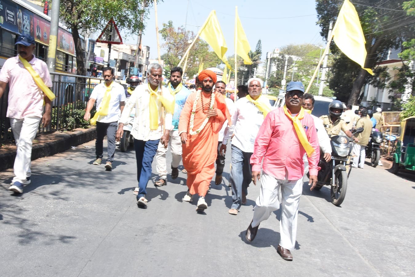 ರಾಜ್ಯದ ಈಡಿಗ, ಬಿಲ್ಲವ, ನಾಮಧಾರಿ, ದೀವರು ಮುಂತಾದ 26 ಸಹಜಾತಿಗಳ ವಿವಿಧ 18 ಬೇಡಿಕೆಗಳನ್ನು ಈಡೇರಿಸಲು ಸರ್ಕಾರವನ್ನು ಒತ್ತಾಯಿಸಿ ಕಲಬುರ್ಗಿ ಜಿಲ್ಲೆ ಕರದಾಳು ಶಕ್ತಿಪೀಠ ಅಧ್ಯಕ್ಷ ಪ್ರಣಾವಾನಂದ ಸ್ವಾಮೀಜಿ ನೇತೃತ್ವದಲ್ಲಿ ಬೆಂಗಳೂರಿಗೆ ಹೊರಟಿರುವ ಪಾದಯಾತ್ರೆ ಶನಿವಾರ ನಗರಕ್ಕೆ ಆಗಮಿಸಿತು.