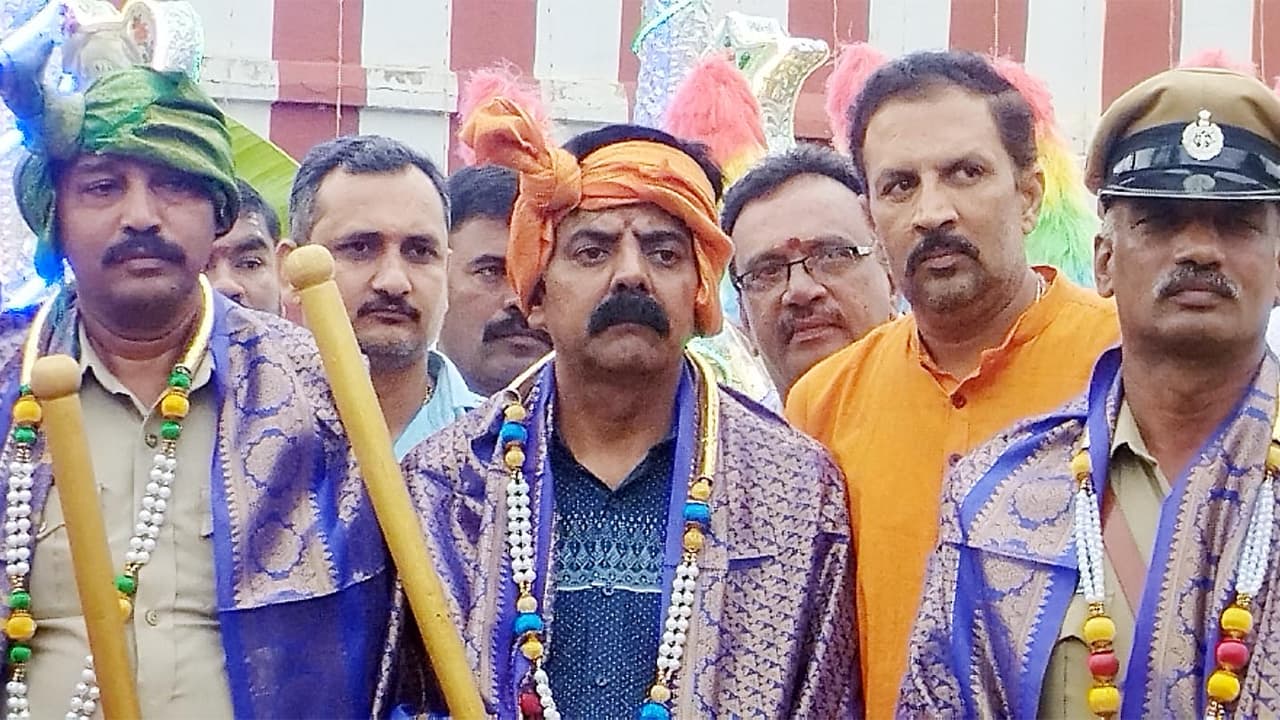 ಕನ್ನಡಪ್ರಭ ವಾರ್ತೆ ಎಚ್.ಡಿ. ಕೋಟೆಪಟ್ಟಣದ ಶ್ರೀ ಲಕ್ಷ್ಮಿ ವರದರಾಜ ಸ್ವಾಮಿ ದೇವಾಲಯದಲ್ಲಿ ವಿಜಯದಶಮಿ ಅಂಗವಾಗಿ ಶನಿವಾರ ನವರಾತ್ರಿ ಉತ್ಸವವು ಅತ್ಯಂತ ಸಡಗರ ಸಂಭ್ರಮದಿಂದ ನೆರವೇರಿತು.ಪ್ರತಿವರ್ಷದಂತೆಯೂ ಈ ವರ್ಷವೂ ವಿಜಯದಶಮಿಯ ಅಂಗವಾಗಿ ಪೊಲೀಸ್ ಪೂಜೆ ನಡೆಸಿಕೊಂಡು ಬರುತ್ತಿದ್ದು ವೃತ ನಿರೀಕ್ಷಕ ಶಬೀರ್ ಹುಸೇನ್ ವಿಜಯದಶಮಿಯ ಪೂಜಾ ಕಾರ್ಯದಲ್ಲಿ ತಮ್ಮ ಸಿಬ್ಬಂದಿಯೊಡನೆ ಆಗಮಿಸಿ ಕಾರ್ಯಕ್ರಮ ನೆರವೇರಿಸಿಕೊಟ್ಟರು. ಬೆಳಗ್ಗೆ ದೇವಾಲಯದಲ್ಲಿ ಸ್ವಾಮಿಗೆ ಅಭಿಷೇಕ ಕುಂಕುಮರ್ಚನೆ ಪುಷ್ಪಾರ್ಚನೆ ನಡೆದ ಬಳಿಕ ಮಹಾಮಂಗಳಾರತಿ ನೆರವೇರಿ ತದನಂತರ ಬಂದ ಭಕ್ತರಿಗೆ ಪ್ರಸಾದ ವಿನಿಯೋಗ ನೆರವೇರಿಸಲಾಯಿತು.ಸಂಜೆ ಶ್ರೀ ವರದರಾಜ ಸ್ವಾಮಿ ಉತ್ಸವವನ್ನು ವೃತ್ತ ನಿರೀಕ್ಷಕ ಶಬೀರ್ ಹುಸೇನ್, ದೇವಾಲಯದ ಧರ್ಮದರ್ಶಿ ಬಿ.ಎಸ್. ರಂಗ ಅಯ್ಯಂಗಾರ್ ಅವರ ಪುತ್ರ ಪ್ರಸಾದ್ ಸ್ವಾಮಿಗೆ ಪುಷ್ಪಾರ್ಚನೆ ನಡೆಸುವುದರ ಮೂಲಕ ಮೆರವಣಿಗೆ ಚಾಲನೆ ನೀಡಲಾಯಿತು. ಈ ವೇಳೆ ಪೊಲೀಸ್ ಇಲಾಖೆಯವರು ಸ್ವಾಮಿಗೆ ಗೌರವ ರಕ್ಷೆ ಸಲ್ಲಿಸಿದರು.ಮೆರವಣಿಗೆಯು ಪಟ್ಟಣದ ಪ್ರಮುಖ ಬೀದಿಗಳಲ್ಲಿ ಸಾಗಿ ಅಂತ್ಯದಲ್ಲಿ ಬನ್ನಿಮಂಟಪದಲ್ಲಿ ಕೊನೆಗೊಂಡಿತು. ಉತ್ಸವದ ಜೊತೆಯಲ್ಲಿ ಶ್ರೀ ಚಾಮುಂಡೇಶ್ವರಿ ತಾಯಿಯ ಉತ್ಸವ ಮೂರ್ತಿಯು ಭಾಗವಹಿಸಿದ್ದು ಜನರ ಕಣ್ಮನ ಸೆಳೆಯಿತು. ಮೆರವಣಿಗೆಯಲ್ಲಿ ಸ್ತಬ್ಧಚಿತ್ರಗಳು ಭಾಗವಹಿಸಿದ್ದವು. ಪಟ್ಟಣದ ಎಲ್ಲಾ ಕೋಮಿನ ಮುಖಂಡರು ಭಾಗವಹಿಸಿದ್ದರು.ಕಾರ್ಯಕ್ರಮದಲ್ಲಿ ಪ್ರಧಾನ ಅರ್ಚಕ ರಾಮಪ್ರಿಯ, ಎಚ್.ವಿ. ತಿರುಮಲಾರ್, ಎಚ್.ವಿ. ರಘುನಾಥನ್, ಶ್ರೀಕಾಂತ್, ದೇವರಾಜ್, ಚಂದ್ರಮೌಳಿ, ಶ್ರೀಕಂಠ ಶರ್ಮ, ಮಂಜುನಾಥ್, ಪೂರ್ಣೇಶ್, ವಿನೋದ್, ಕೆಂಪರಾಜು, ಶಿವರಾಜು, ಸುಧಾಕರ್, ಮಹಿಳೆಯರು ಮಕ್ಕಳು ಮೆರವಣಿಗೆಯಲ್ಲಿ ಪಾಲ್ಗೊಂಡಿದ್ದರು.