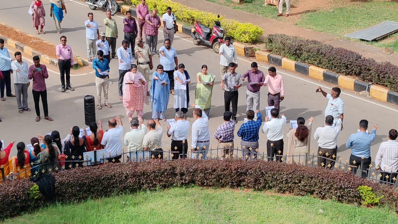 ಅಂತಾರಾಷ್ಟ್ರೀಯ ಪ್ರಜಾಪ್ರಭುತ್ವ ದಿನಾಚರಣೆ ಅಂಗವಾಗಿ ಸೆ.೧೫ರಂದು ಜಿಲ್ಲೆಯಲ್ಲಿ ಹಮ್ಮಿಕೊಂಡಿರುವ ಮಾನವ ಸರಪಳಿ ನಿರ್ಮಾಣ ಕಾರ್ಯಕ್ರಮ ಸಂಬಂಧ ಶನಿವಾರ ಪೂರ್ವ ತಾಲೀಮು ನಡೆಯಿತು.
