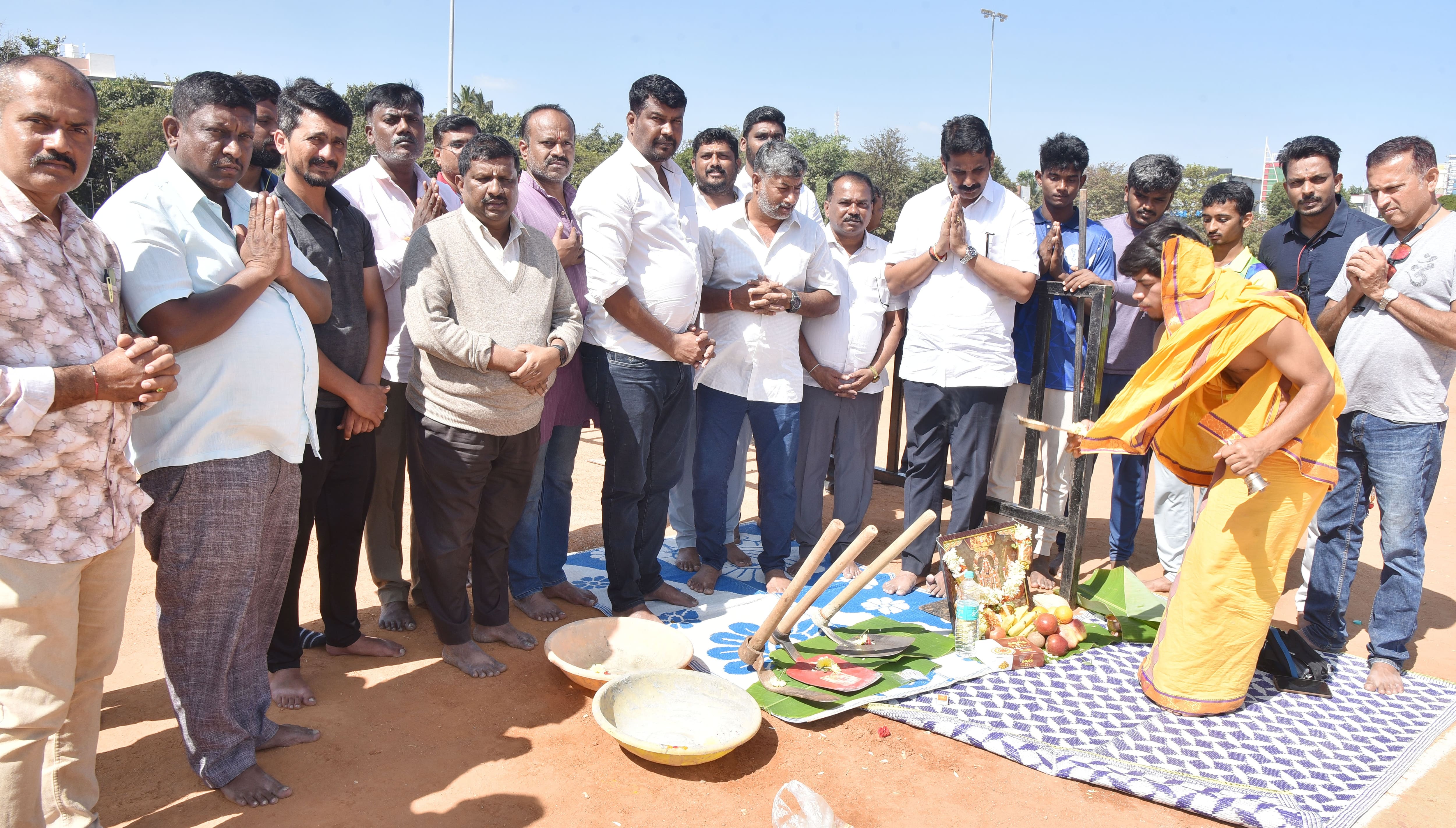 ಕನ್ನಡಪ್ರಭ ವಾರ್ತೆ, ತುಮಕೂರುನಗರದ ಸರ್ಕಾರಿ ಜೂನಿಯರ್ ಕಾಲೇಜು ಮೈದಾನದಲ್ಲಿ ಡಾ. ರಾಜ್ ಸಾಂಸ್ಕೃತಿಕ ಹಾಗೂ ಕ್ರೀಡಾ ಸಂಘ ಮತ್ತು ಚಕ್ರವರ್ತಿ ಸ್ಪೋರ್ಟ್ಸ್ ಕ್ಲಬ್ ವತಿಯಿಂದ ಡಿ.25 ರಿಂದ ನಾಲ್ಕು ದಿನಗಳ ಕಾಲ ಖ್ಯಾತ ವೈದ್ಯ ದಿ. ಡಾ. ಸಿ. ಜಯರಾಮರಾವ್ ಸ್ಮರಣಾರ್ಥ ಹಮ್ಮಿಕೊಳ್ಳಲಾಗಿರುವ ಡಾ.ಪುನೀತ್ ರಾಜ್ ಕಪ್ ರಾಜ್ಯಮಟ್ಚದ ಹೊನಲು ಬೆಳಕಿನ ಕ್ರಿಕೆಟ್ ಪಂದ್ಯಾವಳಿಗೆ ವೇದಿಕೆ ಹಾಗೂ ಪ್ರೇಕ್ಷಕರ ವೀಕ್ಷಣೆಯ ಗ್ಯಾಲರಿ ನಿರ್ಮಾಣಕ್ಕೆ ಭೂಮಿ ಪೂಜೆ ನೆರವೇರಿಸಲಾಯಿತು. ಭೂಮಿ ಪೂಜೆ ನೆರವೇರಿಸಿದ ನಂತರ ಮಾತನಾಡಿದ ಡಾ. ರಾಜ್ ಸಾಂಸ್ಕೃತಿಕ ಹಾಗೂ ಕ್ರೀಡಾ ಸಂಘ ಮತ್ತು ಚಕ್ರವರ್ತಿ ಸ್ಪೋರ್ಟ್ಸ್ ಕ್ಲಬ್ ಗೌರವಾಧ್ಯಕ್ಷಎಎಚ್.ಎನ್. ದೀಪಕ್ ಅವರು, ಡಿ. 25, 26, 27 ಮತ್ತು 28 ರಂದು ನಗರದ ಸರ್ಕಾರಿ ಜೂನಿಯರ್ ಕಾಲೇಜು ಮೈದಾನದಲ್ಲಿ ಈ ಪಂದ್ಯಾವಳಿ ಆಯೋಜಿಸಲಾಗಿದೆ. ಈ ಟೂರ್ನಿಯಲ್ಲಿ ಉಡುಪಿ, ಮಂಗಳೂರು, ಕಾರವಾರ, ಬೆಂಗಳೂರು, ತುಮಕೂರು ಸೇರಿದಂತೆ ರಾಜ್ಯಾದ್ಯಂತ ಸುಮಾರು ೧೬ ತಂಡಗಳು ಭಾಗವಹಿಸಲಿವೆ ಎಂದು ಹೇಳಿದರು.ತುಮಕೂರಿನ ಇತಿಹಾಸದಲ್ಲಿ ಪ್ರಥಮ ಎಂಬಂತೆ ಈ ಕ್ರಿಕೆಟ್ ಪಂದ್ಯಾವಳಿಯ ವಿಜೇತವಾದ ತಂಡಕ್ಕೆ ಪ್ರಥಮ ಬಹುಮಾನ 5 ಲಕ್ಷ ರು. ನಗದು ಮತ್ತು ಆಕರ್ಷಕ ಟ್ರೋಫಿ, ದ್ವಿತೀಯ ಬಹುಮಾನ 2.50 ಲಕ್ಷ ರು. ನಗದು ಮತ್ತು ಆಕರ್ಷಕ ಟ್ರೋಫಿ, ತೃತೀಯ ಮತ್ತು 4ನೇ ಬಹುಮಾನ 50 ಸಾವಿರ ರೂ. ನಗದು ಮತ್ತು ಆಕರ್ಷಕ ಟ್ರೋಫಿ ನೀಡಲಾಗುವುದು ಎಂದರು.ಇದರೊಂದಿಗೆ ಪಂದ್ಯ ಪುರುಷೋತ್ತಮ, ಸರಣಿ ಪುರುಷೋತ್ತಮ, ಉತ್ತಮ ಬೌಲರ್ ಹಾಗೂ ಉತ್ತಮ ಕೀಪರ್ ಈ ರೀತಿಯ ವಿಶೇಷ ಬಹುಮಾನವನ್ನು ಕ್ರೀಡಾಪಟುಗಳಿಗೆ ನೀಡಿ ಪ್ರೋತ್ಸಾಹಿಸಲಾಗುವುದು ಎಂದು ಅವರು ಹೇಳಿದರು.ಕ್ರಿಕೆಟ್ ಪಂದ್ಯಾವಳಿಯನ್ನು ವೀಕ್ಷಕರು ಹಾಗೂ ಕ್ರಿಕೆಟ್ ಪ್ರೇಮಿಗಳು ಕುಳಿತು ವೀಕ್ಷಣೆ ಮಾಡಲು ಕ್ರೀಡಾಂಗಣದಲ್ಲಿ ಉತ್ತಮ ಗ್ಯಾಲರಿ ನಿರ್ಮಾಣ ಮಾಡಲಾಗುತ್ತಿದೆ. ಹಾಗಾಗಿ ಎಲ್ಲಾ ಪ್ರೇಕ್ಷಕರು ಗ್ಯಾಲರಿಯಲ್ಲಿ ಕುಳಿತು ಪಂದ್ಯ ವೀಕ್ಷಿಸಬಹುದು. ಜತೆಗೆ ಮಹಿಳೆಯರಿಗೆ ಪ್ರತ್ಯೇಕವಾಗಿ ಗ್ಯಾಲರಿ ನಿರ್ಮಾಣ ಮಾಡಲಾಗಿದೆ ಎಂದರು. ಖ್ಯಾತ ಚಲನಚಿತ್ರ ನಟ ದುನಿಯ ವಿಜಯ್ ಅವರು ಈ ಕ್ರೀಡಾಕೂಟ ಕಾರ್ಯಕ್ರಮಕ್ಕೆ ಆಗಮಿಸುತ್ತಿದ್ದು, ಅವರ ತಂಡ ಸಹ ಈ ಟೂರ್ನಿಯಲ್ಲಿ ಭಾಗವಹಿಲಿ ಆಡಲಿದೆ ಎಂದು ಅವರು ತಿಳಿಸಿದರು. ನಗರದಲ್ಲಿ ವಿಶೇಷವಾಗಿ ರಾಜ್ಯಮಟ್ಟದ ಈ ಕ್ರೀಡಾಕೂಟ ಆಯೋಜನೆ ಮಾಡಲಾಗಿದ್ದು, ಈ ಕ್ರೀಡಾಕೂಟ ಯಶಸ್ವಿಗೆ ನಗರದ ಎಲ್ಲಾ ಜನರ ಸಹಕಾರ ಅಗತ್ಯ. ಹಾಗೆಯೇ ಡಾ. ಜಯರಾಮ್ ರವರ ಅಭಿಮಾನಿಗಳು ಹೆಚ್ಚಿನ ಸಂಖ್ಯೆಯಲ್ಲಿ ಆಗಮಿಸಿ ಕ್ರೀಡಾಕೂಟವನ್ನು ವೀಕ್ಷಿಸಬೇಕು ಎಂದು ಮನವಿ ಮಾಡಿದರು. ಈ ಸಂದರ್ಭದಲ್ಲಿ ಮಹೇಶ್ ಪಿಯು ಕಾಲೇಜು ಅಧ್ಯಕ್ಷರಾದ ಶಶಿಧರ್, ಶಂಕರ್, ಪ್ರಕಾಶ್, ಕಾರ್ಯದರ್ಶಿ ರಂಜನ್, ಅರವಿಂದ್, ಮಹೇಶ್, ಅಭಿಷೇಕ್, ಪ್ರವೀಣ್, ಹರೀಶ್, ಮಂಜು ಚೇತನ್ ಮತ್ತಿತರರು ಉಪಸ್ಥಿತರಿದ್ದರು.