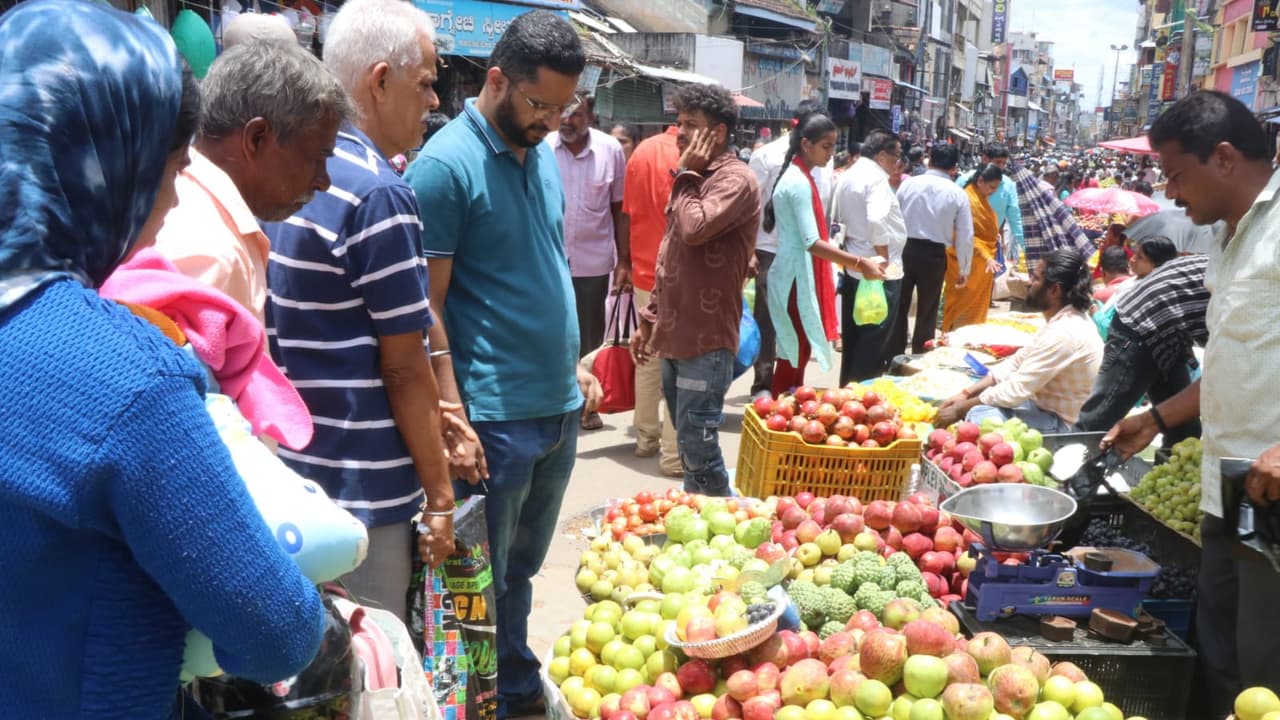 ಹಬ್ಬದ ಹಿನ್ನೆಲೆಯಲ್ಲಿ ಮಾರುಕಟ್ಟೆಯಲ್ಲಿ ಜನಸಂದಣಿ ಎಂದಿಗಿಂತ ಹೆಚ್ಚಾಗಿತ್ತು. ಜನ ಹಬ್ಬಕ್ಕೆ ಬೇಕಾದ ಸಾಮಾಗ್ರಿಯನ್ನು ಕೊಂಡುಕೊಳ್ಳಲು ಮಾರುಕಟ್ಟೆಯತ್ತ ಮುಖ ಮಾಡಿದ್ದರು.ಶಿವಮೊಗ್ಗ ನಗರದ ಪ್ರಮುಖ ವ್ಯಾಪಾರ ಸ್ಥಳಗಳಾದ ಗಾಂಧಿ ಬಜಾರ್, ನೆಹರು ರಸ್ತೆ, ದುರ್ಗಿಗುಡಿ, ಸವಳಂಗ ರಸ್ತೆ, ಬಿ.ಎಚ್.ರಸ್ತೆಯಲ್ಲಿ ಜನಸಂಚಾರ ಅಧಿಕವಾಗಿತ್ತು. ಹೂ, ಹಣ್ಣು ಮತ್ತು ಪೂಜಾ ಸಾಮಾಗ್ರಿಗಳನ್ನು ಕೊಳ್ಳುವ ದೃಶ್ಯ ಸಾಮಾನ್ಯವಾಗಿತ್ತು. ದಿನಸಿ ಅಂಗಡಿ, ಬಟ್ಟೆ ಅಂಗಡಿಗಳಲ್ಲಿ ಭರ್ಜರಿ ವ್ಯಾಪಾರ ಕಂಡುಬಂದಿತು.ಪ್ರತಿ ಬಡಾವಣೆಗಳಲ್ಲೂ ಗಣಪತಿ ಕೂರಿಸಲು ತಯಾರಿ ನಡೆಯುತಿತ್ತು. ಮನೆಗಳಲ್ಲೂ ಗಣೇಶ ಮತ್ತು ಗೌರಿ ಸ್ವಾಗತಕ್ಕೆ ಸಿದ್ಧತೆ ಮಾಡಿಕೊಳ್ಳಲಾಗಿದೆ. ಮಂಟಪ ನಿರ್ಮಿಸಲಾಗಿದೆ. ಜೊತೆಗೆ ಚಕ್ಕಲಿ, ಕೋಡುಬಳೆ, ಕಡುಬು, ಉಂಡೆಗಳು, ಸಿಹಿ ತಿನಿಸುಗಳ ತಯಾರಿ ಕೂಡ ಭರ್ಜರಿಯಾಗಿಯೇ ನಡೆದಿದೆ.ಈ ಬಾರಿ ಹಬ್ಬದ ಹಿನ್ನೆಲೆಯಲ್ಲಿ ತರಕಾರಿ, ಹಣ್ಣು, ಹೂಗಳ ಬೆಲೆಯಲ್ಲಿ ಅಂತಹ ವ್ಯತ್ಯಾಸವೇನೂ ಇರಲಿಲ್ಲ. ಹಬ್ಬದ ಹಿನ್ನೆಲೆಯಲ್ಲಿ ದೂರದ ಊರುಗಳಲ್ಲಿ ನೆಲೆಸಿರುವ ಸ್ಥಳೀಯರು ಊರಿಗೆ ಆಗಮಿಸುತ್ತಿದ್ದಾರೆ. ಹೀಗಾಗಿ ರೈಲು, ಬಸ್ ಹಾಗೂ ಖಾಸಗಿ ಬಸ್ ನಿಲ್ದಾಣದಲ್ಲಿ ಪ್ರಯಾಣಿಕರ ದಟ್ಟಣೆ ಹೆಚ್ಚಾಗಿದೆ. ಹಬ್ಬದ ಹಿನ್ನೆಲೆಯಲ್ಲಿ ಪೊಲೀಸ್ ಇಲಾಖೆ ಆಯಕಟ್ಟಿನ ಸ್ಥಳಗಳಲ್ಲಿ ಪೊಲೀಸ್ ಭದ್ರತೆ ಒದಗಿಸಿದೆ.ಪೂಜೆಗೆ ಅಗತ್ಯವಾದ ಹೂವು, ಹಣ್ಣು, ಬಾಳೆ ದಿಂಡು, ಮಾವಿನ ತೋರಣ, ತೆಂಗಿನ ಕಾಯಿ ಹಾಗೂ ಇನ್ನಿತರ ವಸ್ತುಗಳನ್ನು ಗಾಂಧಿ ಬಜಾರ್, ಹೂವಿನ ಮಾರುಕಟ್ಟೆಯಲ್ಲಿ ಖರೀದಿಸಲು ಗ್ರಾಹಕರು ಮುಗಿಬಿದ್ದರು. ಹೀಗಾಗಿ ಗಾಂಧಿ ಬಜಾರ್ ಭಾಗದಲ್ಲಿ ಭಾರೀ ಜನದಟ್ಟಣೆ ಕಂಡುಬಂದಿತು.ನಗರದ ಕೆಲವು ಕಡೆ ರಸ್ತೆ ಬದಿಗಳಲ್ಲಿ ಹೂವು, ಬಾಳೆ ದಿಂಡು, ಮಾವಿನ ಸೊಪ್ಪಿನ ರಾಶಿ ರಾಶಿ ಗ್ರಾಹಕರನ್ನು ಸೆಳೆದವು. ಹಬ್ಬದ ಅಂಗವಾಗಿ ಹೂವು, ಹಣ್ಣುಗಳ ಬೆಲೆ ಗಗನಕ್ಕೇರಿದ್ದವು.ಮಾರುಕಟ್ಟೆಯಲ್ಲಿ ಕೆ.ಜಿ ಸೇಬಿಗೆ 150 ರಿಂದ 200 ರು., ಕೆ.ಜಿ ದಾಳಿಂಬೆಗೆ 200 ರು., ಕೆ.ಜಿ ದ್ರಾಕ್ಷಿ ಬೆಲೆ 100 ರು., ಕೆ.ಜಿ ಮೋಸಂಬಿಗೆ 40-60 ರು., ಕೆ.ಜಿ ಕಿತ್ತಳೆಗೆ 60 ರು., ಬಾಳೆ ಹಣ್ಣಿಗೆ 80 ರು. ದರ ನಿಗದಿ ಮಾಡಲಾಗಿತ್ತು. ವ್ಯಾಪಾರಸ್ಥರು ಎಲ್ಲ ಹಣ್ಣುಗಳನ್ನು ಕೂಡಿಸಿ ಪ್ಯಾಕೇಜ್ ರೂಪದಲ್ಲಿ ಪೂಜೆಗಾಗಿ ಸಿದ್ಧಪಡಿಸಿದ್ದ ಬುಟ್ಟಿಗೆ 150 ರು. ದರ ನಿಗದಿ ಮಾಡಿದ್ದರು.ಎರಡು ಬಾಳೆ ದಿಂಡಿಗೆ 20-30 ರು. ಒಂದು ತೆಂಗಿನ ಕಾಯಿ ಬೆಲೆ 50ರಿಂದ 60 ರು. ಇತ್ತು. ಒಂದು ಕೆಜಿ ತೆಂಗಿನಕಾಯಿ ದರ ಕೂಡ 100 ರು. ಇದೆ. ಗೌರಿ ಗಣೇಶ ಹಬ್ಬದ ನಿಮಿತ್ತವಾಗಿ ಮಾರುಕಟ್ಟೆಯಲ್ಲಿ ಎಲ್ಲ ವಸ್ತುಗಳ ಬೆಲೆ ಏರಿಕೆ ಗ್ರಾಹಕರನ್ನು ಕಂಗಾಲು ಮಾಡಿತು.ಮಾರುಕಟ್ಟೆಯಲ್ಲಿ ಗೌರಿ, ಗಣೇಶ ಹಬ್ಬ ಹೊಸ ಹುರುಪು ಮೂಡಿಸಿದೆ. ಹಬ್ಬದ ಹಿನ್ನೆಲೆಯಲ್ಲಿ ಗಾಂಧಿ ಬಜಾರ್ ಸೇರಿದಂತೆ ಪ್ರಮುಖ ವ್ಯಾಪಾರ ಕೇಂದ್ರಗಳಲ್ಲಿ ಹಬ್ಬಕ್ಕೆ ಅಗತ್ಯವಿರುವ ಸಾಮಗ್ರಿಗಳ ಖರೀದಿಗೆ ಭಾರಿ ಸಂಖ್ಯೆಯಲ್ಲಿ ಜನರು ನೆರೆದಿದ್ದರು.ಗೌರಿ ಮತ್ತು ಗಣಪತಿ ಮೂರ್ತಿ ಖರೀದಿಗೆ ತಾಲೂಕು ಕೇಂದ್ರಗಳಿಂದಲೂ ಜನರು ಸೈನ್ಸ್ ಫೀಲ್ಡ್ಗೆ ಆಗಮಿಸಿದ್ದರು. ಅಲಂಕಾರ, ಖಾದ್ಯ ಮತ್ತು ಪೂಜಾ ಸಾಮಗ್ರಿಗಳನ್ನು ಖರೀದಿಸಲಾಯಿತು.