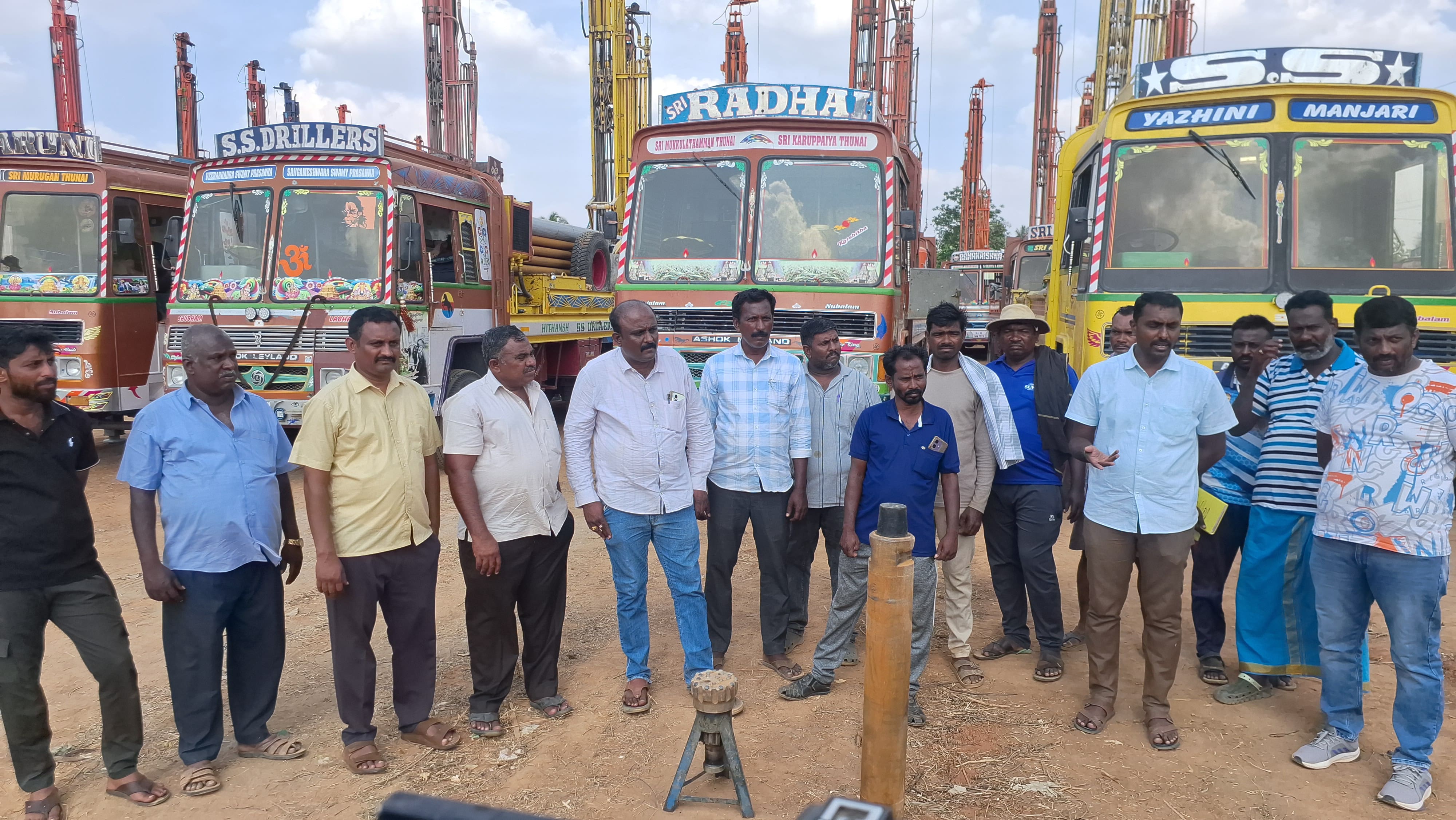 ತಾಲೂಕಿನ ಆಲಪ್ಪನಹಳ್ಳಿ ಬಳಿ ಪೂರ್ವ ಕರ್ನಾಟಕ ಗ್ರಾಮೀಣ ರಿಗ್ ಮಾಲೀಕರು ಬೋರ್ವೆಲ್ ಲಾರಿಗಳನ್ನು ನಿಲ್ಲಿಸಿ ಏಜೆಂಟರು ಹೊಸ ದರ ನಿಗದಿ ಮಾಡುವವರೆಗೆ ಪ್ರತಿಭಟನೆ ಮುಂದುವರಿಯುತ್ತದೆ ಎಂದು ಪಟ್ಟು ಹಿಡಿದಿದ್ದಾರೆ.ಈ ಸಂದರ್ಭದಲ್ಲಿ ಬೋರ್ವೆಲ್ ಮಾಲೀಕ ಚನ್ನಕೇಶವ ಮಾತನಾಡಿ, ಸದ್ಯದ ಪರಿಸ್ಥಿತಿಯಲ್ಲಿ ಬಿಟ್, ಆಯಿಲ್, ಹ್ಯಾಮರ್, ಕಾರ್ಮಿಕ ಹಾಗೂ ನಿರ್ವಹಣಾ ವೆಚ್ಚ ಶೇ.೩೦ರಿಂದ ೫೦ರಷ್ಟು ಹೆಚ್ಚಳವಾಗಿರುವ ಪರಿಣಾಮ ರಿಗ್ ಮಾಲೀಕರು ಬೋರ್ವೆಲ್ ಲಾರಿಗಳ ನಿರ್ವಹಣೆ ಮಾಡುವುದೇ ಸವಾಲಾಗಿದೆ. ಪ್ರಮುಖವಾಗಿ 53 ಸಾವಿರ ಇದ್ದ ಬಿಟ್ ಕಳೆದ 15 ದಿನಗಳಲ್ಲಿ 78 ಸಾವಿರಕ್ಕೆ ಏರಿಕೆಯಾಗಿದೆ. ಇದರ ಬೆಲೆ ಮುಂದಿನ ದಿನಗಳಲ್ಲಿ ಮತ್ತಷ್ಟು ಏರಿಕೆ ಆಗಲಿದೆ. ಅಲ್ಲದೆ ಎಂಜಿನ್ ಆಯಿಲ್, ಡೀಸೆಲ್, ಪೈಪ್ಗಳು ಸೇರಿದಂತೆ ಎಲ್ಲಾ ವಸ್ತುಗಳು ಏರಿಕೆ ಕಂಡಿದೆ. ಚಾಲಕರಿಗೆ ಸಂಬಳ ಕೊಡಲಿಕ್ಕು ಕಷ್ಟವಾಗಿದೆ. ಇದರಿಂದ ಮಾಲೀಕರು ಲಾರಿಗಳ ಸಾಲ ಕಟ್ಟೋಕು ಆಗ್ತಿಲ್ಲ. ಆದ್ದರಿಂದ ಬೆಲೆ ಏರಿಕೆ ಅನಿವಾರ್ಯ. ಏಜೆಂಟರ ಜೊತೆ ಸಭೆ ನಡೆಸಿ ನಿರ್ಧಾರ ಮಾಡ್ತೇವೆ ಎಂದರು.