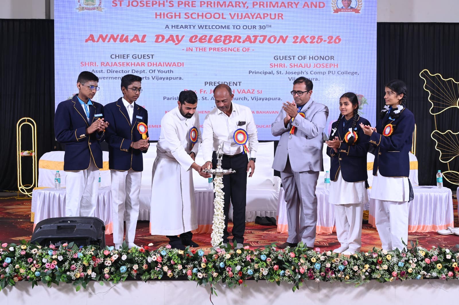 ಅಧ್ಯಕ್ಷತೆ ಮಹಿಸಿದ್ದ ರೆವರೆಂಡ್ ಫಾದರ್ ಜೋಸೆಫ್ ವಾಝ್ ಮಾತನಾಡಿ, ದೇಶದ ಪ್ರಗತಿಗೆ ಶಿಕ್ಷಣ ಸಾಧನವಾಗಿದೆ ಇಂತಹ ಗುಣಮಟ್ಟದ ಶಿಕ್ಷಣವನ್ನು ಕಳೆದ 3 ದಶಕಗಳಿಂದ ವಿಜಯಪುರದ ವಿದ್ಯಾರ್ಥಿಗಳಿಗೆ ಸೇಂಟ್ ಜೋಸೆಫ್ ಶಿಕ್ಷಣ ಸಂಸ್ಥೆಯು ನೀಡುತ್ತಿರುವುದು ಶ್ಲಾಘನೀಯವಾದದ್ದು ಎಂದರು.ಭಾರತಿ ಕರಡಿ, ಪ್ರದೀಪ ಪಾಟೀಲ ಜಯತೀರ್ಥ ಪಂಢರಿ, ರಾಜೇಶ ನುಚ್ಚಿ, ಪುರುಷೋತ್ತಮ.ಪಿ, ಆನಂದ ಬಿರಾದಾರ ಇದ್ದರು.