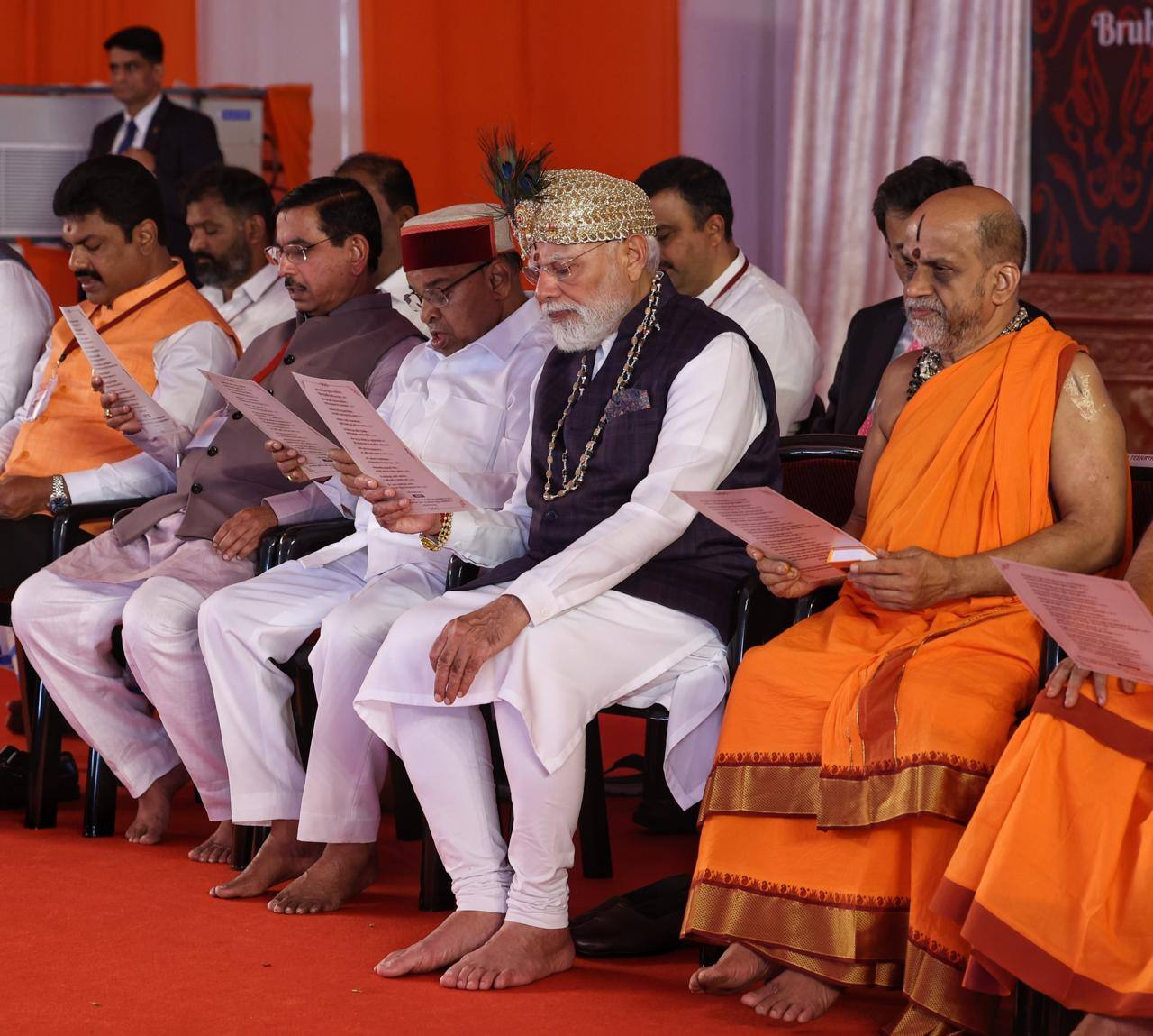 ಉಡುಪಿ: ಲಕ್ಷ ಕಂಠ ಗೀತೆ ಪಾರಾಯಣದಲ್ಲಿ ಭಾಗವಹಿಸಿದ ಪ್ರಧಾನಿ ನರೇಂದ್ರ ಮೋದಿ ಅವರು ಗೀತೆಯ 15ನೇ, ಊರ್ಧ್ವ-ಮೂಲಮಧಃ-ಶಾಖ ಅಶ್ವತ್ಥಂ ಎಂದು ಪ್ರಾರಂಭವಾಗುವ ಪುರುಷೋತ್ತಮಯೋಗ ಅಧ್ಯಾಯದ ಶ್ಲೋಕಗಳನ್ನು ಪಠಿಸಿದರು, ಈ ಸಂದರ್ಭದಲ್ಲಿ ಅವರೊಂದಿಗೆ ಈ ಶ್ಲೋಕಗಳನ್ನು ಪಠಿಸುತ್ತಿದ್ದ ಭಕ್ತರ ಧ್ವನಿ ತಾರಕಕ್ಕೇರಿತ್ತು.ಚಂದ್ರಚೂಡ ಶಿವಶಂಕರ...:ಎಲ್ಲರಿಗೂ ನಮಸ್ಕಾರಗಳು ಎಂದು ಭಾಷಣ ಆರಂಭಿಸಿದ ಮೋದಿ, ನಡುವೆ ಗೀತೆಯ ಅನೇಕ ಶ್ಲೋಕಗಳನ್ನು ಉದ್ಧರಿಸಿದರು. ಉಡುಪಿಗೂ ದಾಸರಿಗೂ ಇರುವ ಸಂಬಂಧವನ್ನು ವಿವರಿಸುತ್ತಾ, ಸಾಮಾಜಿಕ ಜಾಲತಾಣಗಳಲ್ಲಿ ಪುರಂದರ ದಾಸರ ‘ಚಂದ್ರಚೂಡ ಶಿವಶಂಕರ ಪಾರ್ವತಿ...’ ಎಂಬ ಹಾಡು ಯುವಜನತೆಯಲ್ಲಿ ಭಕ್ತಿಭಾವಕ್ಕೆ ಕಾರಣವಾಗಿದೆ ಎಂದರು. ಕನಕದಾಸನ ಕಿಂಡಿಯಲ್ಲಿ ಕೃಷ್ಣನನ್ನು ನೋಡಿದಾಗ ವಿಶೇಷವಾದ ಭಕ್ತಿಯ ಅನುಭೂತಿ ತನಗಾಯಿತು ಎಂದರು.