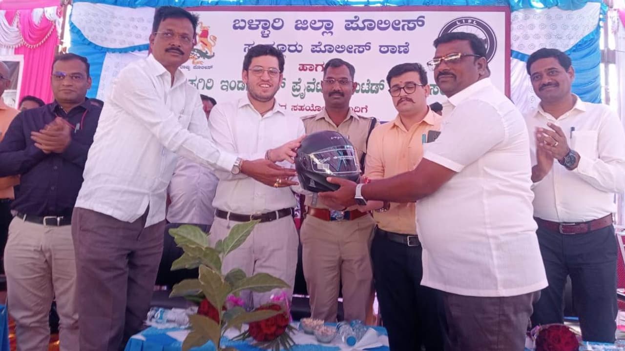 ಸಂಡೂರು: ಪಟ್ಟಣದ ಪುರಸಭೆ ಬಸ್ ನಿಲ್ದಾಣದ ಬಳಿ ಸೋಮವಾರ ಜಿಲ್ಲಾ ಪೊಲೀಸ್, ಸಂಡೂರು ಠಾಣೆ ಹಾಗೂ ಸ್ಮಯೋರ್ ಸಂಸ್ಥೆಯ ಅಂಗಸಂಸ್ಥೆಯಾದ ಲೋಹಗಿರಿ ಇಂಡಸ್ಟ್ರಿಯಲ್ ಪ್ರೈವೇಟ್ ಲಿಮಿಟೆಡ್ ಆಶ್ರಯದಲ್ಲಿ ನಡೆದ ಕಾರ್ಯಕ್ರಮದಲ್ಲಿ ಲೋಹಗಿರಿ ಇಂಡಸ್ಟ್ರಿಯಲ್ ಪ್ರೈವೇಟ್ ಲಿಮಿಟೆಡ್ ವತಿಯಿಂದ ಸಾರ್ವಜನಿಕರಿಗೆ ಉಚಿತವಾಗಿ ೨೦೦೦ ಹೆಲ್ಮೆಟ್ಗಳನ್ನು ವಿತರಿಸಲಾಯಿತು.