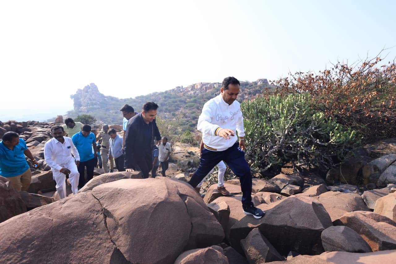 ಬಳ್ಳಾರಿ: ಜಿಲ್ಲೆಯ ಐತಿಹಾಸಿಕ ಹಾಗೂ ಸಾಂಪ್ರದಾಯಿಕ ಮಹತ್ವ ಹೊಂದಿರುವ ಪ್ರಸಿದ್ಧ ಪ್ರವಾಸಿ ತಾಣವಾದ ಬಳ್ಳಾರಿ ಹೊರ ವಲಯದ ಸಂಗನಕಲ್ಲು ಹೀರೆಗುಡ್ಡಕ್ಕೆ ಜಿಲ್ಲಾಧಿಕಾರಿ ನಾಗೇಂದ್ರ ಪ್ರಸಾದ್ ಕೆ. ಚಾರಣ ಮಾಡಿ, ಪರಿಶೀಲನೆ ನಡೆಸಿದರು.