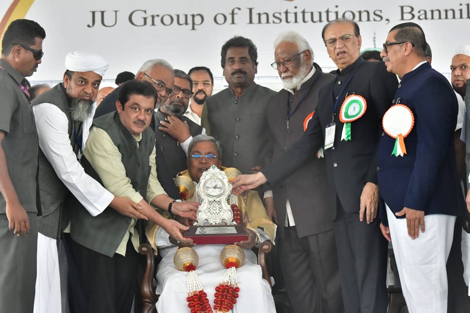 25ಕೆಆರ್ ಎಂಎನ್ 1.ಜೆಪಿಜಿಬಿಡದಿ ಹೋಬಳಿ ಬನ್ನಿಕುಪ್ಪೆಯ ಜೆಯು ಗ್ರೂಪ್ ಆಫ್ ಇನ್ಸ್ಟಿಟ್ಯೂಶನ್ ಆವರಣದಲ್ಲಿ ದಾರುಲ್ ಖುರಾನ್ ಕ್ಯಾಂಪಸ್ ನ ಉದ್ಘಾಟನಾ ಸಮಾರಂಭದಲ್ಲಿ ಮುಖ್ಯಮಂತ್ರಿ ಸಿದ್ದರಾಮಯ್ಯ ಅವರನ್ನು ಸನ್ಮಾನಿಸಲಾಯಿತು.