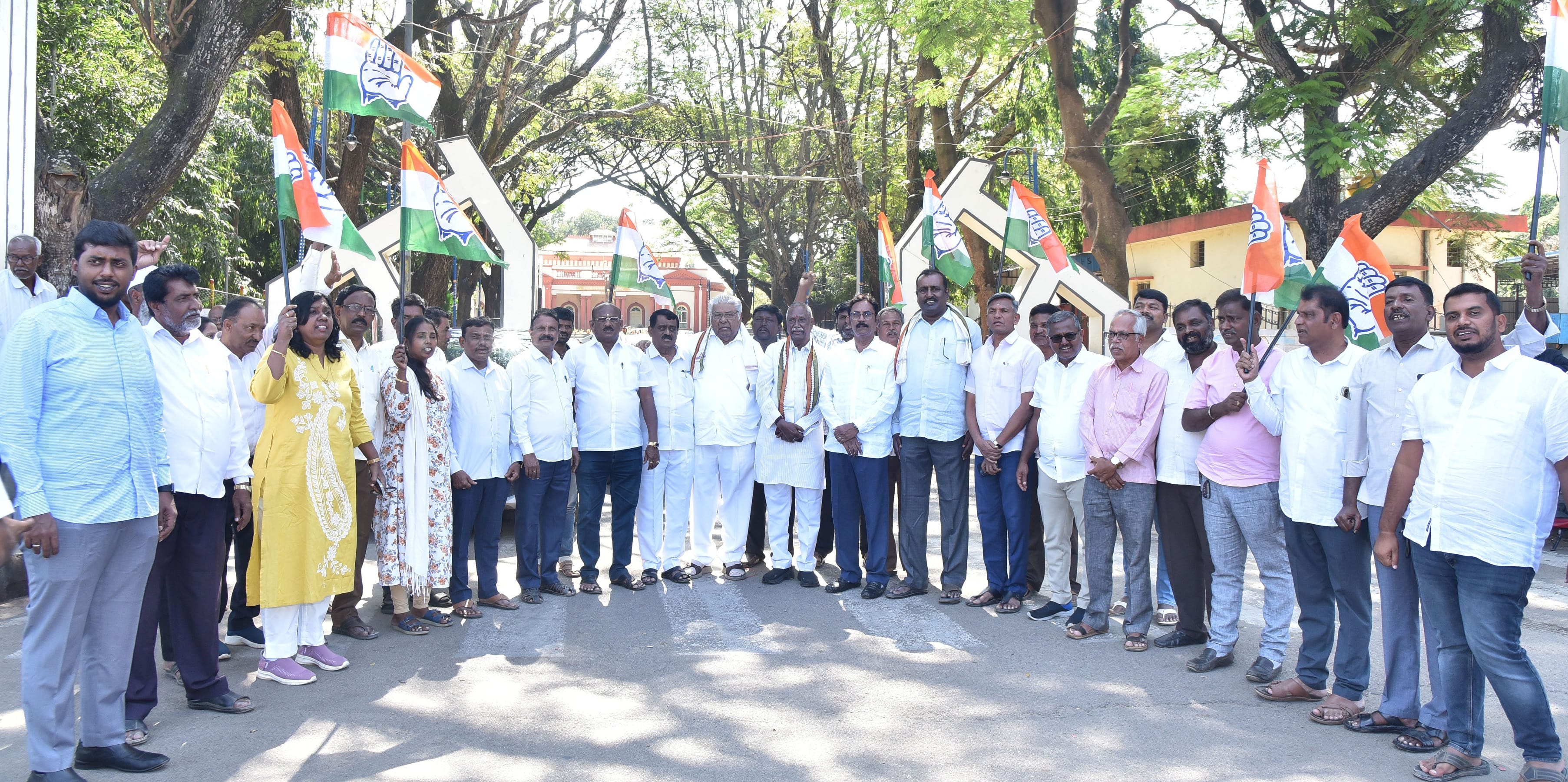 ದೆಹಲಿ ಹೈಕೋರ್ಟ್ ನ್ಯಾಷನಲ್ ಹೆರಾಲ್ಡ್ ಪ್ರಕರಣದ ಖಾಸಗಿ ದೂರನ್ನು ವಜಾಗೊಳಿಸುವ ಹಿನ್ನೆಲೆಯಲ್ಲಿ ಜಿಲ್ಲಾ ಕಾಂಗ್ರೆಸ್ ವತಿಯಿಂದ ನಗರದ ಟೌನ್ಹಾಲ್ ವೃತ್ತದಲ್ಲಿ ಜಿಲ್ಲಾ ಕಾಂಗ್ರೆಸ್ ಅಧ್ಯಕ್ಷ ಜಿ.ಚಂದ್ರಶೇಖರಗೌಡ ಅವರ ನೇತೃತ್ವದಲ್ಲಿ ಕಾರ್ಯಕರ್ತರು, ಮುಖಂಡರುಗಳು ವಿಜಯೋತ್ಸವ ಹಾಗೂ ಬಿಜೆಪಿಯ ದ್ವೇಷ ರಾಜಕಾರಣದ ವಿರುದ್ಧ ಪ್ರತಿಭಟನೆ ನಡೆಸಿದರು.
