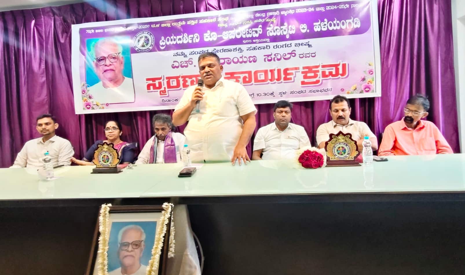 ಹಳೆಯಂಗಡಿ ಪ್ರಿಯದರ್ಶಿನಿ ಕೋ-ಆಪರೇಟಿವ್ ಸೊಸೈಟಿ ಆಶ್ರಯದಲ್ಲಿ ಸೊಸೈಟಿಯ ಸಭಾ ಭವನದಲ್ಲಿ ಜರಗಿದ ಸಂಘದ ಪ್ರೇರಣಾಶಕ್ತಿ, ಸಹಕಾರಿ ರಂಗದ ಭೀಷ್ಮ ಎಚ್. ನಾರಾಯಣ ಸನಿಲ್ ಅವರ ಸ್ಮರಣಾ ಕಾರ್ಯಕ್ರಮ ಅಧ್ಯಕ್ಷತೆ ವಹಿಸಿ ಮಾತನಾಡಿದರು.
