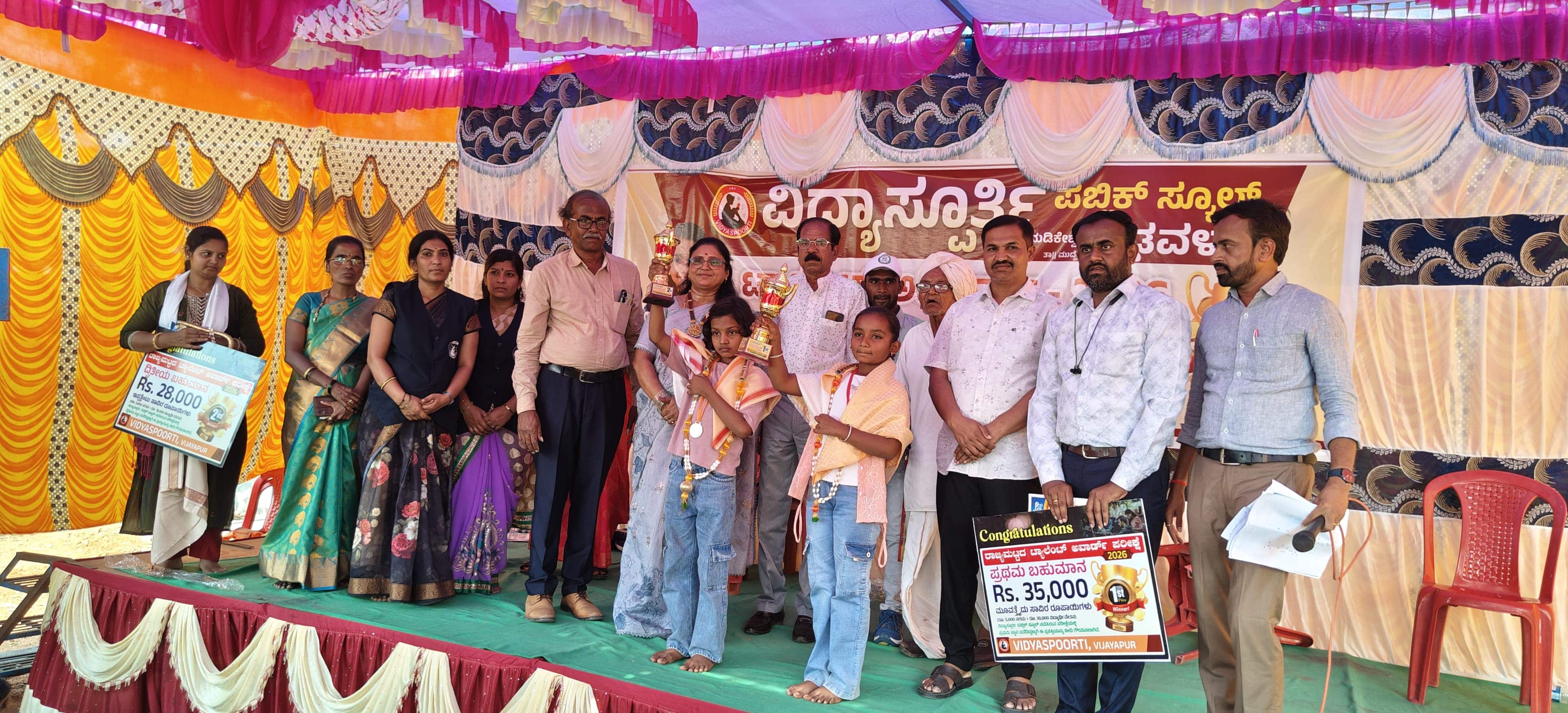 ತಾಲೂಕಿನ ಢವಳಗಿ ಗ್ರಾಮದ ವಿದ್ಯಾಸ್ಪೂರ್ತಿ ಪಬ್ಲಿಕ್ ಸ್ಕೂಲ್ನಲ್ಲಿ ಗ್ರಾಮೀಣ ಪ್ರತಿಭಾವಂತ ವಿದ್ಯಾರ್ಥಿಗಳಿಗಾಗಿ ಆಯೋಜಿಸಿದ್ದ ಟಾಲೆಂಟ್ ಅವಾರ್ಡ್ ಪರೀಕ್ಷೆಯಲ್ಲಿ ವಿಜಯಪುರ, ಹೂವಿನ ಹಿಪ್ಪರಗಿ, ತಾಳಿಕೋಟೆ, ರಾಜನಕೋಳೂರು ಸೇರಿದಂತೆ ವಿವಿಧ ಪ್ರದೇಶಗಳಿಂದ 300ಕ್ಕೂ ಹೆಚ್ಚು ವಿದ್ಯಾರ್ಥಿಗಳು ಭಾಗವಹಿಸಿದ್ದರು.ಪರೀಕ್ಷೆಯಲ್ಲಿ ಹೂ.ಹಿಪ್ಪರಗಿಯ ಆದ್ಯ ಶಿವಯೋಗಿ ಪ್ರಥಮ ಬಹುಮಾನವಾಗಿ ₹35,000 (₹5,000 ನಗದು + ₹30,000 ಶಿಷ್ಯವೇತನ) ಪಡೆದರು. ನಿಡಗುಂದಿಯ ಸಮನ್ವಿತ ಸಜ್ಜನ ದ್ವಿತೀಯ ಬಹುಮಾನವಾಗಿ ₹28,000 (₹3000 ನಗದು + ₹25,000 ಶಿಷ್ಯವೇತನ) ಮತ್ತು ಢವಳಗಿಯ ಸ್ಮಿತಿಕಾ ಬಿರಾದಾರ ತೃತೀಯ ಬಹುಮಾನವಾಗಿ ₹22,000 (₹.2000 ನಗದು + ₹20,000 ಶಿಷ್ಯವೇತನ) ಪಡೆದರು. ಇನ್ನೂ 10 ವಿದ್ಯಾರ್ಥಿಗಳಿಗೆ ಸಮಾನಾಧಕರ ಬಹುಮಾನ ವಿತರಿಸಲಾಯಿತು.ವಿಜೇತರ ಅಭಿನಂದನಾ ಸಮಾರಂಭದಲ್ಲಿ ಮುಖ್ಯ ಅತಿಥಿಗಳಾಗಿ ಮಾತನಾಡಿದ ಸಮಾಜ ಸೇವಕ ಶಾಂತಗೌಡ ಪಾಟೀಲ, ಶಿಕ್ಷಣದ ಮಹತ್ವವನ್ನು ಉಲ್ಲೇಖಿಸಿ, ಗ್ರಾಮೀಣ ವಿದ್ಯಾರ್ಥಿಗಳಿಗೆ ಗುಣಮಟ್ಟದ ಶಿಕ್ಷಣ ನೀಡುವ ಸಂಸ್ಥೆಗಳಿಗೆ ಬೆಂಬಲ ಅಗತ್ಯವಿದೆ ಎಂದರು.