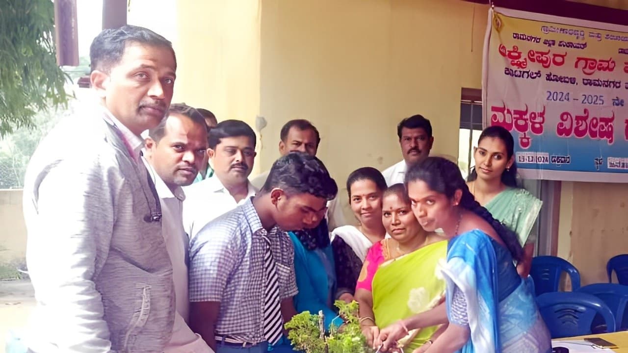 13ಕೆಆರ್ ಎಂಎನ್ 7.ಜೆಪಿಜಿರಾಮನಗರ ತಾಲೂಕಿನ ಲಕ್ಷ್ಮೀಪುರ ಜನತಾ ರೂರಲ್ ಹೈಸ್ಕೂಲ್ ಆವರಣದಲ್ಲಿ ಶುಕ್ರವಾರ ನಡೆದ ಗ್ರಾಪಂನ 2024-25ನೇ ಸಾಲಿನ ಮಕ್ಕಳ ವಿಶೇಷ ಗ್ರಾಮ ಸಭೆಯನ್ನು ಅತಿಥಿಗಳು ಗಿಡಕ್ಕೆ ನೀರು ಹಾಕುವ ಮೂಲಕ ಉದ್ಘಾಟಿಸಿದರು.