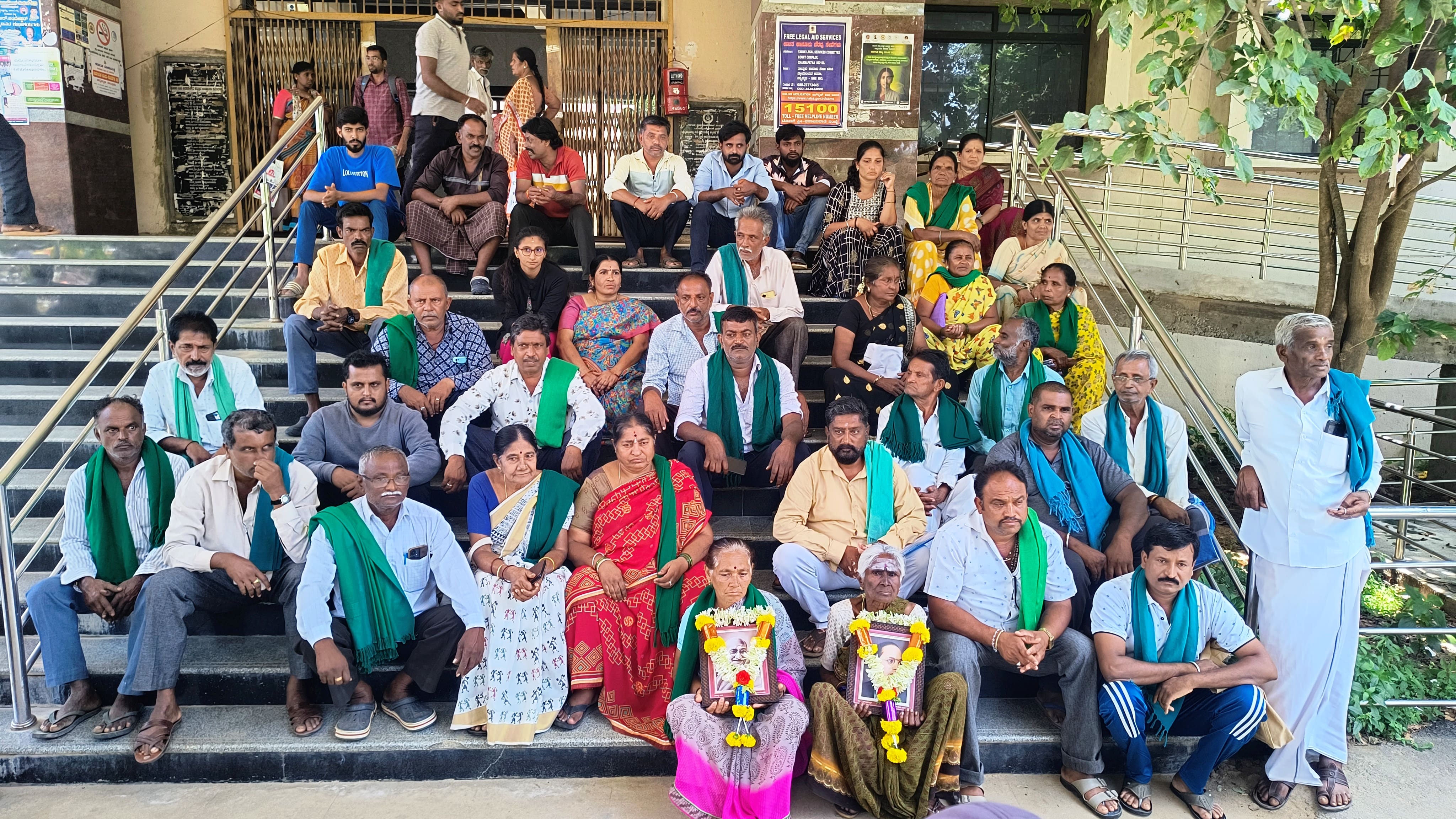 ಕಳೆದ 75 ವರ್ಷಗಳಿಂದ ಮಂಗಳವಾರಪೇಟೆಯಲ್ಲಿನ ತುಂಡು ಭೂಮಿಯಲ್ಲಿ ಬೇಸಾಯ ಮಾಡುತ್ತಿದ್ದು, ನಮ್ಮ ಭೂಮಿಗೆ ನಕಲಿ ದಾಖಲೆಗಳನ್ನು ಸೃಷ್ಟಿಸಿ ಬಲವಂತವಾಗಿ ನಮ್ಮನ್ನು ಒಕ್ಕಲೆಬ್ಬಿಸುವ ಕೆಲಸ ಮಾಡಲಾಗುತ್ತಿದೆ ಎಂದು ಆರೋಪಿಸಿ ಮಂಗಳವಾರಪೇಟೆ ರೈತರು ಹಾಗೂ ರೈತ ಸಂಘಟನೆಯ ಮುಖಂಡರು ತಾಲೂಕು ಕಚೇರಿ ಮುಂಭಾಗ ಪ್ರತಿಭಟನೆ ನಡೆಸಿದರು.ನಗರದ ತಾಲೂಕು ಕಚೇರಿ ಆವರಣದಲ್ಲಿ ಜಮಾಯಿಸಿ ರೈತರು ಹಾಗೂ ರೈತ ಸಂಘಟನೆಯ ಮುಖಂಡರು, ಸರ್ವೆ ನಂಬರ್ 52, 53 ಹಾಗೂ 67 ರಲ್ಲಿ ಒಟ್ಟು 24 ಜನರಿಗೆ 75 ವರ್ಷಗಳ ಹಿಂದೆಯೇ 17 ಎಕರೆ 24 ಗುಂಟೆ ಜಮೀನು ಭೂ ಮಂಜುರಾತಿಯಾಗಿದೆ. ಈ ಜಮೀನಿನಲ್ಲಿ ನಾವು ಅಂದಿನಿಂದ ಇಂದಿನವರೆಗೂ ವ್ಯವಸಾಯ ಮಾಡಿಕೊಂಡು ಬರುತ್ತಿದ್ದೇವೆ. ಆದರೆ, ಕಳೆದ ಶನಿವಾರ ಮಂಗಳವಾರಪೇಟೆಯ ಆರು ಮಂದಿ ಏಕಾಏಕಿ ನಮ್ಮ ಭೂಮಿಗೆ ಬಂದು ಇದು ನಮಗೆ ಸೇರಿದ್ದೆಂದು ಪುಡಿ ರೌಡಿಗಳ ಜೊತೆ ಭತ್ತದ ಬೆಳೆಯನ್ನು ನಾಶಪಡಿಸಿ ದಬ್ಬಾಳಿಕೆ ನಡೆಸಿದ್ದಾರೆಂದು ಆರೋಪಿಸಿದರು.ಹತ್ತಾರು ವರ್ಷಗಳಿಂದ ಆ ಭೂಮಿಯನ್ನು ನಂಬಿಕೊಂಡೆ ನಮ್ಮ ಬದುಕು ಸಾಗುತ್ತಿದ್ದು ಇದೀಗ ಈ ಭೂಮಿ ನಮ್ಮದೆಂದು ಬಂದರೆ ನಮ್ಮ ಗತಿ ಏನು. ನಮಗೆ ಇಷ್ಟು ಅನ್ಯಾಯವಾಗುತ್ತಿದ್ದರೂ ನ್ಯಾಯ ಕೊಡಿಸಬೇಕಾದ ಜಿಲ್ಲಾಡಳಿತ ಕಣ್ಮುಚ್ಚಿ ಕುಳಿತಿದೆ ಎಂದು ಆಕ್ರೋಶ ವ್ಯಕ್ತಪಡಿಸಿದರು.ಈ ವೇಳೆ ಹಿರಿಯ ರೈತ ನಾಯಕಿ ಅನುಸೂಯಮ್ಮ ಮಾತನಾಡಿ, ಜಿಲ್ಲಾಧಿಕಾರಿಗಳ ಆದೇಶವಿದ್ದರೂ ಅದನ್ನು ಕಡೆಗಣಿಸಿ ರೈತರನ್ನು ಒಕ್ಕಲೆಬ್ಬಿಸಲು ಯತ್ನಿಸುತ್ತಿರುವುದು ಖಂಡನೀಯ. ಇಂತಹ ಘಟನೆಗಳಿಗೆ ಅವಕಾಶ ನೀಡಿರುವ ತಾಲೂಕು ಆಡಳಿತದ ನಡೆ ರಿಯಲ್ ಎಸ್ಟೇಟ್ ಮಾಫಿಯಾ ಪರವಾಗಿ ನಿಂತಿರುವಂತೆ ಭಾಸವಾಗುತ್ತಿದೆ ಎಂದರು.ರೈತ ಮಹಿಳೆ ಮಂಗಳವಾರಪೇಟೆ ರತ್ನಮ್ಮ ಮಾತನಾಡಿ, ನಮ್ಮ ಮಾವನವರ ಕಾಲದಿಂದಲೂ ಆ ಭೂಮಿಯಲ್ಲಿ ಬೇಸಾಯ ಮಾಡಿಕೊಂಡು ಬರುತ್ತಿದ್ದೇವೆ, ಈ ಕ್ಷಣಕ್ಕೂ ಅಲ್ಲಿ ಭತ್ತ ಬೆಳೆದಿದ್ದು, ಶನಿವಾರ ಹತ್ತಾರು ಮಂದಿ ಆಗಮಿಸಿ, ಜಮೀನು ನಮ್ಮದೆಂದು ಏಕಾಏಕಿ ಕಲ್ಲು ಕಂಭ ನೆಡಲು ಮುಂದಾದರೂ. ನಾವೆಲ್ಲ ಸೇರಿ ಪ್ರತಿಭಟಿಸಿ ವಿರೋಧಿಸಿದ್ದು, ಈ ಬಗ್ಗೆ ಪೊಲೀಸ್ ಠಾಣೆಯಲ್ಲಿ ದೂರು ಸಹ ನೀಡಿರುವುದಾಗಿ ವಿವರಣೆ ನೀಡಿದರು.ಪ್ರತಿಭಟನೆಯಲ್ಲಿ ರೈತ ಸಂಘದ ಮುಖಂಡರಾದ ಅಮ್ಮಳ್ಳಿದೊಡ್ಡಿ ರಾಮೇಗೌಡ, ಸಿಂಗರಾಜಿಪುರ ದೇವರಾಜು, ಮಂಗಳವಾರ ಪೇಟೆ ವಿಶ್ವ, ಕೃಷ್ಣ ಸೇರಿದಂತೆ ಹಲವರು ಹಾಜರಿದ್ದರು.ಪೋಟೊ೧೩ಸಿಪಿಟಿ೧: ತಾಲೂಕು ಕಚೇರಿ ಮುಂಭಾಗ ಪ್ರತಿಭಟನೆ ಮಂಗಳವಾರಪೇಟೆ ಗ್ರಾಮಸ್ಥರು ಹಾಗೂ ರೈತಸಂಘದ ಪದಾಧಿಕಾರಿಗಳು ಪ್ರತಿಭಟನೆ ನಡೆಸಿದರು.