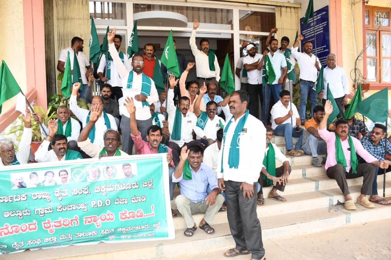 ಚಿಕ್ಕಮಗಳೂರು ಜಿಪಂ ಎದುರು ಪ್ರತಿಭಟನೆ ನಡೆಸಿದ ರೈತ ಸಂಘದ ಪದಾಧಿಕಾರಿಗಳು ಆಲ್ದೂರು ಗ್ರಾಮ ಪಂಚಾಯಿತಿ ವ್ಯಾಪ್ತಿಯ ಚಿಕ್ಕಮಾಗರಹಳ್ಳಿ ಗ್ರಾಮದ ಗ್ರಾಮ ಠಾಣಾ ವ್ಯಾಪ್ತಿಯಲ್ಲಿ ಬರುವ ಕಾಲುದಾರಿ ಜಾಗವನ್ನು ಸಿ.ವಿ ವಿಜೇಂದ್ರ ಅವರು ಒತ್ತವರಿ ಮಾಡಿಕೊಂಡಿದ್ದು, ಕೂಡಲೇ ಒತ್ತುವರಿ ತೆರವು ಮಾಡುವಂತೆ ಒತ್ತಾಯಿಸಿದರು. ಡಿ.ಮಹೇಶ್, ಹೇಮಂತ್, ಕುಮಾರಸ್ವಾಮಿ, ಎಂ.ಸಿ.ಬಸವರಾಜ್ ಮತ್ತಿತರರಿದ್ದರು.