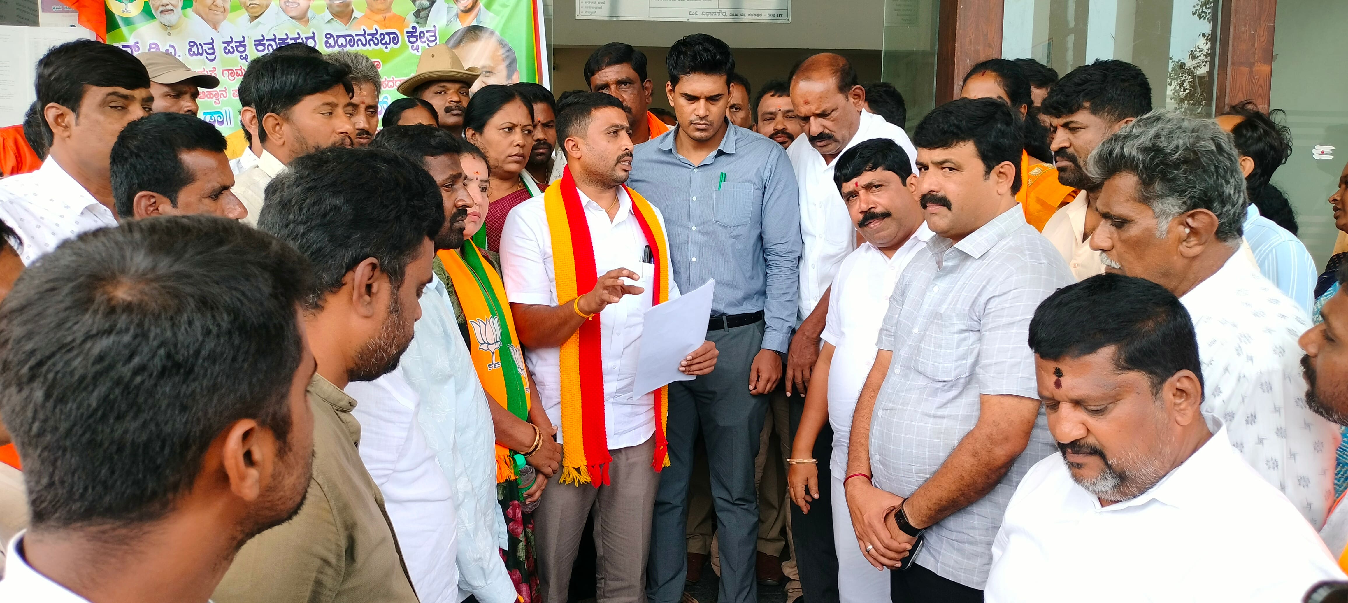 ಪಂಚಾಯಿತಿ ಕಟ್ಟಡದ ಉದ್ಘಾಟನೆಯಲ್ಲಿ ಶಿಷ್ಟಾಚಾರ ಪಾಲಿಸದೆ ಉಲ್ಲಂಘನೆ ಮಾಡಿರುವ ಪಿಡಿಒ ಮತ್ತು ಅದಕ್ಕೆ ಬೆಂಬಲವಾಗಿ ನಿಂತಿರುವ ಇಒ ಅವರನ್ನು ಈ ಕೂಡಲೇ ಅಮಾನತು ಮಾಡಬೇಕು ಹಾಗೂ ಆಗಿರುವ ತಪ್ಪನ್ನು ಮೂರು ದಿನಗಳಲ್ಲಿ ಸರಿಪಡಿಸಿ ಒತ್ತಾಯಿಸಿ ತಹಸೀಲ್ದಾರ್ ಸಂಜಯ್ ಮುಖಾಂತರ ಸರ್ಕಾರಕ್ಕೆ ಸಲ್ಲಿಸಿದರು.ಇಒ ಅವಿನಾಶ್ ಅದಕ್ಕೆ ಉತ್ತರಿಸಿ,ನೀವು ನನಗೆ ದೂರು ನೀಡಿದ್ದೀರಿ, ನಾನು ಪಿಡಿಒ ಅವರಿಗೆ ನೋಟಿಸ್ ನೀಡಿದ್ದೇನೆ. ಅವರಿಂದ ಉತ್ತರ ಬಂದ ಮೇಲೆ ಶಿಷ್ಟಾಚಾರ ಉಲ್ಲಂಘನೆ ಸಂಬಂಧ ಕ್ರಮ ಕೈಗೊಳ್ಳುತ್ತೇನೆ ಎಂದು ಉತ್ತರಿಸಿದರು. ಜೆಡಿಎಸ್ ತಾಲೂಕು ಅಧ್ಯಕ್ಷ ಬಿ ನಾಗರಾಜು, ಬಿಜೆಪಿ ತಾಲೂಕು ಅಧ್ಯಕ್ಷ ಕೆ.ಪಿ.ಕುಮಾರ್, ನಗರ ಘಟಕದ ಅಧ್ಯಕ್ಷ ಮಂಜುನಾಥ್, ದಿಶಾ ಕಮಿಟಿ ಸದಸ್ಯರಾದ ರಾಜೇಶ್, ಶೋಭಾ, ಶ್ರೀನಿವಾಸ್, ಜೆಡಿಎಸ್ ಮತ್ತು ಬಿಜೆಪಿ ಮುಖಂಡರಾದ ನಲ್ಲಳ್ಳಿ ಕುಮಾರ್, ಚಿನ್ನಸ್ವಾಮಿ, ಗ್ರಾಮ ಪಂಚಾಯಿತಿ ಸದಸ್ಯ ಜಯರಾಮ, ಸ್ಟುಡಿಯೋ ಚಂದ್ರು,ಜೆಡಿಎಸ್- ಬಿಜೆಪಿ ಮುಖಂಡರಾದ ಯೋಗೇಶ್, ಕಾಳೇಗೌಡ, ಪಾಲಾಕ್ಷ, ಶೇಖರ್, ಅಶ್ವಥ್, ಮರಿಯಪ್ಪ, ತಿಮ್ಮೇಗೌಡ, ಶಿವಪ್ರಸಾದ್, ಕುಮಾರಸ್ವಾಮಿ, ರಾಮು, ರಾಜೇಂದ್ರ, ತಿಮ್ಮಪ್ಪ, ಕೆಂಪರಾಜು, ಯೂನಸ್ ಅಲಿಖಾನ್, ಶಿವರಾಜು, ಸ್ವಾಮಿಗೌಡ, ಶಶಿಕಲಾ, ಮಂಜುಳಾ, ರಮೇಶ್, ಶಾಂತಿ ಮೇರಿ, ಪವಿತ್ರ, ಮಮತಾ ನಾರಾಯಣ್, ರತ್ನಮ್ಮ ಮಹದೇವಮ್ಮ, ಮಂಜುಳಾ, ಸೇರಿದಂತೆ ಅನೇಕರು ಪ್ರತಿಭಟನೆಯಲ್ಲಿ ಪಾಲ್ಗೊಂಡಿದ್ದರು.ಕೆ ಕೆ ಪಿ ಸುದ್ದಿ 04: