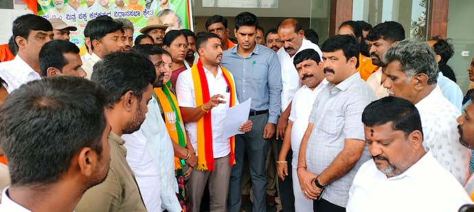 ಶಿಷ್ಟಾಚಾರ ಉಲ್ಲಂಘನೆ ಮಾಡಿರುವ ಪಿಡಿಒ ವಿರುದ್ಧ ಕ್ರಮ ಕೈಗೊಳ್ಳುವುದಾಗಿ ಹೇಳಿ, ಕ್ರಮ ಕೈಗೊಳ್ಳದ ಇಒ ವಿರುದ್ಧ ಜೆಡಿಎಸ್ ಮತ್ತು ಬಿಜೆಪಿ ಪಕ್ಷದವರು ಜಂಟಿಯಾಗಿ ತಾಲೂಕು ಕಚೇರಿ ಮುಂಭಾಗ ಪ್ರತಿಭಟನೆಯನ್ನು ನಡೆಸಿ ಇಒ ಅವರನ್ನು ಅಮಾನತು ಮಾಡುವಂತೆ ಒತ್ತಾಯಿಸಿದರು.ಕಸಬಾ ಹೋಬಳಿ ಟಿ.ಬೇಕುಪ್ಪೆ ಗ್ರಾಮ ಪಂಚಾಯಿತಿ ನೂತನ ಕಟ್ಟಡ ಉದ್ಘಾಟನೆಯಲ್ಲಿ ಶಿಷ್ಟಾಚಾರ ಪಾಲಿಸಿಲ್ಲ. ಕಟ್ಟಡದ ಮೇಲೆ ಡಿಸಿಎಂ ಡಿ.ಕೆ.ಶಿವಕುಮಾರ್, ಮಾಜಿ ಸಂಸದ ಡಿ.ಕೆ.ಸುರೇಶ್ ವಿಧಾನ ಪರಿಷತ್ ಸದಸ್ಯ ಎಸ್. ರವಿ ಅವರ ಭಾವಚಿತ್ರ ಹಾಕಲಾಗಿದೆ. ಹಾಲಿ ಸಂಸದ ಡಾ.ಸಿ.ಎನ್. ಮಂಜುನಾಥ್ ಅವರ ಭಾವಚಿತ್ರವನ್ನು ಹಾಕದೆ ಶಿಷ್ಟಾಚಾರ ಉಲ್ಲಂಘನೆ ಮಾಡಿ ಅಪಮಾನ ಮಾಡಲಾಗಿದೆ ಎಂದು ಪ್ರತಿಭಟನಾಕಾರರು ಆಕ್ರೋಶ ವ್ಯಕ್ತಪಡಿಸಿದರು.ಶಿಷ್ಟಾಚಾರ ಉಲ್ಲಂಘನೆ ಮಾಡಿರುವ ಸಂಬಂಧ ಕಟ್ಟಡ ಉದ್ಘಾಟನೆಗೂ ಮುಂಚಿತವಾಗಿ ಇಒ ಅವರ ಗಮನಕ್ಕೆ ತರಲಾಗಿತ್ತು. ಅಧಿಕಾರಿಗಳು ಸರ್ಕಾರದ ನಿಯಮದಂತೆ ಸಂವಿಧಾನದ ಅಡಿಯಲ್ಲಿ ಕೆಲಸವನ್ನು ಮಾಡಬೇಕು, ಯಾವುದೇ ಪಕ್ಷದ ಪರವಾಗಿ ಏಜೆಂಟರಂತೆ ಕೆಲಸ ಮಾಡಬಾರದು, ಆದರೆ ಕನಕಪುರ ತಾಲೂಕಿನಲ್ಲಿ ಅಧಿಕಾರಿಗಳು ಕಾಂಗ್ರೆಸ್ ಏಜೆಂಟರಂತೆ ಕೆಲಸ ಮಾಡುತ್ತಾರೆ, ಟಿ.ಬೇಕುಪ್ಪೆ ಪಿಡಿಒ ತಪ್ಪು ಎಸಗಿದ್ದರು ಅವರ ವಿರುದ್ಧ ಯಾವುದೇ ಕ್ರಮ ಕೈಗೊಳ್ಳುತ್ತಿಲ್ಲ. ಅವರು ಸಹ ಕಾಂಗ್ರೆಸ್ ಪರವಾಗಿ ಕೆಲಸ ಮಾಡುತ್ತಿದ್ದಾರೆ ಎಂದು ಕಿಡಿಕಾರಿದರು.