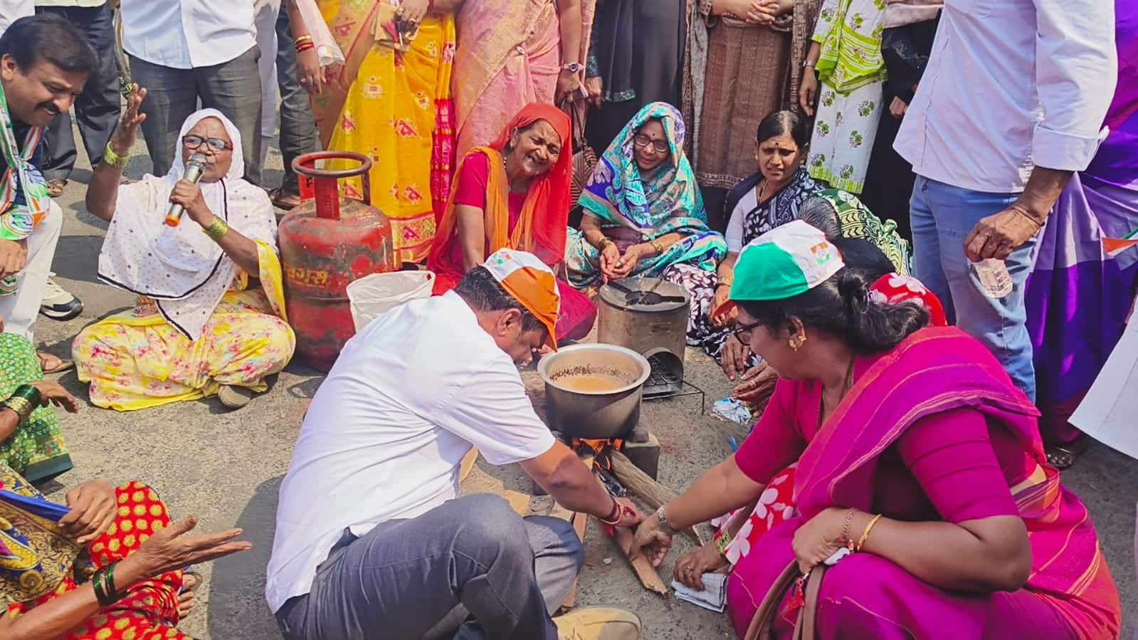 ದಿನ ಬಳಕೆಯ ಅಡುಗೆ ಅನಿಲದ ಕೊರತೆ ಮತ್ತು ಬೆಲೆ ಏರಿಕೆ ವಿರೋಧಿಸಿ ದಾಂಡೇಲಿ ಬ್ಲಾಕ್ ಕಾಂಗ್ರೆಸ್ ಕಾರ್ಯಕರ್ತರು ದಾಂಡೇಲಿ ಬಸ್ ನಿಲ್ದಾಣದ ಮುಂಭಾಗದಲ್ಲಿ ಕಟ್ಟಿಗೆ ಒಲೆ ಹಚ್ಚಿ ಚಹಾ ತಯಾರಿಸಿ ಕೇಂದ್ರ ಸರಕಾರದ ವಿರುದ್ಧ ಪ್ರತಿಭಟನೆ ನಡೆಸಿದರು.ಈ ಸಂದರ್ಭದಲ್ಲಿ ಬ್ಲಾಕ್ ಕಾಂಗ್ರೆಸ್ ಅಧ್ಯಕ್ಷ ಮೋಹನ ಹಲವಾಯಿ ಮಾತನಾಡಿ, ವಿಶ್ವದಲ್ಲಿ ಭಾರತ ನಂ. ೧ ಎಂದು ಹೇಳಿಕೊಳ್ಳುವ ಅಂಧ ಭಕ್ತರು ಈಗ ದೇಶದಲ್ಲಿ ಅಡುಗೆ ಅನಿಲ, ಪೆಟ್ರೋಲ್, ಡಿಸೇಲ್ ಕೊರತೆಯಾದರೂ ಮೌನವಾಗಿರುವುದು ಯಾಕೆ? ದಾಂಡೇಲಿ ನಗರದ ಜನರು ಕಟ್ಟಿಗೆ ಬಳಕೆ ಮಾಡಿ ಅಡುಗೆ ಮಾಡದಂತಹ ಸ್ಥಿತಿ ಇದೆ. ಕೇವಲ ಧರ್ಮ, ದೇವರ ಹೆಸರು ಹೇಳಿ ಬದುಕಲು ಸಾಧ್ಯವಿಲ್ಲ. ಅಂಧ ಭಕ್ತರು ಈಗಲಾದರೂ ಎಚ್ಚೆತ್ತುಕೊಳ್ಳಬೇಕಾಗಿದೆ. ಕೇಂದ್ರದ ಬಿಜೆಪಿ ಸರಕಾರದಿಂದ ಈ ದೇಶದ ಜನರಿಗೆ ಅದರಲ್ಲೂ ಮುಖ್ಯವಾಗಿ ಬಡ ಜನರಿಗೆ ತೀವ್ರ ಅನ್ಯಾಯವಾಗುತ್ತಿದೆ. ಜನರು ಕಾಂಗ್ರೆಸ್ ಪಕ್ಷವನ್ನು ಬೆಂಬಲಿಸಿದರೇ ಮಾತ್ರ ಭವಿಷ್ಯ ಉಜ್ವಲವಾಗಲಿದೆ. ಇಲ್ಲದಿದ್ದರೇ ಸ್ವಾತಂತ್ರಕ್ಕೂ ಪೂರ್ವದಲ್ಲಿದ್ದ ಭಾರತ ನಮಗೆ ಕಾಣಸಿಗಲಿದೆ ಎಂದರು.