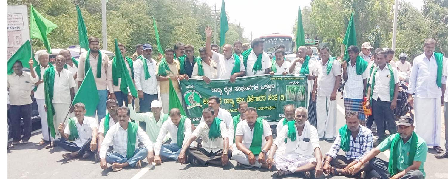 - ಕಬ್ಬು ಬೆಳೆಗಾರರ ಸಂಘದ ವತಿಯಿಂದ ಹೆದ್ದಾರಿ ತಡೆದು ಪ್ರತಿಭಟನೆ । ರಾಜ್ಯದ ಕಾಂಗ್ರೆಸ್ ಸರ್ಕಾರದ ವಿರುದ್ಧ ರೈತ ಮುಖಂಡರ ಆಕ್ರೋಶ---