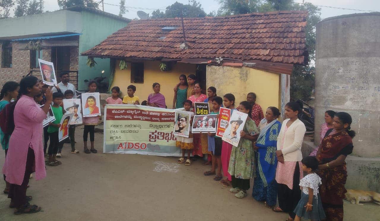ಚಿಕ್ಕಮಗಳೂರು ತಾಲೂಕಿನ ಜೋಳದಾಳು ಗ್ರಾಮದಲ್ಲಿ ಗ್ರಾಮಸ್ಥರೊಂದಿಗೆ ಸೇರಿ ಪ್ರತಿಭಟನೆ ನಡೆಸಿದ ಎಐಡಿಎಸ್ಓ ಸಂಘಟನೆ ಕಾರ್ಯಕರ್ತರು ಜೋಳದಾಳು ಹಿರಿಯ ಪ್ರಾಥಮಿಕ ಶಾಲೆಯನ್ನು ಕೆಪಿಎಸ್ ಮ್ಯಾಗ್ನೆಟ್ ಯೋಜನೆ ಹೆಸರಲ್ಲಿ ಮೈಲಿಮನೆ ಗ್ರಾಮ ಪಂಚಾಯಿತಿ ಶಾಲೆಗೆ ಸಂಯೋಜನೆ ಮಾಡುವ ಮೂಲಕ ಮುಚ್ಚಲಾಗುತ್ತಿದೆ ಎಂದು ಆರೋಪಿಸಿದರು.