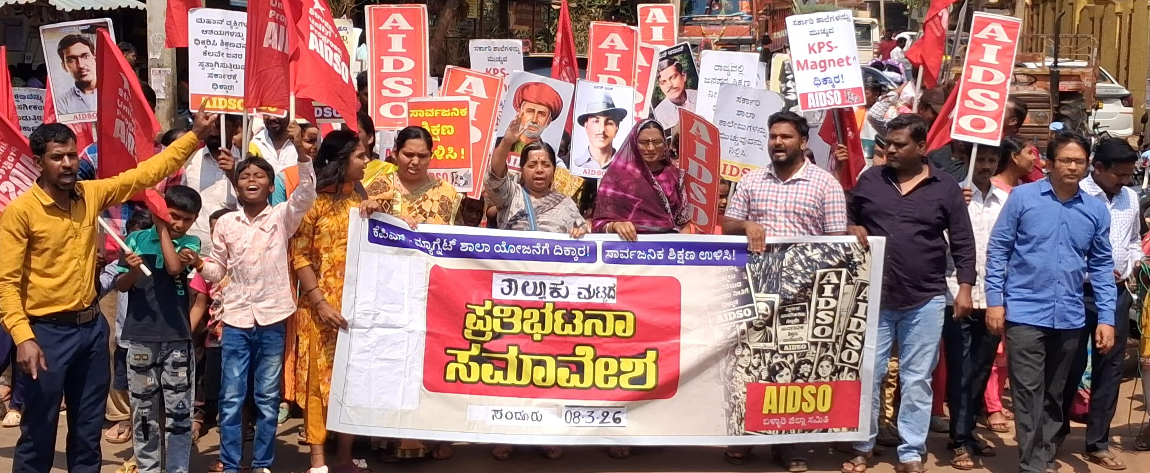ಸಂಡೂರಿನ ಜನತೆಯ ಕಷ್ಟ ಕಾರ್ಪಣ್ಯಗಳನ್ನು ದೂರ ಮಾಡಲು, ಇಲ್ಲಿಯ ಜನರಿಗೆ ಆಸ್ಪತ್ರೆಗಳು, ಉದ್ಯೋಗ ಸೃಷ್ಟಿಸುವುದು, ಗಣಿಬಾಧಿತ ಹಳ್ಳಿಗಳನ್ನು ಅಭಿವೃದ್ಧಿ ಪಡಿಸಲು ಹಾಗೂ ಇಲ್ಲಿಯ ಜನರ ಜೀವನ ಮಟ್ಟವನ್ನು ಮೇಲೆತ್ತಲು ಬಳಸಬೇಕಾದ ಕೆಎಂಇಆರ್ಸಿ ಹಣವನ್ನು ಶಾಲೆಗಳ ಸ್ಥಾಪನೆಗಾಗಿ ಬಳಸಲಾಗುತ್ತಿದೆ. ಸರ್ಕಾರ ಅತಿಹೆಚ್ಚು ಮುತುವರ್ಜಿ ವಹಿಸಿ ಈ ಭಾಗದಲ್ಲಿ ಶಾಲೆಗಳನ್ನು ಸ್ಥಾಪಿಸಿ, ಅವುಗಳಿಗೆ ಮೂಲಸೌಕರ್ಯಗಳನ್ನು ಕಲ್ಪಿಸುವ ಬದಲು ಇರುವ ಶಾಲೆಗಳನ್ನು ಮುಚ್ಚಲು ಯತ್ನಿಸುತ್ತಿದೆ. ಆ ಮೂಲಕ ಬಡಮಕ್ಕಳ ಶಿಕ್ಷಣದ ಕನಸಿಗೆ ಕೊಡಲಿ ಪೆಟ್ಟು ನೀಡುತ್ತಿದೆ. ಸರ್ಕಾರಿ ಶಾಲೆಗಳನ್ನು ಮುಚ್ಚುವ ಕ್ರಮವನ್ನು ತಡೆಯಲು ಎಲ್ಲರೂ ಒಟ್ಟಾಗಿ ಶ್ರಮಿಸಬೇಕಿದೆ ಎಂದರು.ಎಐಡಿಎಸ್ಒ ರಾಜ್ಯ ಉಪಾಧ್ಯಕ್ಷರಾದ ಚಂದ್ರಕಲಾ ಅವರು ಮಾತನಾಡಿ, ರಾಜ್ಯ ಬಜೆಟ್ನಲ್ಲಿ ಉನ್ನತ ಶಿಕ್ಷಣದ ಪರಿವರ್ತನೆ ಮತ್ತು ಗುಣಮಟ್ಟದ ಕಲಿಕೆ ಎಂಬ ಆಕರ್ಷಕ ಪದಗಳ ಮುಸುಕಿನಲ್ಲಿದ್ದರೂ, ವಾಸ್ತವದಲ್ಲಿ ಇದು ಸಾರ್ವಜನಿಕ ಶಿಕ್ಷಣ ಮೂಲ ಸೌಕರ್ಯವನ್ನು ಕೇಂದ್ರೀಕೃತಗೊಳಿಸುವ ಮತ್ತು ನಿರ್ಲಕ್ಷಿಸುವ ಒಂದು ವ್ಯವಸ್ಥಿತ ಸಂಚಾಗಿದೆ. ಈ ಪ್ರಕ್ರಿಯೆಯ ಹಿಂದೆ ವಿವಾದಾತ್ಮಕ ಕೆಪಿಎಸ್ ನೀತಿಯ ಪ್ರಬಲ ಪ್ರಭಾವವಿದೆ. ಈ ಬಾರಿಯ ಬಜೆಟ್ನಲ್ಲಿ ಶಿಕ್ಷಣ ಕ್ಷೇತ್ರಕ್ಕೆ ನೀಡಲಾದ ಪಾಲನ್ನು ಗಮನಿಸಿದರೆ, ಹಿಂದಿನ ವರ್ಷಕ್ಕಿಂತ ಸುಮಾರು ಶೇ ೧೦.೮ ರಷ್ಟು ಇಳಿಕೆಯಾಗಿದೆ. ಇದು ಆತಂಕಕಾರಿಯಾಗಿದೆ ಎಂದು ವಿಷಾದಿಸಿದರು.