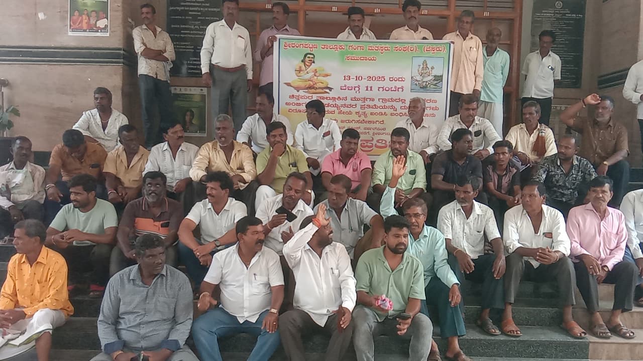 ಕಲಬುರ್ಗಿ ಜಿಲ್ಲೆ ಚಿತ್ತಾಪುರ ತಾಲೂಕು ಮುತ್ತಗಿ ಗ್ರಾಮದಲ್ಲಿ ಶ್ರೀನಿಜಶರಣ ಅಂಬಿಗರ ಚೌಡಯ್ಯನವರ ಪ್ರತಿಮೆಯನ್ನು ಕಿಡಿಗೇಡಿಗಳು ಭಗ್ನಗೊಳಿಸಿರುವುದನ್ನು ಖಂಡಿಸಿ ತಾಲೂಕು ಗಂಗಾಮತಸ್ಥರ ಸಮಾಜದ ಮುಖಂಡರು ಪಟ್ಟಣದಲ್ಲಿ ಸೋಮವಾರ ಪ್ರತಿಭಟನೆ ನಡೆಸಿದರು.ಪಟ್ಟಣದ ಕುವೆಂಪು ವೃತ್ತದಲ್ಲಿ ಸೇರಿ ಮೈಸೂರು- ಬೆಂಗಳೂರು ಹೆದ್ದಾರಿ ತಡೆ ಮಾಡಿದ ಪ್ರತಿಭಟನಾಕಾರರು, ಪಟ್ಟಣದ ಮುಖ್ಯ ಬೀದಿಯಲ್ಲಿ ಕಿಡಿಗೇಡಿಗಳ ವಿರುದ್ದ ಘೋಷಣೆ ಕೂಗಿ ಮೆರವಣಿಗೆ ನಡೆಸಿ ತಾಲೂಕು ಕಚೇರಿ ಮುಂದೆ ಧರಣಿ ಕುಳಿತು ಪ್ರತಿಭಟಿಸಿದರು.