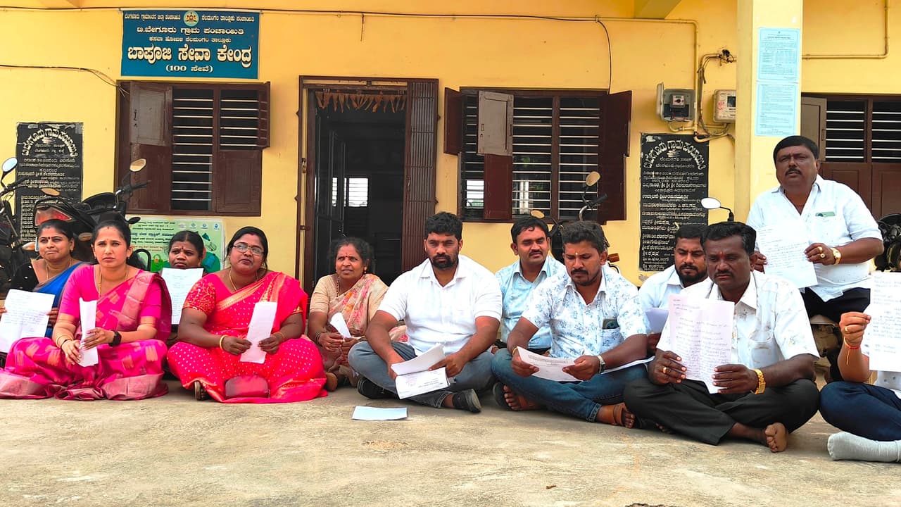 ಟಿ.ಬೇಗೂರು ಗ್ರಾಮಪಂಚಾಯಿತಿ ಕಚೇರಿಯ ಆವರಣದಲ್ಲಿ ಅಧ್ಯಕ್ಷೆ ಮಮತಾ ರವಿಕುಮಾರ್ ಸೇರಿದಂತೆ 14 ಜನ ಸದಸ್ಯರು ರಾಜೀನಾಮೆ ಪತ್ರಗಳನ್ನು ಹಿಡಿದು ಮೌನ ಪ್ರತಿಭಟನೆ ನಡೆಸಿದರು.