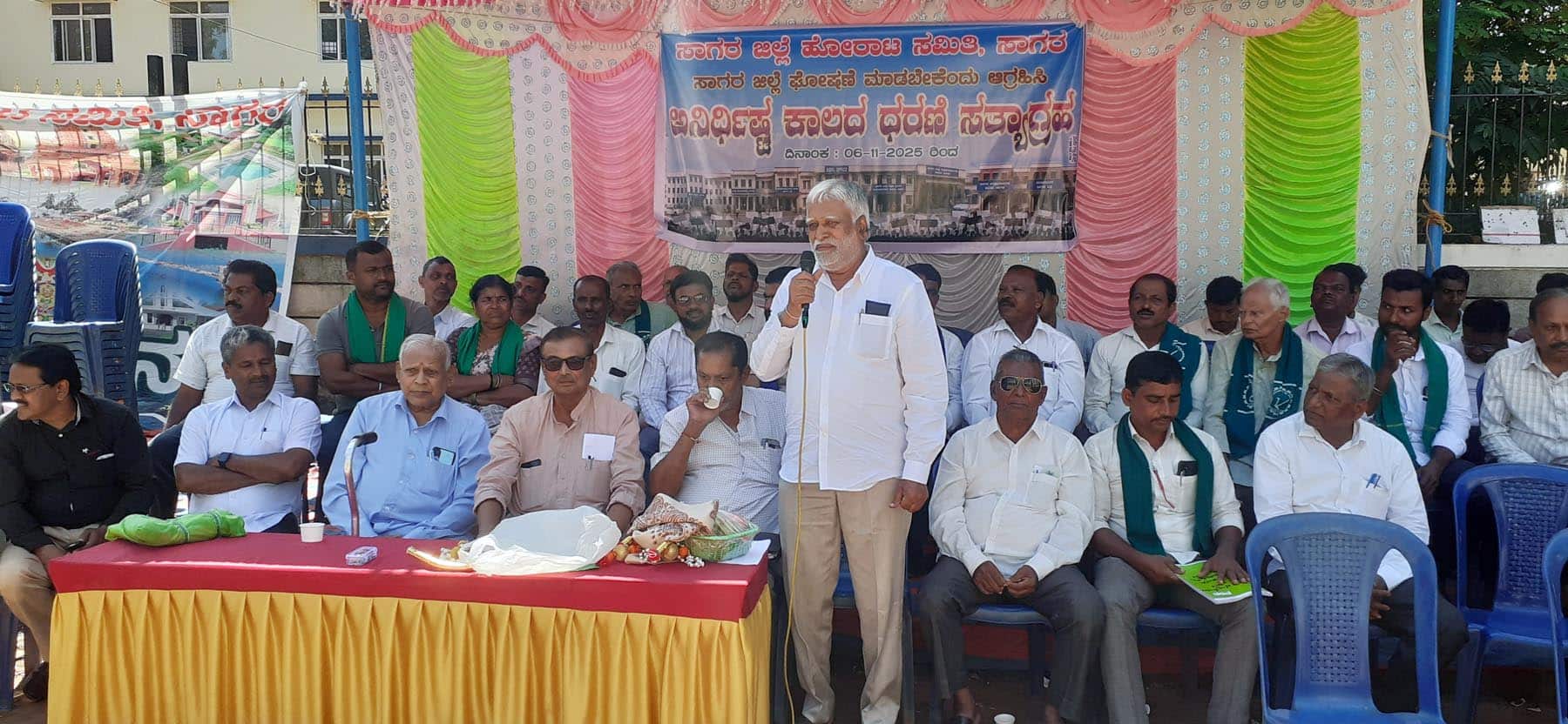 ಸಾಗರವನ್ನು ಜಿಲ್ಲೆಯಾಗಿ ಘೋಷಣೆ ಮಾಡುವಂತೆ ಒತ್ತಾಯಿಸಿ ಸಾಗರ ಜಿಲ್ಲಾ ಹೋರಾಟ ಸಮಿತಿ ವತಿಯಿಂದ ಉಪವಿಭಾಗಾಧಿಕಾರಿಗಳ ಕಚೇರಿ ಎದುರು ಗುರುವಾರದಿಂದ ಅನಿರ್ಧಿಷ್ಟಾವಧಿ ಧರಣಿ ಸತ್ಯಾಗ್ರಹ ಆರಂಭವಾಯಿತು. ರಾಜ್ಯೋತ್ಸವ ಪ್ರಶಸ್ತಿ ಪುರಸ್ಕೃತ ಬಿ.ಟಾಕಪ್ಪ ಕಣ್ಣೂರು ಅವರಿಗೆ ಸನ್ಮಾನಿಸುವ ಮೂಲಕ ಸತ್ಯಾಗ್ರಹಕ್ಕೆ ಚಾಲನೆ ನೀಡಲಾಯಿತು.ಪ್ರತಿಭಟನೆ ಉದ್ದೇಶಿಸಿ ಮಾತನಾಡಿದ ಬಿ. ಟಾಕಪ್ಪ, ಸಾಗರ ಜಿಲ್ಲೆಯಾಗಲು ಎಲ್ಲ ಅರ್ಹತೆ ಹೊಂದಿದ ಉಪಕೇಂದ್ರವಾಗಿದೆ. ಸಾಗರ ಜಿಲ್ಲೆ ಮಾಡಿ ಎಂದು ಕೇಳುವುದು ನಮ್ಮ ಹಕ್ಕು. ಸಾಗರ ಉಪವಿಭಾಗೀಯ ಕೇಂದ್ರಕ್ಕೆ ತನ್ನದೆ ಆದ ಇತಿಹಾಸವಿದ್ದು, ಕಲೆ, ಸಾಹಿತ್ಯ, ಸಾಂಸ್ಕೃತಿಕ, ರಾಜಕೀಯವಾಗಿ ಶ್ರೇಷ್ಠತೆಯನ್ನು ಹೊಂದಿದೆ. ರೈಲ್ವೆ, ರಾಷ್ಟ್ರೀಯ ಹೆದ್ದಾರಿ, ವಾಣಿಜ್ಯ ವಿಭಾಗದಲ್ಲಿ ಸಹ ಸೂಕ್ತ ಸ್ಥಳವಾಗಿರುವ ಸಾಗರ ಜಿಲ್ಲೆ ಮಾಡಿದರೆ ರಾಜ್ಯ ಮತ್ತು ಕೇಂದ್ರಕ್ಕೆ ಕೀರ್ತಿ ತರುತ್ತದೆ ಎಂದು ಹೇಳಿದರು.