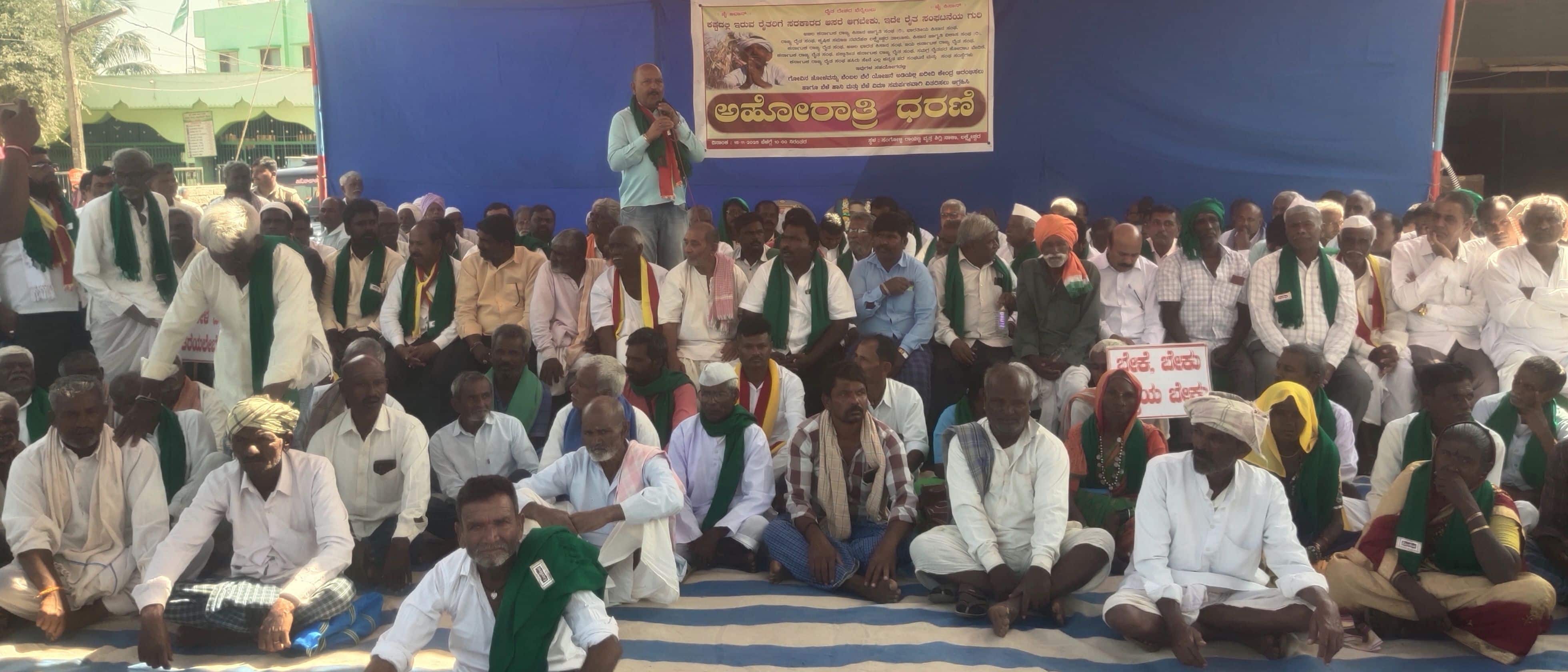 ಲಕ್ಷ್ಮೇಶ್ವರ: ಗೋವಿನ ಜೋಳ ಬೆಂಬಲ ಬೆಲೆ ಖರೀದಿ ಕೇಂದ್ರ ಆರಂಭಿಸುವಂತೆ ಆಗ್ರಹಿಸಿ ವಿವಿಧ ರೈತಪರ ವೇದಿಕೆಯಲ್ಲಿ ಆಶ್ರಯದಲ್ಲಿ ತಾಲೂಕಿನ ರೈತರು ಶನಿವಾರ ಪಟ್ಟಣದ ಶಿಗ್ಲಿ ಕ್ರಾಸ್ ಬಳಿ ಅಹೋರಾತ್ರಿ ಧರಣಿ ಆರಂಭಿಸಿದರು.