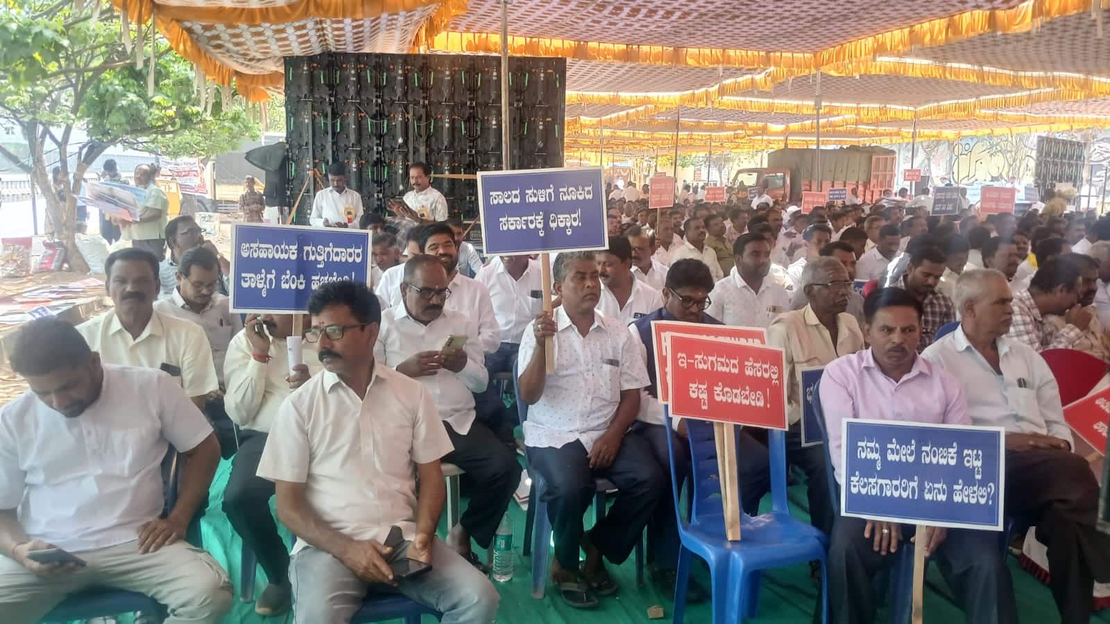ಬೆಂಗಳೂರಿನ ಫ್ರೀಡಂ ಪಾರ್ಕ್ನಲ್ಲಿ ರಾಜ್ಯ ಮಟ್ಟದ ಲೋಕೋಪಯೋಗಿ ಗುತ್ತಿಗೆದಾರರ ಸಮಾವೇಶ ನಡೆಯುತ್ತಿದ್ದು, ಅಲ್ಲಿ ದಾಂಡೇಲಿ ಕೆನರಾ ಲೋಕೋಪಯೋಗಿ ಗುತ್ತಿಗೆದಾರರ ಸಂಘದ ಸದಸ್ಯರು ಬೇಡಿಕೆ ಫಲಕಗಳನ್ನು ಪ್ರದರ್ಶಿಸಿ ಪ್ರತಿಭಟನೆ ನಡೆಸಿದರು.ದಾಂಡೇಲಿಯ ಕೆನರಾ ಗುತ್ತಿಗೆದಾರರ ಸಂಘದ ಅಧ್ಯಕ್ಷ ಎನ್.ಶಶಿಧರನ್, ಸಂಘಟನಾ ಕಾರ್ಯದರ್ಶಿ ಆರ್.ಸಿ. ದೇವಾನಂದ, ಖಾಜಾಂಚಿ ಸುಧಾಕರ ರೆಡ್ಡಿ ಮಾತನಾಡಿ, ಉತ್ತರ ಕನ್ನಡ ಜಿಲ್ಲೆಯ ವಿವಿಧ ಸರ್ಕಾರಿ ಇಲಾಖೆಗಳಲ್ಲಿ ಕಾಮಗಾರಿ ನಡೆಸಿದ ಗುತ್ತಿಗೆದಾರರಿಗೆ ಪಾವತಿಯಾಗದೆ ಉಳಿದಿರುವ ಬಿಲ್ಗಳನ್ನು ತಕ್ಷಣ ಬಿಡುಗಡೆ ಮಾಡುವಂತೆ ಆಗ್ರಹಿಸಿದರು. ಈ ಸಂದರ್ಭ ರಾಜ್ಯದ ವಿವಿಧೆಡೆಗಳಿಂದ ಆಗಮಿಸಿದ್ದ ನೂರಾರು ಗುತ್ತಿಗೆದಾರರ ಬೆಂಬಲ ವ್ಯಕ್ತಪಡಿಸಿ ಸರ್ಕಾರದ ವಿರುದ್ಧ ಅಸಮಧಾನ ವ್ಯಕ್ತಪಡಿಸಿದರು. ಹಲವು ವರ್ಷಗಳಿಂದ ವಿವಿಧ ಇಲಾಖೆಗಳ ಕಾಮಗಾರಿಗಳಿಗೆ ಸಂಬಂಧಿಸಿದಂತೆ ನಮ್ಮ ಜಿಲ್ಲೆಯಲ್ಲಿ ಕೋಟ್ಯಾಂತರ ರೂಪಾಯಿ ಬಾಕಿ ಬಿಲ್ಗಳು ಪಾವತಿಯಾಗದೇ ಉಳಿದಿದ್ದು, ಇದರಿಂದ ಗುತ್ತಿಗೆದಾರರು ತೀವ್ರ ಆರ್ಥಿಕ ಸಂಕಷ್ಟ ಎದುರಿಸುತ್ತಿದ್ದಾರೆ ಎಂದು ಆರೋಪಿಸಿದರು.