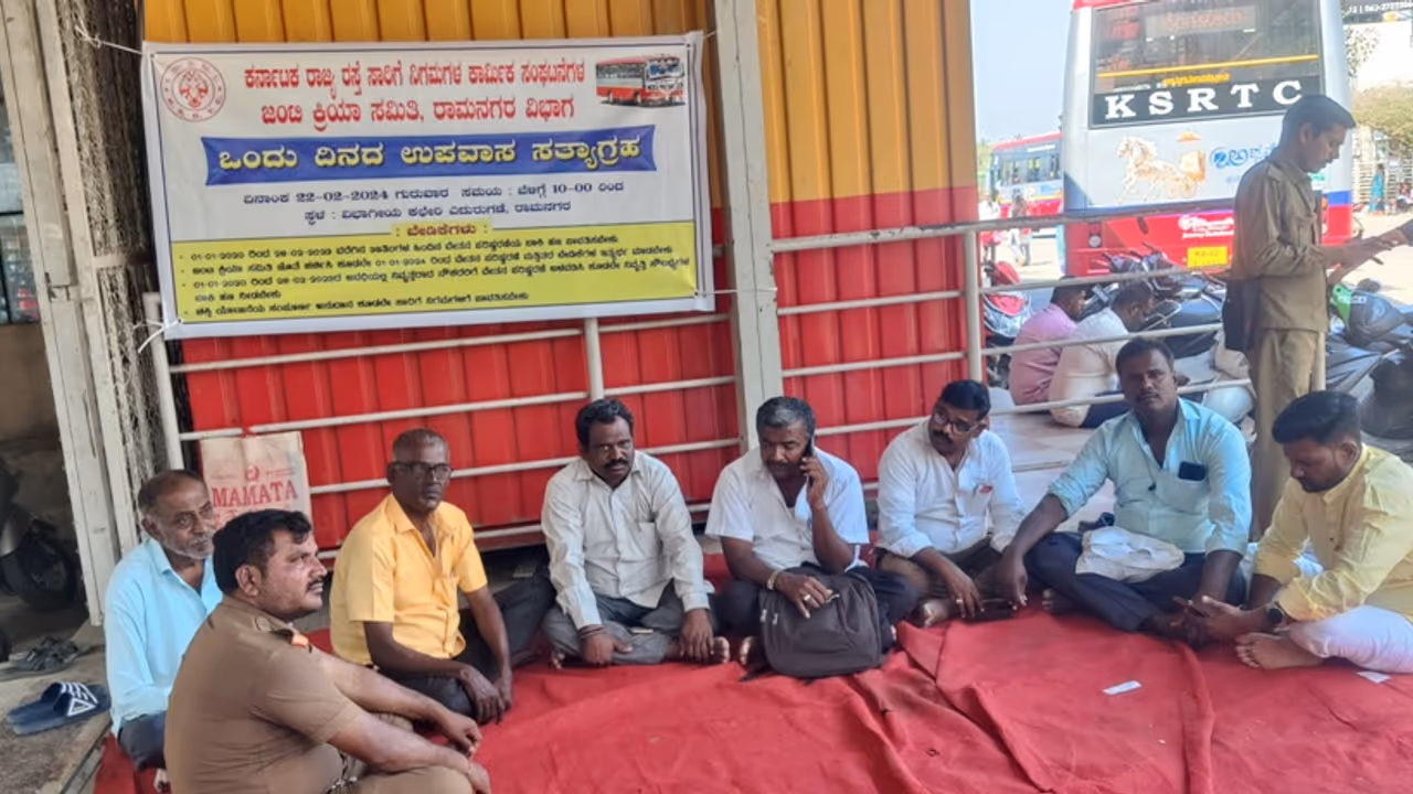 ಕರ್ನಾಟಕ ರಾಜ್ಯ ರಸ್ತೆ ಸಾರಿಗೆ ನಿಗಮಗಳ ಕಾರ್ಮಿಕ ಸಂಘಟನೆಗಳ ಜಂಟಿ ಕ್ರಿಯಾ ಸಮಿತಿ ರಾಮನಗರ ವಿಭಾಗದ ಆಶ್ರಯದಲ್ಲಿ ನಿಗಮದ ವಿಭಾಗಿಯ ಕಚೇರಿಯ ಎದುರು ಪ್ರತಿಭಟನೆ ನಡೆಸಿ ನೌಕರರು ಮನವಿ ಸಲ್ಲಿಸಿದರು.2020 ರಿಂದ 2023ರ ವರೆಗಿನ ಶೇ.15ರಷ್ಟು ವೇತನ ಹೆಚ್ಚಳದ ಬಾಕಿ ಹಣ ಸಾರಿಗೆ ನೌಕರರಿಗೆ ಪಾವತಿ ಮಾಡಬೇಕಾಗಿದೆ. ಸರ್ಕಾರ ಹಾಗೂ ಸಾರಿಗೆ ನಿಗಮಗಳ ಆಡಳಿತ ವರ್ಗಕ್ಕೆ ಮನವಿ ಮಾಡಿದರು ಇದುವರೆಗೆ ಕ್ರಮ ಕೈಗೊಂಡಿಲ್ಲ. 2024 ಜನವರಿ ಆರಂಭದ ದಿನದಿಂದ ಮುಂದಿನ ನಾಲ್ಕು ವರ್ಷಗಳ ಅವಧಿಗೆ ಹೊಸ ವೇತನ ಪರಿಷ್ಕರಣೆ ವಿಳಂಬ ಮಾಡದೆ ಮಾಡಬೇಕಾಗಿದೆ.