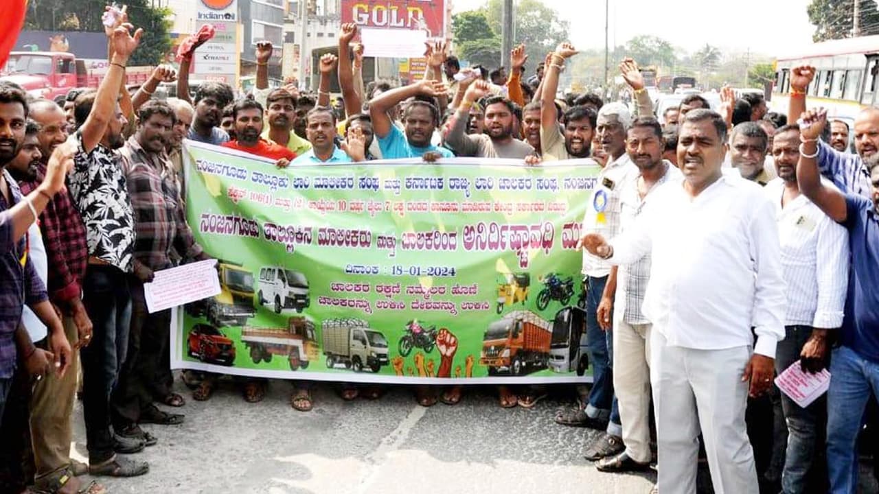 ಪ್ರತಿಭಟನೆಯಲ್ಲಿ ಲಾರಿ ಮಾಲೀಕರ ಸಂಘದ ಜಿಲ್ಲಾಧ್ಯಕ್ಷ ಕೊಂದಂಡರಾಮು, ಲಾರಿ ಚಾಲಕರ ಪರಿಷತ್ ರಾಜ್ಯಾಧ್ಯಕ್ಷ ರಾಜೇಂದ್ರ, ಚಾಲಕರಾದ ಶ್ರೀನಿವಾಸ್, ಸುರೇಶ್, ರಾಜು, ರಫೀಕ್ ಪಾಷ, ಸ್ವಾಮಿ, ಅಭಿ, ನಿಂಗರಾಜು, ಉಮೇಶ, ಇದ್ದರು.