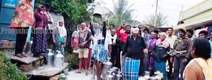 ಸಾವಿರಾರು ಲೀಟರ್ ಹಾಲು ಹಾಕುತ್ತಿರುವ ರೈತರಿಗೆ ಷೇರು ನೀಡದೆ ವಂಚಿಸುತ್ತಿದ್ದಾರೆ ಎಂದು ಆರೋಪಿಸಿ ಸಂಘದ ಕಾರ್ಯದರ್ಶಿ ಮನೆ ಮುಂದೆ ರೈತರು ಮೈಮೇಲೆ ಹಾಲು ಸುರಿದುಕೊಂಡು ಪ್ರತಿಭಟನೆ