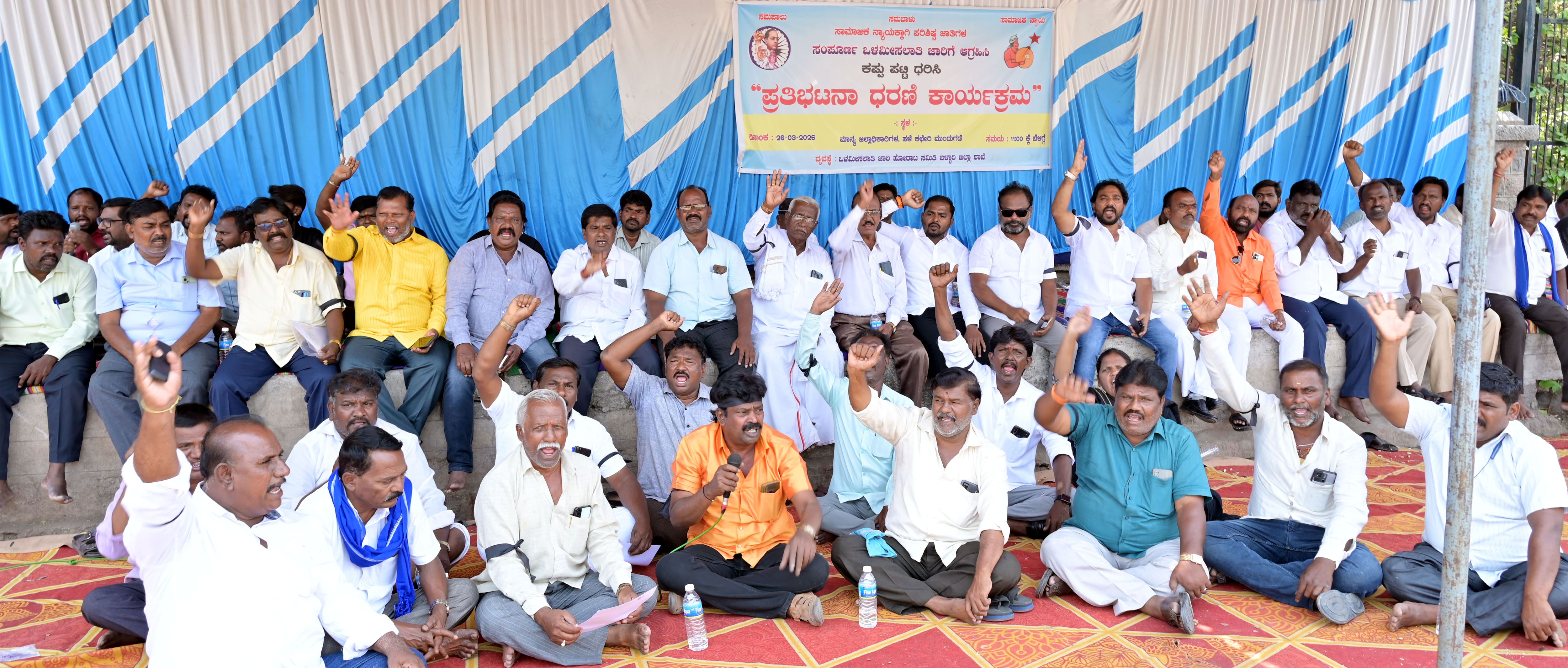 ಭಾರತದ ಹಲವಾರು ರಾಜ್ಯಗಳಲ್ಲಿ ಪರಿಶಿಷ್ಟ ಜಾತಿ ಹಾಗೂ ಪಂಗಡದ ಸಮುದಾಯಗಳಿಗೆ ಜನಸಂಖ್ಯೆಗೆ ಅನುಗುಣವಾಗಿ ಸಂವಿಧಾನಬದ್ಧವಾಗಿ ಮೀಸಲಾತಿ ಪ್ರಮಾಣ ಹೆಚ್ಚಿಸಿ ಅನುಷ್ಠಾನಗೊಳಿಸಲಾಗುತ್ತಿದೆ. ಆದರೆ, ಕರ್ನಾಟಕದಲ್ಲಿ ಮಾತ್ರ ದಶಕಗಳಿಂದ ಜನಸಂಖ್ಯೆಗೆ ಅನುಗುಣವಾಗಿ ನ್ಯಾಯದ ಪಾಲು ನೀಡದೆ ಮೋಸ ಮಾಡಲಾಗಿದೆ ಎಂದು ಪ್ರತಿಭಟನಾಕಾರರು ಆರೋಪಿಸಿದರು.ಪರಿಶಿಷ್ಟ ಜಾತಿಗಳ ಒಳ ಮೀಸಲಾತಿ ಕುರಿತು ಸುಪ್ರೀಂ ಕೋರ್ಟ್ ನೀಡಿರುವ ನಿರ್ದೇಶನಗಳ ಹಿನ್ನೆಲೆಯಲ್ಲಿ ರಾಜ್ಯ ಸರ್ಕಾರ ಕಾಯ್ದೆ ರೂಪಿಸಿ ರಾಜ್ಯಪಾಲರಿಂದ ಅಂಕಿತ ಪಡೆದಿದೆ. ಮಾದಿಗ ಸಮುದಾಯದ 35 ವರ್ಷಗಳ ಹೋರಾಟಕ್ಕೆ ದೊರೆತ ಐತಿಹಾಸಿಕ ನ್ಯಾಯವಾಗಿದೆ. ಆದರೆ, ಒಳ ಮೀಸಲಾತಿಯಲ್ಲಿ ನ್ಯಾಯ ನೀಡದೆ ಮೋಸ ಮಾಡಲಾಗುತ್ತಿದ್ದು ಸರ್ಕಾರ ತಕ್ಷಣ ಸಚಿವ ಸಂಪುಟದ ವಿಶೇಷ ಸಭೆ ಕರೆದು ಒಳಮಿಸಲಾತಿ ಬೇಡುತ್ತಿರುವ ಮಾದಿಗ ಸಂಬಂಧಿ ಜಾತಿಗಳಿಗೆ ಸುಪ್ರೀಂ ಕೋರ್ಟ್ ತೀರ್ಪಿನ ಆಧಾರದ ಮೇಲೆ ನ್ಯಾಯಮೂರ್ತಿ ಸದಾಶಿವ ಆಯೋಗದ ವರದಿಯ ಅಥವಾ ನ್ಯಾಯಮೂರ್ತಿ ನಾಗಮೋಹನ ದಾಸ್ ಆಯೋಗದ ಶಿಫಾರಸಿನ ಅನ್ವಯ ಮೀಸಲಾತಿ ಒದಗಿಸಬೇಕು. ಪರಿಶಿಷ್ಟ ಜಾತಿಗೆ ಮೀಸಲಾಗಿರುವ ಎಲ್ಲ ಕ್ಷೇತ್ರಗಳಲ್ಲಿ ಒಳ ಮೀಸಲಾತಿ ಅನುಷ್ಠಾನಗೊಳಿಸಬೇಕು. ಶಿಕ್ಷಣ ಸಂಸ್ಥೆಗಳಲ್ಲಿ ಪರಿಶಿಷ್ಟ ಜಾತಿಯ ಮಕ್ಕಳಿಗೆ ವರ್ಗೀಕರಣದ ಅನುಪಾತದಲ್ಲಿ ಒಳ ಮೀಸಲಾತಿ ಸೌಲಭ್ಯ ನೀಡಬೇಕು. ಸಂವಿಧಾನದ ಅನುಚ್ಛೇದ 16(4) ರಂತೆ ಉದ್ಯೋಗ ಮೀಸಲಾತಿ ಎಂದರೆ ನೇರ ನೇಮಕಾತಿ, ಬಡ್ತಿ, ನೇಮಕಾತಿ ಮತ್ತು ಮುಂಬಡ್ತಿ, ಬ್ಯಾಕ್ಲಾಗ್ ನೇಮಕಾತಿಗಳನ್ನು ಒಳಗೊಂಡಿದೆ. ಆದ್ದರಿಂದ ಎಲ್ಲ ಬಗೆಯ ನೇಮಕಾತಿಗಳನ್ನು ಆದಷ್ಟು ಬೇಗ ಮಾಡಬೇಕು ಎಂದು ಒತ್ತಾಯಿಸಿದರು.