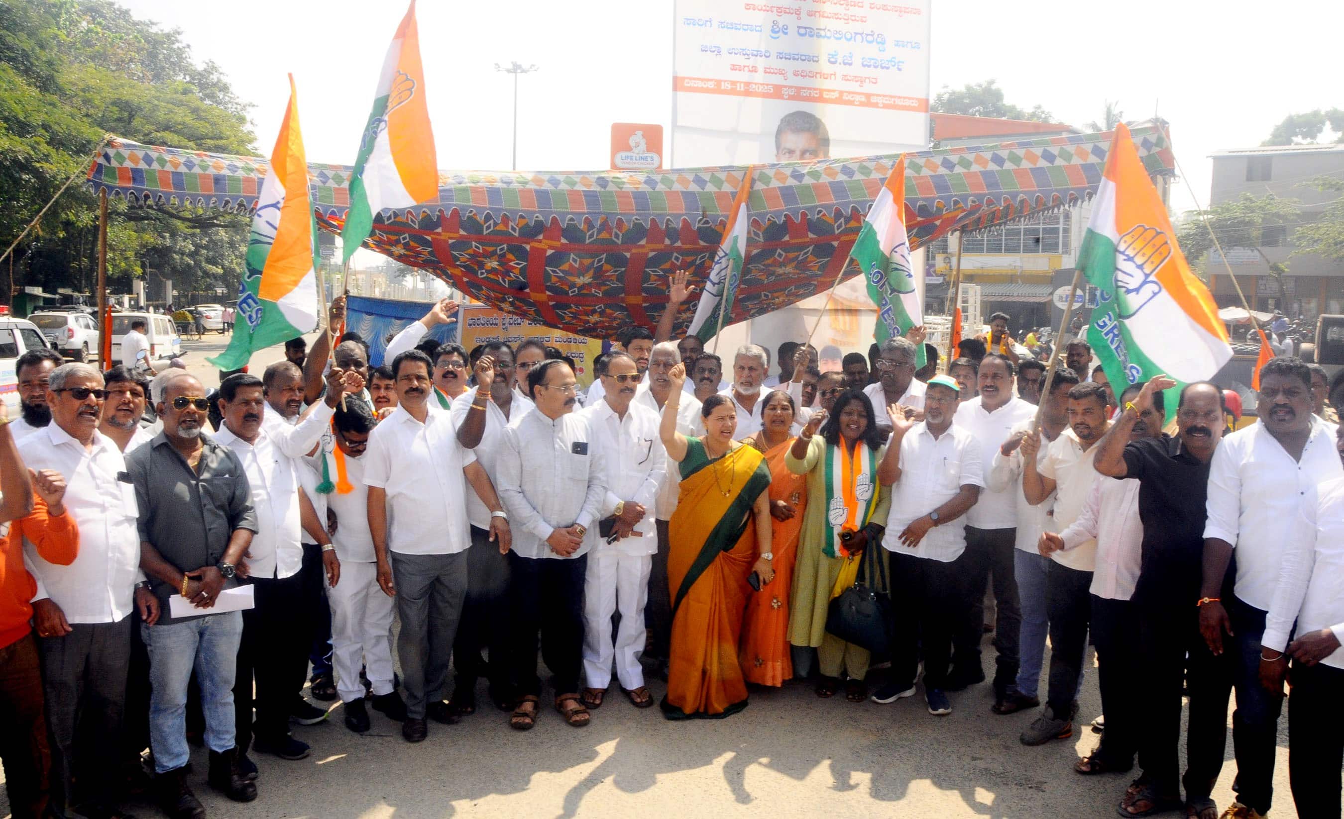 - ನಗರದ ಆಜಾದ್ಪಾರ್ಕ್ ವೃತ್ತದಲ್ಲಿ ಬ್ಲಾಕ್ ಕಾಂಗ್ರೆಸ್ ಕಾರ್ಯಕರ್ತರಿಂದ ಹೋರಾಟ