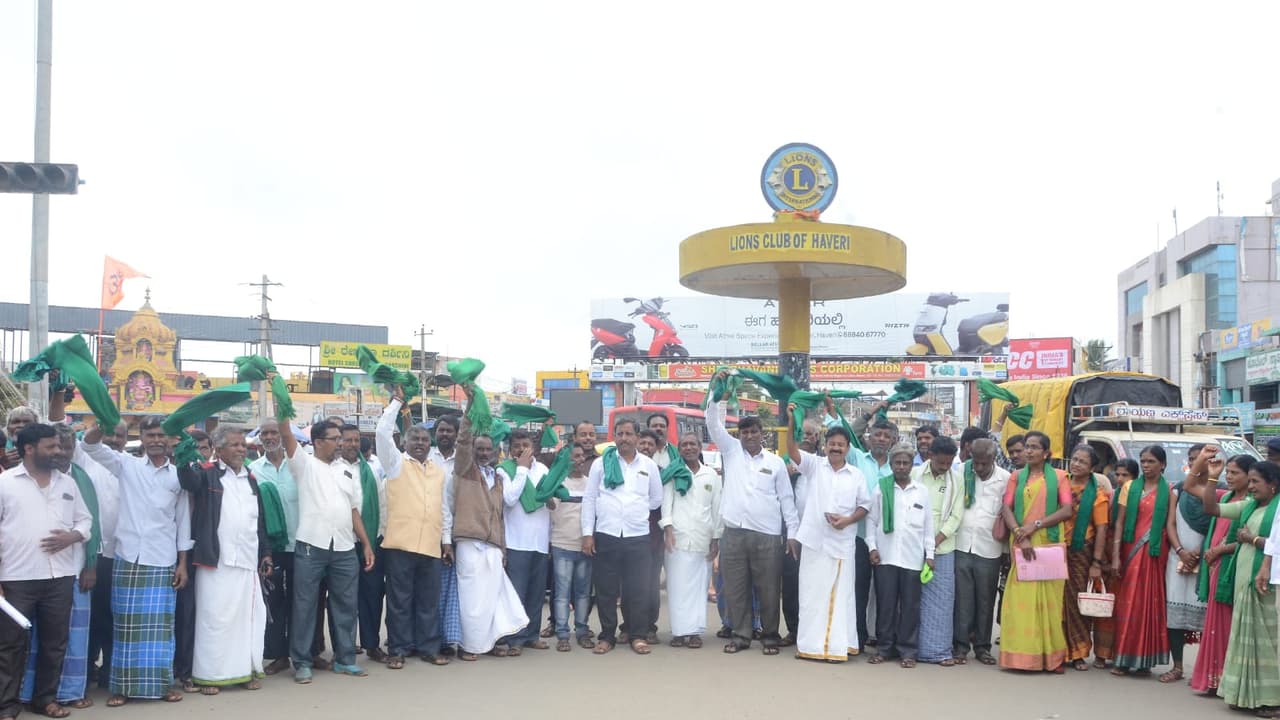 ಹಾವೇರಿ: ಕಳಪೆ ಬೀಜ, ರಸಗೊಬ್ಬರ ಮಾರಾಟಕ್ಕೆ ಕಡಿವಾಣ ಹಾಕಬೇಕು. ಸತತ ಮಳೆಯಿಂದ ಹಾನಿಗೊಳಗಾದ ಬೆಳೆಗಳಿಗೆ ಪರಿಹಾರ ನೀಡುವಂತೆ ಆಗ್ರಹಿಸಿ ಗುರುವಾರ ನಗರದ ಹೊಸಮನಿ ಸಿದ್ದಪ್ಪ ವೃತ್ತದಲ್ಲಿ ಅಖಿಲ ಕರ್ನಾಟಕ ರೈತ ಸಂಘ ಹಾಗೂ ಸಾಮೂಹಿಕ ನಾಯಕತ್ವದ ಸಂಘಗಳ ಒಕ್ಕೂಟದಡಿಯಲ್ಲಿ ರೈತರು ಪ್ರತಿಭಟನೆ ನಡೆಸಿದರು.