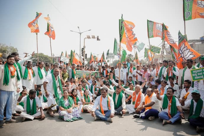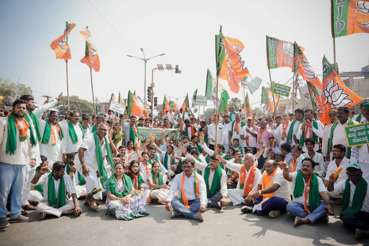 ರಾಣಿಬೆನ್ನೂರು:ಮೆಕ್ಕೆಜೋಳ, ಭತ್ತ, ಕಬ್ಬಿಗೆ ಬೆಂಬಲ ಘೋಷಣೆ ಮಾಡಿ ಖರೀದಿ ಕೇಂದ್ರ ತೆರೆಯುವಂತೆ ಆಗ್ರಹಿಸಿ ಸೋಮವಾರ ಎನ್ಡಿಎ ಅಂಗಪಕ್ಷಗಳಾದ ಬಿಜೆಪಿ ಮತ್ತು ಜೆಡಿಎಸ್ ಒಂದಾಗಿ ನಗರದಲ್ಲಿ ಪ್ರತಿಭಟಿಸಿ ತಹಸೀಲ್ದಾರ್ ಮೂಲಕ ಸರ್ಕಾರಕ್ಕೆ ಮನವಿ ಸಲ್ಲಿಸಿದರು. ನಗರದ ಕೆಇಬಿ ದೇವಸ್ಥಾನದ ಬಳಿಯಿಂದ ಹೊರಟ ಪ್ರತಿಭಟನಾಕಾರರು ಬಸ್ ನಿಲ್ದಾಣದ ಬಳಿ ಸ್ವಲ್ಪ ಹೊತ್ತು ರಸ್ತೆ ತಡೆ ನಡೆಸಿದರು. ಆನಂತರ ಅಲ್ಲಿಂದ ಹೊರಟು ಹಲಗೇರಿ ಕ್ರಾಸ್, ಕುರುಬಗೇರಿ ಕ್ರಾಸ್ ಮಾರ್ಗವಾಗಿ ತಹಸೀಲ್ದಾರ್ ಕಚೇರಿಗೆ ತೆರಳಿದರು. ದಾರಿಯುದ್ದಕ್ಕೂ ಪ್ರತಿಭಟನಾಕಾರರು ರಾಜ್ಯ ಸರ್ಕಾರದ ಕೃಷಿ ವಿರೋಧಿ ನೀತಿ ಖಂಡಿಸಿ ಘೋಷಣೆಗಳನ್ನು ಕೂಗಿದರು. ಈ ಸಮಯದಲ್ಲಿ ಮಾತನಾಡಿದ ಪ್ರತಿಭಟನಾಕಾರರು, ಮೆಕ್ಕೆಜೋಳಕ್ಕೆ ₹ 2500, ಭತ್ತಕ್ಕೆ ₹ 2500, ಕಬ್ಬಿಗೆ ₹ 3500 ಬೆಂಬಲ ಬೆಲೆ ಯೋಜನೆ ಅಡಿ ಖರೀದಿ ಕೇಂದ್ರ ತೆರೆದು ಜಿಲ್ಲೆ ಮತ್ತು ತಾಲೂಕಿನ ರೈತರಿಗೆ ಬೆಂಬಲ ಬೆಲೆ ನೀಡಿ ಆರ್ಥಿಕವಾಗಿ ಅನುಕೂಲವಾಗುವ ನಿಟ್ಟಿನಲ್ಲಿ ತುರ್ತು ಕ್ರಮ ಕೈಗೊಳ್ಳಬೇಕು. ಈ ಭಾಗದಲ್ಲಿ ಮೆಕ್ಕೆಜೋಳ ಮತ್ತು ಭತ್ತ ಬೆಳೆಗಾರರು ಹೆಚ್ಚಾಗಿದ್ದು, ಈಗಾಗಲೇ ಕೇಂದ್ರ ಸರ್ಕಾರ ಬೆಂಬಲ ಬೆಲೆ ಘೋಷಣೆ ಮಾಡಿದೆ. ಆದರೆ ರಾಜ್ಯದ ಕಾಂಗ್ರೆಸ್ ಸರ್ಕಾರ ರೈತರ ನೆರವಿಗೆ ಧಾವಿಸದೆ ವಿಳಂಬ ನೀತಿ ಅನುಸರಿಸುತ್ತಿದೆ. ರೈತರ ನ್ಯಾಯೋಜಿತ ಹೋರಾಟಕ್ಕೆ ಸೂಕ್ತ ರೀತಿಯಲ್ಲಿ ನೆರವಾಗುತಿಲ್ಲ ಹಾಗೂ ರೈತರಿಗೆ ಒಂದಿಲ್ಲೊಂದು ರೀತಿ ಅನ್ಯಾಯವೆಸಗುತ್ತಿರುವ ಕಾಂಗ್ರೆಸ ಸರ್ಕಾರವು ರೈತರು ಬೆಳೆದ ಬೆಳೆಗೆ ಸರಿಯಾದ ಬೆಂಬಲ ಬೆಲೆ ನೀಡದಿದ್ದರೆ ಮುಂದಿನ ದಿನಮಾನಗಳಲ್ಲಿ ರಾಜ್ಯ ಸರ್ಕಾರದ ವಿರುದ್ಧ ಅಹೋರಾತ್ರಿ ಧರಣಿ ಸತ್ಯಾಗ್ರಹ ಮಾಡಲಾಗುವುದು ಎಂದು ಎಚ್ಚರಿಸಿದರು. ಬಿಜೆಪಿ ಜಿಲ್ಲಾಧ್ಯಕ್ಷ ವಿರೂಪಾಕ್ಷಪ್ಪ ಬಳ್ಳಾರಿ, ಜೆಡಿಎಸ್ ಜಿಲ್ಲಾಧ್ಯಕ್ಷ ಮಂಜುನಾಥ ಗೌಡಶಿವಣ್ಣನವರ, ಮಾಜಿ ಶಾಸಕ ಅರುಣಕುಮಾರ ಪೂಜಾರ, ಬಿಜೆಪಿ ರಾಜ್ಯ ಘಟಕದ ಅಧ್ಯಕ್ಷ ಡಾ. ಬಸವರಾಜ ಕೇಲಗಾರ, ನಗರ ಘಟಕ ಅಧ್ಯಕ್ಷ ಮಂಜುನಾಥ ಕಾಟಿ, ಗ್ರಾಮೀಣ ಘಟಕ ಅಧ್ಯಕ್ಷ ಸುಭಾಶ ಶಿರಗೇರಿ, ಸಂತೋಷಕುಮಾರ ಪಾಟೀಲ, ಪರಮೇಶ ಗೂಳಣ್ಣನವರ, ಚೋಳಪ್ಪ ಕಸವಾಳ, ಸೋಮಣ್ಣ ಗೌಡಶಿವಣ್ಣನವರ, ಅಮೋಘ ಬಾದಾಮಿ, ಎ.ಬಿ. ಪಾಟೀಲ, ಗದಿಗೆಪ್ಪ ಹೊಟ್ಟಿಗೌಡ್ರ, ಪ್ರಕಾಶ ಪೂಜಾರ, ಹನುಮಂತಪ್ಪ ದೇವರಗುಡ್ಡ, ಕಿರಣ ಅಂಗಡಿ, ಸಿದ್ದು ಚಿಕ್ಕಬಿದರಿ, ನಿಂಗರಾಜ ಕೋಡಿಹಳ್ಳಿ, ಅಶೋಕ ಪಾಸಿಗಾರ, ಜೆಡಿಎಸ್ ತಾಲೂಕಾಧ್ಯಕ್ಷ ನಿಂಗಪ್ಪ ಸತ್ಯಪ್ಪನವರ, ನಗರ ಘಟಕ ಅಧ್ಯಕ್ಷ ನಿಂಗಣ್ಣ ಹೊನ್ನಾಳ್ಳಿ, ಜಿಲ್ಲಾ ಕಾರ್ಯದರ್ಶಿ ಸಿದ್ದಣ್ಣ ಗುಡಿಮುದಣ್ಣನವರ, ಮಲ್ಲಿಕಾರ್ಜುನ ಹಲಗೇರಿ, ಮೌನೇಶ ಬಡಿಗೇರ, ಹನುಮಂತಪ್ಪ ಬಿಷ್ಟಣ್ಣನವರ, ರಮೇಶ ಮಾಕನೂರು, ಉಷಾ ಜಾಡಮಲಿ, ಲಕ್ಷ್ಮಿ ಕದರಮಂಡಲಗಿ, ಪೂಜಾ ದೈವಜ್ಞ, ಐಶ್ವರ್ಯಾ ಮಡಿವಾಳರ, ಈರಣ್ಣ ಕಡೂರು, ಶಿವು ಕರಿಯಪ್ಪನವರ, ರೈತ ಮುಖಂಡರಾದ ಈರಣ್ಣ ಹಲಗೇರಿ, ಹನುಮಂತಪ್ಪ ಕಬ್ಬಾರ, ಸುರೇಶ ಮೇಡ್ಲೇರಿ, ಹನುಮಂತಪ್ಪ ದೀವಿಗಿಹಳ್ಳಿ, ರಮೇಶ ನಂದಿಹಳ್ಳಿ, ನಾಗರಾಜ ಅಜ್ಜಜಗಣ್ಣನವರ, ಬೀರೇಶ ಬಾರ್ಕಿ, ಬಸವರಾಜ ಕೊಪ್ಪದ ಮತ್ತಿತರರು ಪ್ರತಿಭಟನೆಯಲ್ಲಿದ್ದರು.ಎತ್ತಿನ ಗಾಡಿಗಳೊಂದಿಗೆ ಪ್ರತಿಭಟನೆ:ಎತ್ತಿನ ಗಾಡಿಗಳೊಂದಿಗೆ ರೈತರು ಪ್ರತಿಭಟನೆಯಲ್ಲಿ ಭಾಗವಹಿಸಿದ್ದು ಎಲ್ಲರ ಗಮನ ಸೆಳೆಯಿತು. ಹೋರಾಟಕ್ಕೆ ಬೆಂಬಲ ವ್ಯಕ್ತಪಡಿಸಿ ರೈತ ಸಂಘಟನೆಗಳ ಕಾರ್ಯಕರ್ತರು ಪ್ರತ