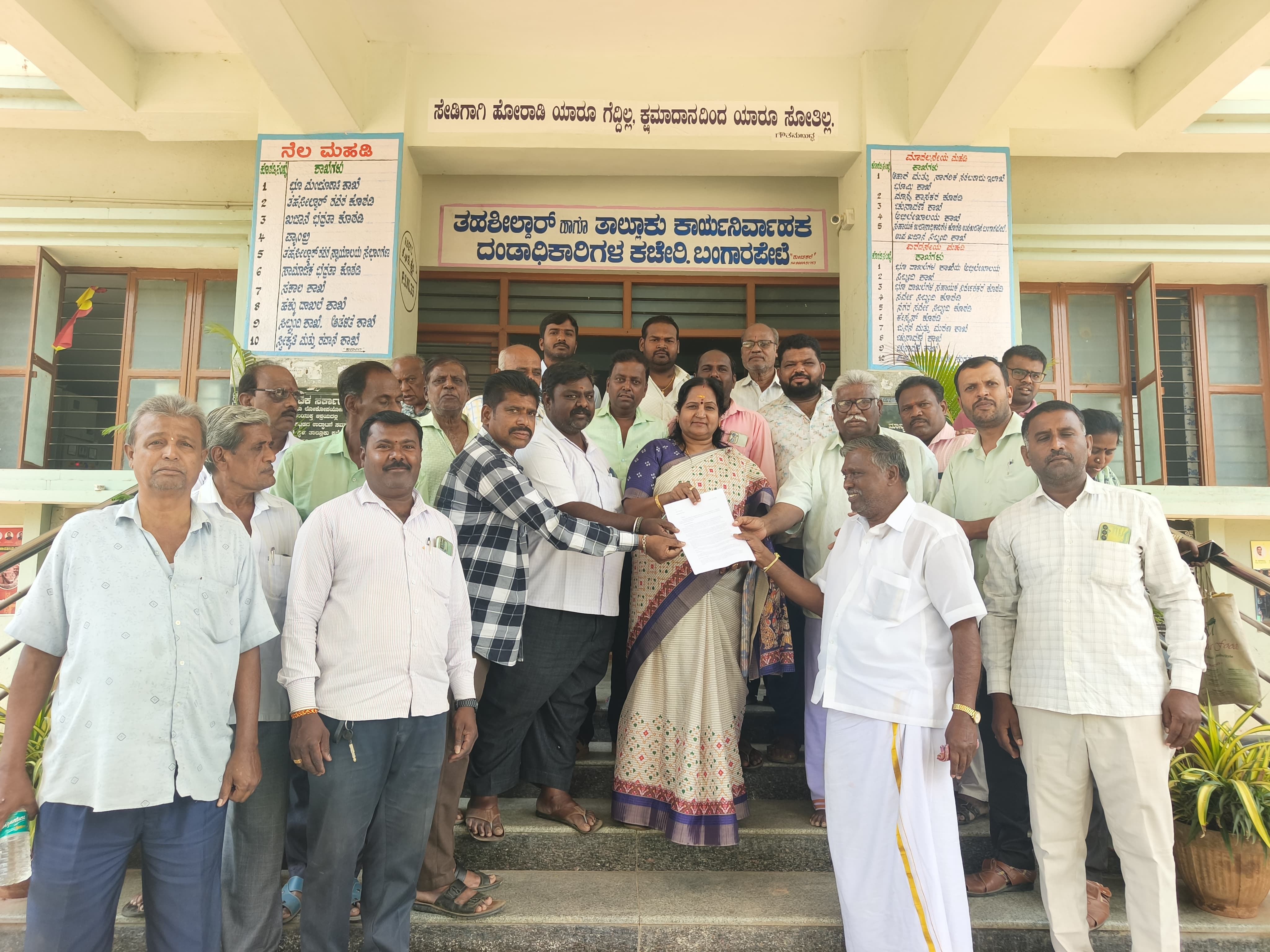 ಬಂಗಾರಪೇಟೆ: ಅಯೋಧ್ಯ ವೈಶ್ಯ ನಾಮಧಾರಿ ನಗರ್ತ ಸಮುದಾಯಕ್ಕೆ 2ಎ ಜಾತಿ ಪ್ರಮಾಣ ವಿತರಣೆ ಮಾಡಬೇಕು ಎಂದು ಒತ್ತಾಯಿಸಿ ಸಮುದಾಯದ ಮುಖಂಡರು ಪ್ರತಿಭಟಿಸಿ ತಹಸೀಲ್ದಾರ್ ಸುಜಾತ ಅವರಿಗೆ ಮನವಿ ಸಲ್ಲಿಸಿದರು.ಈ ವೇಳೆ ಸಮುದಾಯದ ಮುಖಂಡರು ಮಾತನಾಡಿ, ಸಮುದಾಯಕ್ಕೆ 2ಎ ಜಾತಿ ಪ್ರಮಾಣ ಪತ್ರ ವಿತರಣೆ ಮಾಡಬೇಕು ಎಂಬುದು ಬಹು ವರ್ಷಗಳ ಬೇಡಿಕೆಯಾಗಿತ್ತು. ಈ ಮೊದಲಿನಿಂದಲೂ ಮನವಿ ನೀಡುವುದು, ಹೋರಾಟ ಮಾಡಿಕೊಂಡಲೇ ಬರಲಾಗುತ್ತಿದೆ ಹೊರತು, ಸ್ಪಂದನೆ ಸಿಗುತ್ತಿಲ್ಲ ಎಂದು ಅಸಮಾಧಾನ ಹೊರ ಹಾಕಿದರು.