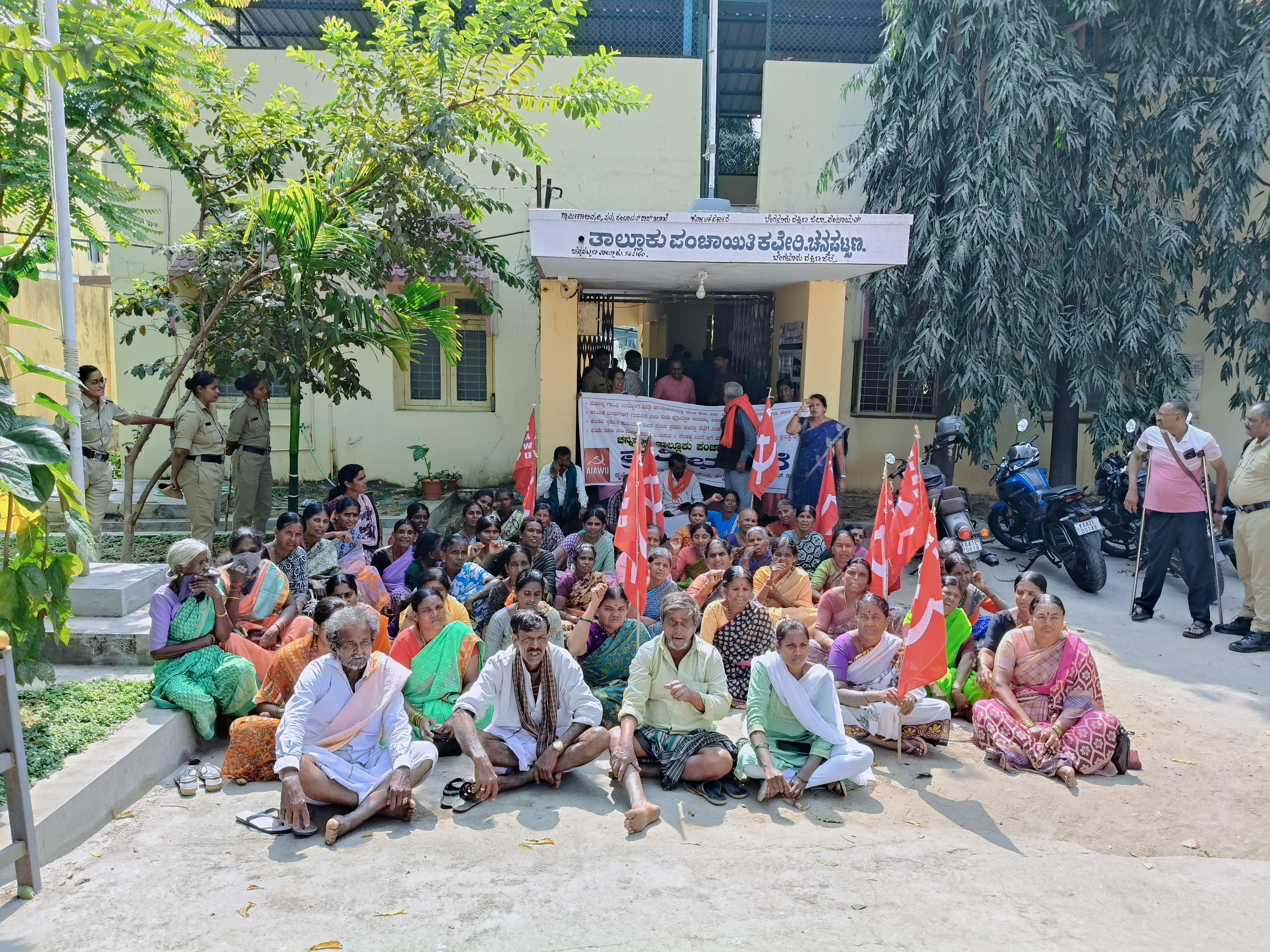 ತಾಪಂ ಕಚೇರಿ ಆವರಣದಲ್ಲಿ ಸಂಘದ ನೇತೃತ್ವದಲ್ಲಿ ಜಮಾಯಿಸಿದ ಇಗ್ಗಲೂರು ಗ್ರಾಮದ ಕೂಲಿ ಕಾರ್ಮಿಕರು ನರೇಗಾ ಯೋಜನೆಯ ಕೂಲಿ ಕೆಲಸವನ್ನು ಸಮಪರ್ಕವಾಗಿ ನೀಡುವಂತೆ ಆಗ್ರಹಿಸಿದರು.ಕೃಷಿಯಲ್ಲಿ ಕೆಲಸ ಸಿಗದ ಕೂಲಿಕಾರರು ಬೇರೆಡೆ ವಲಸೆ ಹೋಗುವುದನ್ನು ತಪ್ಪಿಸಲು ಮಹಾತ್ಮ ಗಾಂಧಿ ರಾಷ್ಟ್ರೀಯ ಗ್ರಾಮಿಣ ಉದ್ಯೋಗ ಖಾತ್ರಿ ಕಾಯ್ದೆಯನ್ನು ಜಾರಿ ತರಲಾಗಿದೆ. ಇದು ಕೂಲಿಕಾರರು ವಾಸಿಸುವ ಸ್ಥಳದಲ್ಲಿ ಉದ್ಯೋಗ ನೀಡುವುದರ ಮೂಲಕ ಅವರ ಆರ್ಥಿಕ ಅಭಿವೃದ್ಧಿಗೆ ಸಹಕಾರಿಯಾಗಿದೆ. ಆದರೆ, ಇಗ್ಗಲೂರು ಗ್ರಾಮ ಪಂಚಾಯಿತಿಯ ಕೂಲಿ ಕಾರ್ಮಿಕರಿಗೆ ಕೆಲಸ ಕೊಡದೆ ವಿನಾ ಕಾರಣ ಅಲೆದಾಡಿಸಲಾಗುತ್ತಿದೆ. ಕೆಲಸ ಮಾಡಿದ ಕೂಲಿ ಹಣವನ್ನು ಕಡಿಮೆ ಪಾವತಿ ಮಾಡಲಾಗುತ್ತಿದೆ ಎಂದು ಆರೋಪಿಸಿದರು.