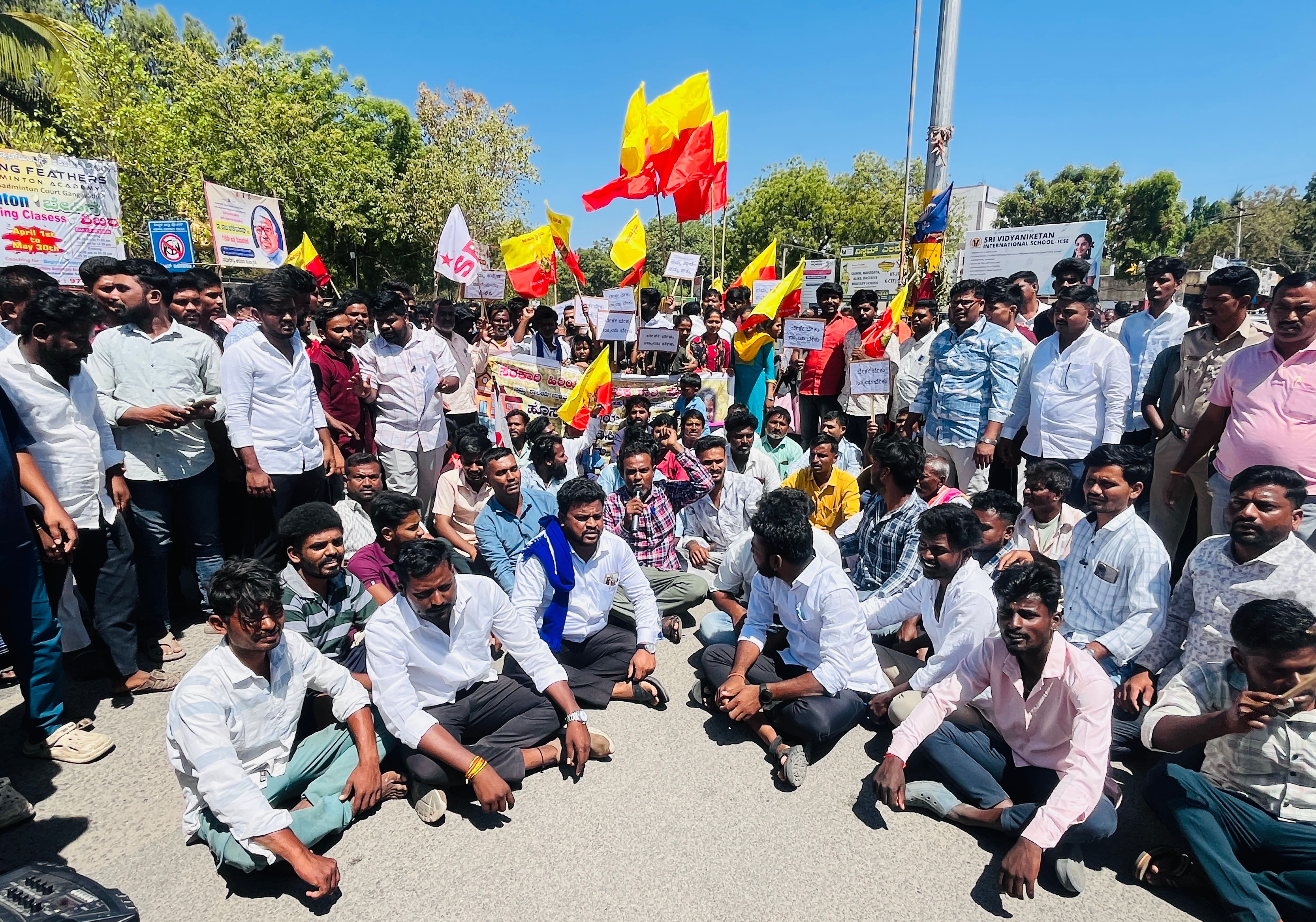 ಹೊಸಳ್ಳಿ ಗ್ರಾಮದಿಂದ ಗ್ರಾಮಸ್ಥರು ಪಾದಯಾತ್ರೆ ಮೂಲಕ ಆಗಮಿಸಿ, ಕೃಷ್ಣದೇವರಾಯ ವೃತ್ತದಲ್ಲಿ ಪ್ರತಿಭಟನೆ ನಡೆಸಿದರು.ಎಸ್ಎಫ್ಐ ಸಂಘಟನೆಯ ಜಿಲ್ಲಾಧ್ಯಕ್ಷ ಶಿವಕುಮಾರ ಈಚನಾಳ, ರಾಜ್ಯ ಉಪಾಧ್ಯಕ್ಷ ಗ್ಯಾನೇಶ್ ಕಡಗದ, ಜಿಲ್ಲಾ ಕಾರ್ಯದರ್ಶಿ ಬಾಲಾಜಿ ಚಳ್ಳಾರಿ ಗ್ರಾಮಸ್ಥ ಸಿದ್ದು, ವೀರೇಶ್, ಮಲ್ಲಿಕಾರ್ಜುನ, ಸಿದ್ದಪ್ಪ ಕರೆಕುರಿ, ವೀರುಪಣ್ಣ, ಪಂಪಣ್ಣ, ಪರ್ವತಯ್ಯ, ಗುರಪ್ಪ ಹಾಗೂ ವಿದ್ಯಾರ್ಥಿಗಳು ಭಾಗವಹಿಸಿದ್ದರು.