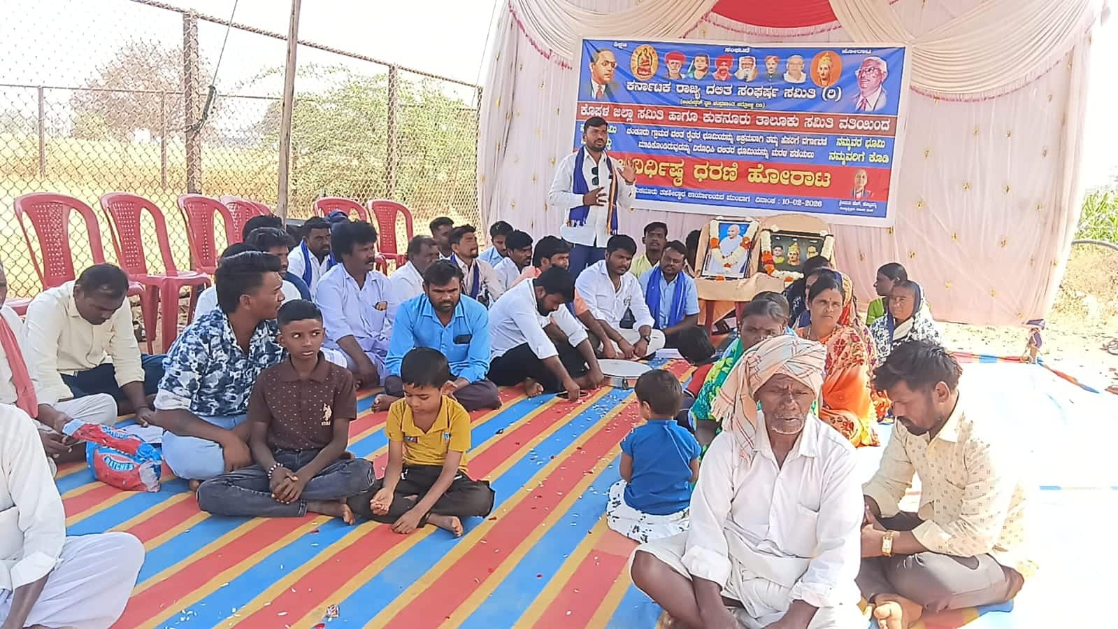 ಧರಣಿ ಉದ್ದೇಶಿಸಿ ಮಾತನಾಡಿದ ಸಮಿತಿಯ ಜಿಲ್ಲಾಧ್ಯಕ್ಷ ನಿಂಗಪ್ಪ ಬೆಣಕಲ್ಲ, ದಲಿತರ ಭೂಮಿಯಲ್ಲಿ ಸೋಲಾರ್ ಪ್ಯಾನಲ್ ಅಳವಡಿಕೆ ಕಾರ್ಯ ಮಾಡಬಾರದು.ತಾಲೂಕಿನ ಚಂಡೂರು ಗ್ರಾಮದ ದಲಿತ ರೈತರ ಭೂಮಿಯಲ್ಲಿ ಟೋರೆಂಟ್ ಸೋಲಾರ್ ಪವರ್ ಲಿಮಿಟೆಡ್ ಕಂಪನಿಯಿಂದ ಸೋಲಾರ್ ಪ್ಯಾನಲ್ ಅಳವಡಿಕೆ ಕಾರ್ಯ ಜರುಗುತ್ತಿದೆ. ಆದರೆ ಈ ಭೂಮಿ ದಲಿತ ವರ್ಗದವರಿಗೆ ಸೇರಿದ್ದಾಗಿದೆ. ಆದರೆ ನಿಜವಾದ ಭೂ ಮಾಲೀಕರ ಒಪ್ಪಿಗೆ ಪಡೆಯದೇ ಸೋಲಾರ್ ಅಳವಡಿಕೆ ಕಾರ್ಯ ಆಗುತ್ತಿದೆ. ಚಂಡೂರು ಗ್ರಾಮದ ದಲಿತ ರೈತ ಗೋವಿಂದಪ್ಪ ಹರಿಜನ ಅವರ ಪಿತ್ರಾರ್ಜಿತ ಆಸ್ತಿಯಾದ ಸರ್ವೆ ನಂ.76ರಲ್ಲಿ 17 ಎಕರೆ 39 ಗುಂಟೆ ಭೂಮಿಯು 1954ರಿಂದ 1979ರವರೆಗೆ ಗೋವಿಂದಪ್ಪ ಅವರ ಹೆಸರಿನಲ್ಲಿ ದಾಖಲಾಗಿತ್ತು. 1979ರ ನಂತರ ಯಾವುದೇ ಕಾನೂನುಬದ್ಧ ಖರೀದಿ ಪ್ರಕ್ರಿಯೆ, ಮ್ಯೂಟೇಷನ್ ಅಥವಾ ವಾರಸುದಾರರ ಅನುಮತಿ ಇಲ್ಲದೆ ಕರಿಯಪ್ಪ ಜ್ಯೋತಿ ಎಂಬುವವರು ಅಕ್ರಮವಾಗಿ ತಮ್ಮ ಹೆಸರಿಗೆ ಮಾಡಿಸಿಕೊಂಡಿದ್ದಾರೆ.ಈ ಭೂಮಿಯಲ್ಲಿ ಟೋರೆಂಟ್ ಸೋಲಾರ್ ಪವರ್ ಲಿಮಿಟೆಡ್ ಕಂಪನಿಯಿಂದ ಸೋಲಾರ್ ಪ್ಯಾನೆಲ್ ಅಳವಡಿಕೆ ಕಾಮಗಾರಿ ನಡೆಯುತ್ತಿರುವುದು ದಲಿತ ರೈತರ ಹಕ್ಕುಗಳ ಮೇಲಿನ ಸ್ಪಷ್ಟ ಅನ್ಯಾಯವಾಗಿದೆ. ಮೂಲ ಭೂ ಮಾಲೀಕರ ಅನುಮತಿ ಇಲ್ಲದೆ ನಡೆಯುತ್ತಿರುವ ಕಾಮಗಾರಿ ತಕ್ಷಣವೇ ನಿಲ್ಲಿಸಿ, ಭೂಮಿಯ ದಾಖಲೆಗಳ ಸಮಗ್ರ ತನಿಖೆ ನಡೆಸಿ ನ್ಯಾಯ ಒದಗಿಸಬೇಕೆಂದು ಆಗ್ರಹಿಸಿದರು.ಪ್ರತಿಭಟನಾ ಸ್ಥಳಕ್ಕೆ ಉಪತಹಸೀಲ್ದಾರ ಮುರುಳೀಧರಾವ್ ಆಗಮಿಸಿ ಮನವಿ ಸ್ವೀಕರಿಸಿದರು. ತಹಸೀಲ್ದಾರರು ಬರಬೇಕು ಎಂದು ಪ್ರತಿಭಟನಾಕಾರರು ಪಟ್ಟು ಹಿಡಿದರು. ನ್ಯಾಯ ಸಿಗುವವರೆಗೂ ಧರಣಿ ಮುಂದುವರೆಯುವುದಾಗಿ ತಿಳಿಸಿದರು.