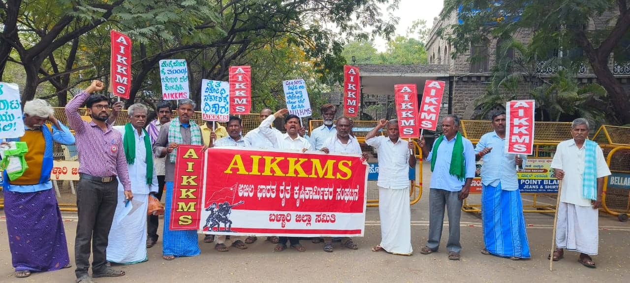 ಬಳ್ಳಾರಿ: ಮೆಕ್ಕೆಜೋಳಕ್ಕೆ ಬೆಂಬಲ ಬೆಲೆ ನೀಡಿ, ಖರೀದಿ ಕೇಂದ್ರ ಆರಂಭಿಸಬೇಕು ಎಂದು ಒತ್ತಾಯಿಸಿ ಅಖಿಲ ಭಾರತ ಕೃಷಿ ರೈತ ಕೃಷಿ ಕಾರ್ಮಿಕರ ಸಂಘಟನೆ (ಎಐಕೆಕೆಎಂಎಸ್) ವತಿಯಿಂದ ನಗರದ ಜಿಲ್ಲಾಧಿಕಾರಿ ಕಚೇರಿ ಎದುರು ಪ್ರತಿಭಟನೆ ನಡೆಸಲಾಯಿತು.
