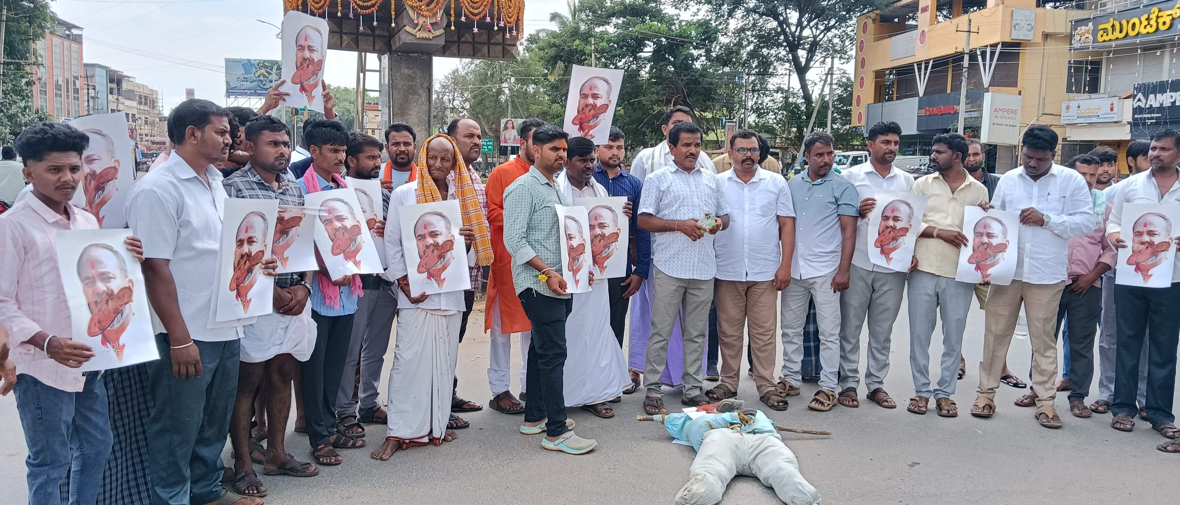 ಹಾವೇರಿ: ಮಾಜಿ ಸಂಸದ ರಮೇಶ್ ಕತ್ತಿ ವಾಲ್ಮೀಕಿ ಸಮುದಾಯದ ಬಗ್ಗೆ ಅವಹೇಳನಕಾರಿಯಾಗಿ ನೀಡಿರುವ ಹೇಳಿಕೆ ಖಂಡಿಸಿ, ಕತ್ತಿ ಅವರನ್ನು ಬಂಧಿಸುವಂತೆ ಆಗ್ರಹಿಸಿ ನಗರದಲ್ಲಿ ಸೋಮವಾರ ವಾಲ್ಮೀಕಿ ನಾಯಕ ಕ್ಷೇಮಾಭಿವೃದ್ಧಿ ಸಂಘದಡಿ ನೂರಾರು ವಾಲ್ಮೀಕಿ ಸಮಾಜ ಬಾಂಧವರು ಬೃಹತ್ ಪ್ರತಿಭಟನೆ ನಡೆಸಿದರು.ಇಲ್ಲಿನ ಪ್ರವಾಸಿ ಮಂದಿರದಿಂದ ಹಳೆ ಪಿಬಿ ರಸ್ತೆಯಲ್ಲಿರುವ ವಾಲ್ಮೀಕಿ ಸರ್ಕಲ್ವರೆಗೆ ಪ್ರತಿಭಟನಾ ಮೆರವಣಿಗೆ ನಡೆಸಿದ ವಾಲ್ಮೀಕಿ ಸಮಾಜದ ಪ್ರಮುಖರು, ಮಾಜಿ ಸಂಸದ ರಮೇಶ್ ಕತ್ತಿ ಪ್ರತಿಕೃತಿಯನ್ನು ಹಿಡಿದು ಕತ್ತಿ ವಿರುದ್ಧ ಘೋಷಣೆ ಕೂಗಿ ಆಕ್ರೋಶ ವ್ಯಕ್ತಪಡಿಸಿದರು. ಕತ್ತಿ ಪ್ರತಿಕೃತಿ ದಹನಕ್ಕೆ ಪ್ರಯತ್ನಿಸಿದರು. ಈ ವೇಳೆ ಪೊಲೀಸರು ಹಾಗೂ ವಾಲ್ಮೀಕಿ ಸಮಾಜದ ಮುಖಂಡರ ನಡುವೆ ವಾಗ್ವಾದಗಳು ನಡೆದವು. ಮಾಜಿ ಸಂಸದ ರಮೇಶ ಕತ್ತಿ ಒಬ್ಬ ಜವಾಬ್ದಾರಿಯುತ ಸ್ಥಾನದಲ್ಲಿರುವ ವ್ಯಕ್ತಿ ತಮ್ಮ ಸ್ಥಾನದ ಅರಿವಿಲ್ಲದೆ ಹಗುರುವಾಗಿ ಮಾತನಾಡಿರುವುದು ಖಂಡನೀಯ ಎಂದು ಕಿಡಿಕಾರಿದರು.ಪೊಲೀಸರು ಕತ್ತಿ ಪ್ರತಿಕೃತಿ ದಹಿಸಲು ಅವಕಾಶ ನೀಡಲಿಲ್ಲ. ಈ ವೇಳೆ ಪೊಲೀಸರ ವಿರುದ್ಧ ಪ್ರತಿಭಟನಾಕಾರರು ಆಕ್ರೋಶ ವ್ಯಕ್ತಪಡಿಸಿದರು. ರಮೇಶ್ ಕತ್ತಿ ಭಾವಚಿತ್ರಕ್ಕೆ ಚಪ್ಪಲಿ ಏಟು ಹೊಡೆದು, ತಕ್ಷಣವೇ ಅವರ ಬಂಧನ ಮಾಡುವಂತೆ ಪ್ರತಿಭಟನಾಕಾರರು ಆಗ್ರಹಿಸಿದರು.ಈ ವೇಳೆ ಜಿಲ್ಲಾ ವಾಲ್ಮೀಕಿ ನಾಯಕ ಕ್ಷೇಮಾಭಿವೃದ್ಧಿ ಸಂಘದ ಅಧ್ಯಕ್ಷ ರಮೇಶ ಆನವಟ್ಟಿ ಮಾತನಾಡಿ, ಭಾನುವಾರ ಬೆಳಗಾವಿ ನಗರದಲ್ಲಿ ನಡೆದ ಬಿಡಿಸಿಸಿ ಬ್ಯಾಂಕ್ ನಿರ್ದೇಶಕರ ಸ್ಥಾನಗಳ ಮತದಾನದ ವೇಳೆ ತಮ್ಮ ಬೆಂಬಲಿಗರೊಂದಿಗೆ ಮಾತನಾಡುತ್ತಿದ್ದಾಗ ರಮೇಶ ಕತ್ತಿ, ಜಾರಕಿಹೊಳಿ ಸಹೋದರರನ್ನು ಟೀಕಿಸುವ ಸಂದರ್ಭ ವಾಲ್ಮೀಕಿ ಸಮುದಾಯದ ವಿರುದ್ಧ ಅವಾಚ್ಯ ಪದಗಳನ್ನು ಬಳಸಿ ಮಾತನಾಡಿದ್ದಾರೆ. ವಾಲ್ಮೀಕಿ, ನಾಯಕ ಬೇಡ ಜನಾಂಗದ ಬಗ್ಗೆ ಕತ್ತಿ ಅವಹೇಳನಕಾರಿ ಪದಗಳನ್ನು ಬಳಸಿ ನಿಂದನೆ ಮಾಡಿದ್ದಾರೆ. ಅವರನ್ನು ತಕ್ಷಣ ಬಂಧಿಸಬೇಕು, ಇಲ್ಲದೇ ಹೋದರೆ ಉಗ್ರ ಹೋರಾಟ ನಡೆಸಬೇಕಾಗುತ್ತದೆ ಎಂದು ಎಚ್ಚರಿಕೆ ನೀಡಿದರು.ಪ್ರತಿಭಟನೆಯ ನಂತರ ಪ್ರತಿಭಟನಾಕಾರರು ಶಹರ ಪೊಲೀಸ್ಠಾಣೆಗೆ ತೆರಳಿ ಮಾಜಿ ಸಂಸದ ಹಾಗೂ ಬಿಡಿಸಿಸಿ ಬ್ಯಾಂಕ್ ನಿರ್ದೇಶಕ ರಮೇಶ ಕತ್ತಿ ವಿರುದ್ಧ ದೂರು ದಾಖಲಿಸಿದರು.ಅಶೋಕ ಹರನಗೇರಿ, ನಾಗರಾಜ್ ಬಡಮ್ಮನವರ್, ಮಾಲತೇಶ್, ಮಂಜುನಾಥ್ ಮುಗದೂರು, ಜಗದೀಶ್ ಕೊಂಡೆಮ್ಮನವರ್, ಉದಯ್ ಕುಮಾರ್, ಮಂಜು, ಜುಂಜಪ್ಪ ದೊಡ್ಮನಿ, ಶಿವಾನಂದ್ ನಡುವಿನಮನಿ, ಉಮೇಶ್ ಹುಳ್ಳಿಕುಪ್ಪಿ, ಸುನಿಲ್ ನಡುವಿನಮನಿ, ಮಂಜಪ್ಪ ನೆಲೋಗಲ್, ರಮೇಶ್, ವೆಂಕಣ್ಣನವರ್, ರಮೇಶ ಕಲಿವಾಳ, ಭೀಮಜ್ಜ ಬಣಕಾರ್, ಸಚಿನ್ ಜಲ್ಲಾಪುರ್, ಮಾಲತೇಶ್ ಮರಾಠಿ, ಅರುಣ್ ದಾಸ್ಅವರ, ಹನುಮಂತ ಹುಗ್ಗೆನವರ್, ಅಭಿಜಿತ ರಿತ್ತಿ, ಮನೋಜ್ ಆರ್, ನಾಗರಾಜ್ ನಡುವಿನಮನಿ ಸೇರಿದಂತೆ ಅನೇಕರು ಭಾಗವಹಿಸಿದ್ದರು.