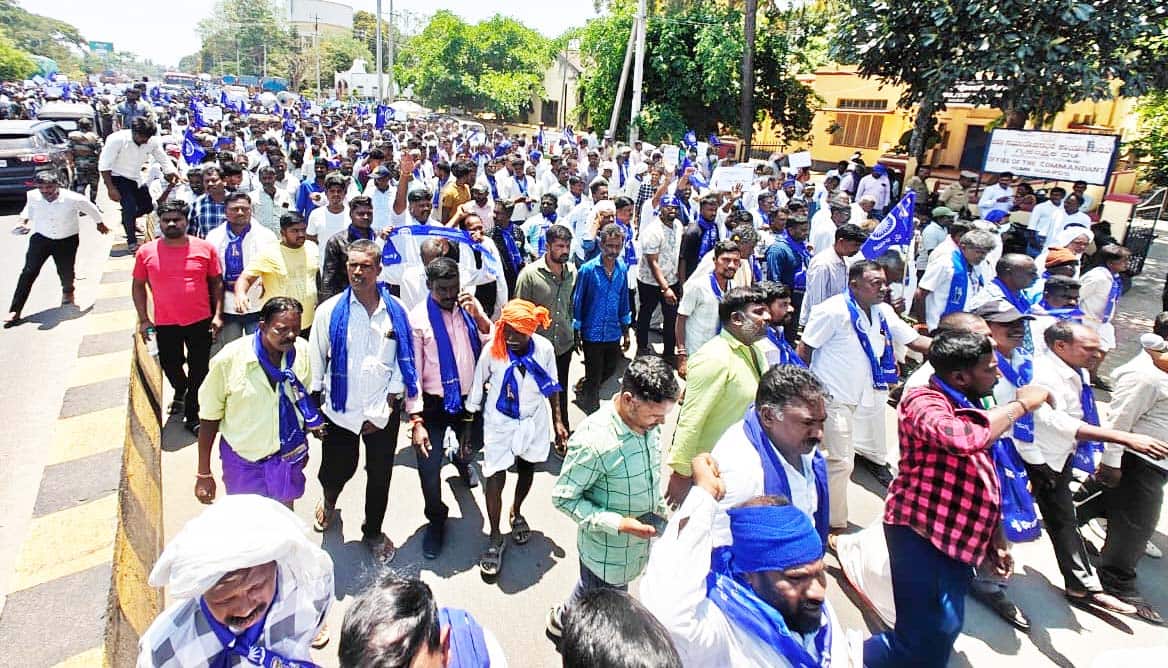 ಕನ್ನಡಪ್ರಭ ವಾರ್ತೆ ಚಾಮರಾಜನಗರಒಳಮೀಸಲಾತಿಯನ್ನು ಸಂಪೂರ್ಣವಾಗಿ ಜಾರಿಗೆ ಒತ್ತಾಯಿಸಿ ಡಾ. ಬಾಬು ಜಗಜೀವನರಾಂ ಸಂಘಟನೆಗಳ ಒಕ್ಕೂಟ ಹಾಗೂ ಮಾದಿಗ ಸಂಘಟನೆಗಳ ಒಕ್ಕೂಟದಿಂದ ನಗರದಲ್ಲಿ ಗುರುವಾರ ಬೃಹತ್ ಪ್ರತಿಭಟನೆ ನಡೆಯಿತು.ಡಾ.ಬಿ.ಆರ್. ಅಂಬೇಡ್ಕರ್ ಭವನದಿಂದ ಪ್ರತಿಭಟನಾ ಮೆರವಣಿಗೆ ಹೊರಟು ದೊಡ್ಡಂಗಡಿ, ಚಿಕ್ಕಂಗಡಿ ಬೀದಿ, ಸಂತೇಮರಳ್ಳಿ ವೃತ್ತ, ಪಚ್ಚಪ್ಪ ವೃತ್ತದಲ್ಲಿ ಮಾನವ ಸರಪಳಿ ನಿರ್ಮಿಸಿ, ನಂತರ ಮೆರವಣಿಗೆಯು, ಬಿ.ರಾಚಯ್ಯ ಜೋಡಿ ರಸ್ತೆ ಮೂಲಕ ಜಿಲ್ಲಾಡಳಿತ ಭವನವರೆಗೂ ಹೋಯಿತು. ಅಲ್ಲಿ ಜಿಲ್ಲಾಡಳಿತದ ಮೂಲಕ ರಾಜ್ಯ ಸರ್ಕಾರಕ್ಕೆ ಮನವಿ ಸಲ್ಲಿಸಲಾಯಿತು.ಈ ಸಂದರ್ಭದಲ್ಲಿ ಮಾತನಾಡಿದ ಪ್ರತಿಭಟನಾಕಾರರು ಚುನಾವಣಾ ಪ್ರಣಾಳಿಕೆಯಲ್ಲಿ ನೀಡಿದ್ದ ಭರವಸೆಯಂತೆ ಒಳಮೀಸಲಾತಿ ಜಾರಿಗೆ ತರಬೇಕು. ಹಲವು ವರ್ಷಗಳಿಂದ ಮಾದಿಗ ಸಮುದಾಯ ನಿರಂತರ ಹೋರಾಟ ನಡೆಸುತ್ತಿದ್ದರೂ ನ್ಯಾಯಯುತ ಒಳಮೀಸಲಾತಿ ಸಿಗದಿರುವುದರಿಂದ ಸಾಮಾಜಿಕ ಅನ್ಯಾಯ ಮುಂದುವರಿದಿದೆ ಎಂದು ಆರೋಪಿಸಿದರು. ಸುಪ್ರೀಂ ಕೋರ್ಟ್ ಆದೇಶದಂತೆ ರಚಿಸಲಾದ ನ್ಯಾ.ನಾಗಮೋಹನ್ ದಾಸ್ ಆಯೋಗದ ವರದಿ ಅನ್ವಯ ಒಳಮೀಸಲಾತಿ ಜಾರಿಗೆ ತರದೇ, ಸರ್ಕಾರ ಸ್ವಯಂ ಪ್ರೇರಣೆಯಿಂದ ಎ. ಬಿ. ಸಿ ವರ್ಗೀಕರಣ ಮಾಡಿ ಅನ್ಯಾಯ ಮಾಡಿದೆ ಎಂದು ಅಸಮಾಧಾನ ವ್ಯಕ್ತಪಡಿಸಿದರು.೫೬,೩೪೨ ಹುದ್ದೆಗಳನ್ನು ಹಳೆಯ ಮೀಸಲಾತಿ ವ್ಯವಸ್ಥೆಯಲ್ಲಿಯೇ ಒಳಮೀಸಲಾತಿ ಅನ್ವಯಿಸಿ ಭರ್ತಿ ಮಾಡಬೇಕು. ಉದ್ಯೋಗ ನೇಮಕಾತಿ, ಬ್ಯಾಕ್ಲಾಗ್, ಮುಂಬಡ್ತಿ ಸೇರಿದಂತೆ ಎಲ್ಲ ಹಂತಗಳಲ್ಲಿ ಒಳಮೀಸಲಾತಿ ಜಾರಿಗೊಳಿಸಬೇಕು ಎಂದು ಆಗ್ರಹಿಸಿದರು.ಸ್ಥಳೀಯ ಸಂಸ್ಥೆಗಳು ಹಾಗೂ ಸಾರ್ವತ್ರಿಕ ಚುನಾವಣೆಯಲ್ಲಿಯೂ ಒಳಮೀಸಲಾತಿ ಅಳವಡಿಕೆ, ಎಸ್ಇಪಿ, ಟಿಎಸ್ಪಿ ಸೇರಿದಂತೆ ವಿವಿಧ ಆರ್ಥಿಕ ಸವಲತ್ತುಗಳಲ್ಲಿ ಒಳಮೀಸಲಾತಿ ಜಾರಿಗೆ ತೀರ್ಮಾನ ಕೈಗೊಳ್ಳಬೇಕು ಎಂದು ಮುಖ್ಯಮಂತ್ರಿಗಳಲ್ಲಿ ಮನವಿ ಮಾಡಿದರು.ಮೀಸಲಾತಿ ವ್ಯವಸ್ಥೆಯನ್ನು ಸಂವಿಧಾನದ ೯ನೇ ಅನುಸೂಚಿಗೆ ಸೇರಿಸುವ ಅಗತ್ಯ ಕ್ರಮ ಕೈಗೊಳ್ಳಬೇಕು. ಅಲೆಮಾರಿ ಸಮುದಾಯಗಳಿಗೆ ಪ್ರತ್ಯೇಕ ಮೀಸಲಾತಿ ನೀಡಬೇಕು. ರಾಜಕೀಯ ಚುನಾವಣೆಗಳಲ್ಲಿ ಸಂಪೂರ್ಣ ಒಳಮೀಸಲಾತಿ ಕಲ್ಪಿಸಬೇಕು ಎಂದು ಆಗ್ರಹಿಸಿದರು.ಸಂಪೂರ್ಣ ಒಳಮೀಸಲಾತಿ ಜಾರಿಗೆ ಒತ್ತಾಯಿಸಿ ಈಗಾಗಲೇ ಬೆಂಗಳೂರಿನ ಸ್ವಾತಂತ್ರ್ಯಉದ್ಯಾನವನದಲ್ಲಿ ಸಮುದಾಯದಿಂದ ಹೋರಾಟ ಮಾಡಲಾಗಿದ್ದು, ಮಾ.೨೭ರ ವಿಶೇಷ ಸಚಿವ ಸಂಪುಟದಲ್ಲಿ ಸಂಪೂರ್ಣ ಒಳಮೀಸಲಾತಿ ಜಾರಿ ಮಾಡುವಂತೆ ಮುಖ್ಯಮಂತ್ರಿ ಸಿದ್ದರಾಮಯ್ಯ ಅವರಲ್ಲಿ ಒತ್ತಾಯ ಮಾಡಲಾಗಿದೆ. ಇದು ನಮ್ಮ ಅಳಿವು- ಉಳಿವಿನ ಹೋರಾಟವಾಗಿದೆ ಎಂದರು.ಪ್ರತಿಭಟನೆಯಲ್ಲಿ ಡಾ. ಬಾಬು ಜಗಜೀವನರಾಮ್ ಸಂಘಟನೆಗಳ ಒಕ್ಕೂಟದ ಗೌರವಾಧ್ಯಕ್ಷ ಬಸವನಪುರ ರಾಜಶೇಖರ್, ಜಿಲ್ಲಾಧ್ಯಕ್ಷ ನಾಗರಾಜು, ಮುಖಂಡರಾದ ಸಿದ್ದಯ್ಯ, ರಾಜಣ್ಣ, ಮರಪ್ಪ, ಮೂರ್ತಿ, ಶಿವಕುಮಾರ್, ಬಸವರಾಜು, ಶಿವಣ್ಣ, ಗೋಪಿ, ದ್ವಾರಕಿ ಬಸವರಾಜು, ಶಿವಮಲ್ಲು, ಸಿದ್ದೇಶ್, ಗುರುಲಿಂಗಯ್ಯ, ರಂಗಸ್ವಾಮಿ ಸೇರಿದಂತೆ ಇತರರು ಭಾಗವಹಿಸಿದ್ದರು.---೨೬ ಸಿಎಚ್ಎನ್೧ ಮತ್ತು ೨ಒಳಮೀಸಲಾತಿ ಸಂಪೂರ್ಣ ಜಾರಿಗೆ ಒತ್ತಾಯಿಸಿ ಡಾ. ಬಾಬುಜಗಜೀವನರಾಂ ಸಂಘಟನೆಗಳ ಒಕ್ಕೂಟ ಹಾಗೂ ಮಾದಿಗ ಸಂಘಟನೆಗಳ ಒಕ್ಕೂಟದಿಂದ ಬೃಹತ್ ಪ್ರತಿಭಟನೆ ನಡೆಯಿತು.