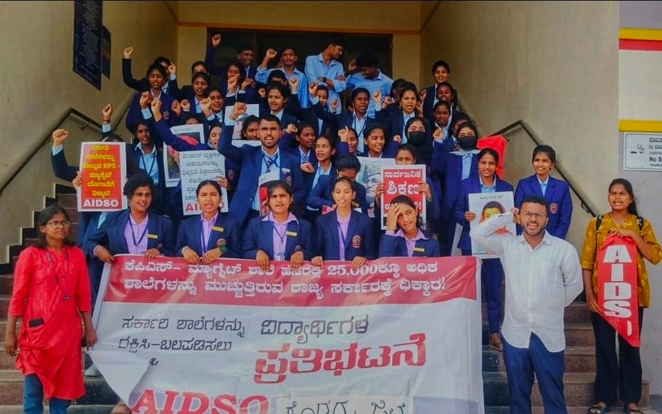 ರಾಜ್ಯ ಸರ್ಕಾರದ ವಿರುದ್ಧ ಅಖಿಲ ಭಾರತೀಯ ಪ್ರಜಾಸತ್ತಾತ್ಮಕ ವಿದ್ಯಾರ್ಥಿ ಸಂಘಟನೆ ನಗರದ ಜಿಲ್ಲಾಧಿಕಾರಿ ಕಚೇರಿ ಮುಂಭಾಗ ಪ್ರತಿಭಟನೆ ನಡೆಸಿತು.