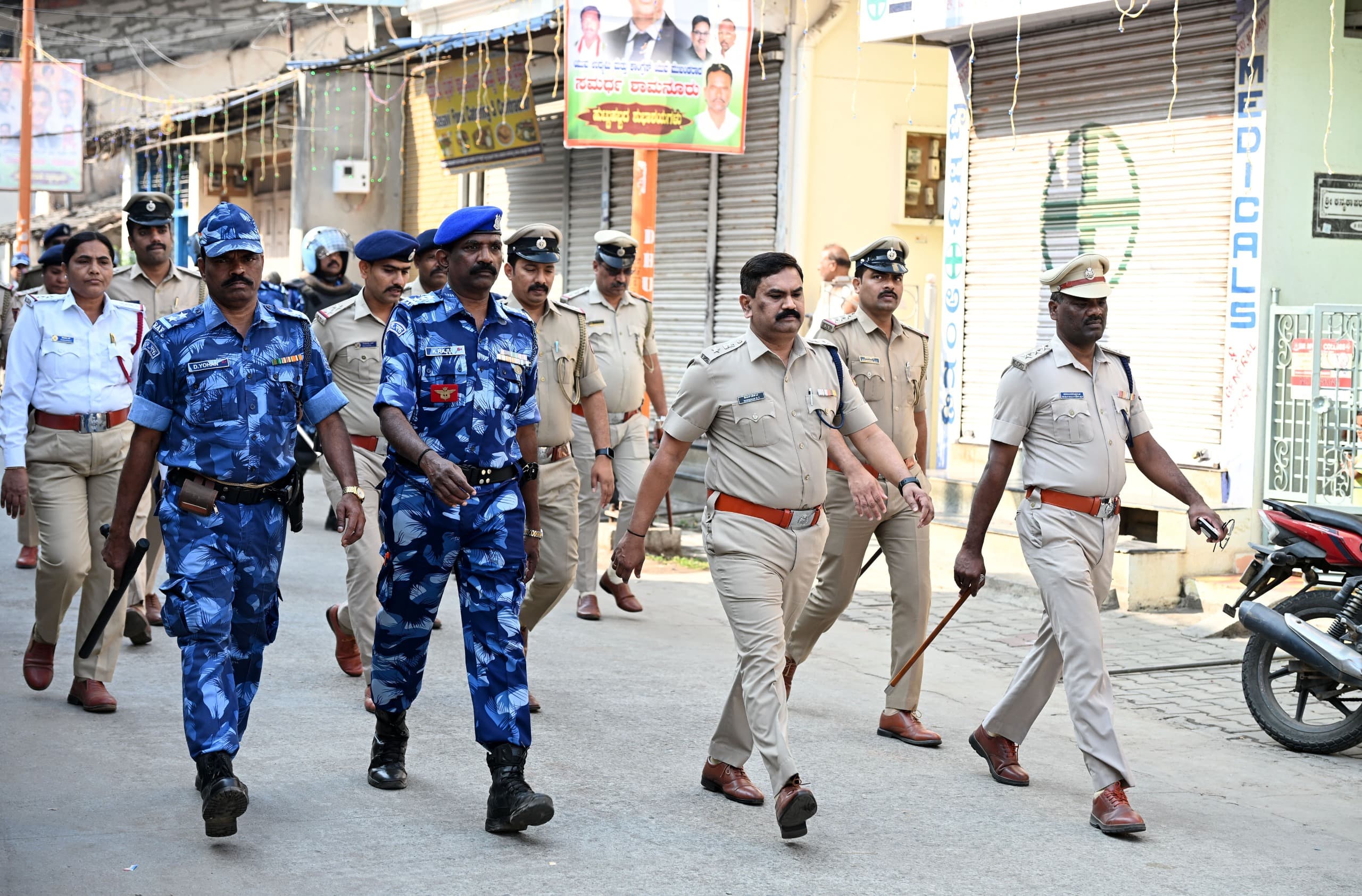 ಜಿಲ್ಲಾ ಪೊಲೀಸ್ ವರಿಷ್ಠಾಧಿಕಾರಿ ಡಾ.ಶೇಖರ್ ಟೆಕ್ಕಣ್ಣನವರ್ ಜೊತೆಗೆ ಡಿವೈಎಸ್ಪಿ ಬಿ.ಶರಣ ಬಸವೇಶ್ವರ, ಪೊಲೀಸ್ ನಿರೀಕ್ಷಕರಾದ ವಸಂತ, ಸುನೀಲಕುಮಾರ, ಶಿಲ್ಪಾ, ನಂಜುಂಡ ಸ್ವಾಮಿ, ಮಂಜುನಾಥ ಕುಪ್ಪೇಲೂರು, ಪಿಎಸ್ಐಗಳಾದ ರವಿನಾಯ್ಕ, ಸಚಿನ್, ಶಕುಂತಲಾ, ಆರ್ಎಎಫ್ ತಂಡದ ಇನ್ಸ್ಪೆಕ್ಟರ್ ರಾಜು, ಸಿಬ್ಬಂದಿ, ನಗರ ಪೊಲೀಸ್ ಮತ್ತು ಡಿಎಆರ್ ಅಧಿಕಾರಿ, ಸಿಬ್ಬಂದಿ ಪಥ ಸಂಚಲನದಲ್ಲಿ ಪಾಲ್ಗೊಂಡಿದ್ದರು.- - -
